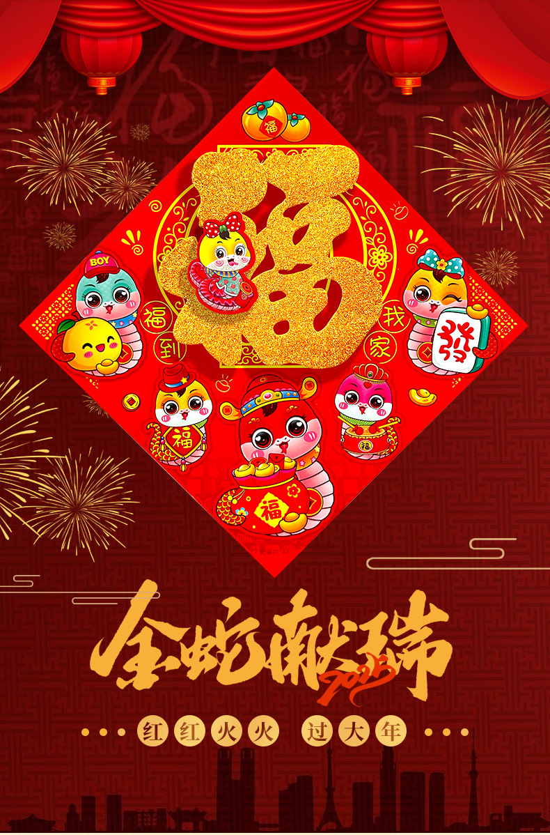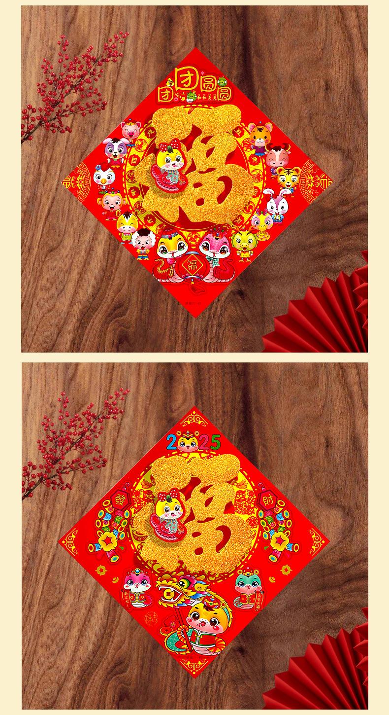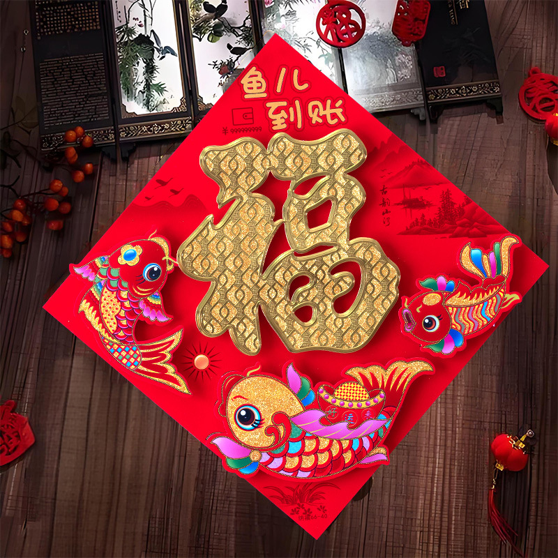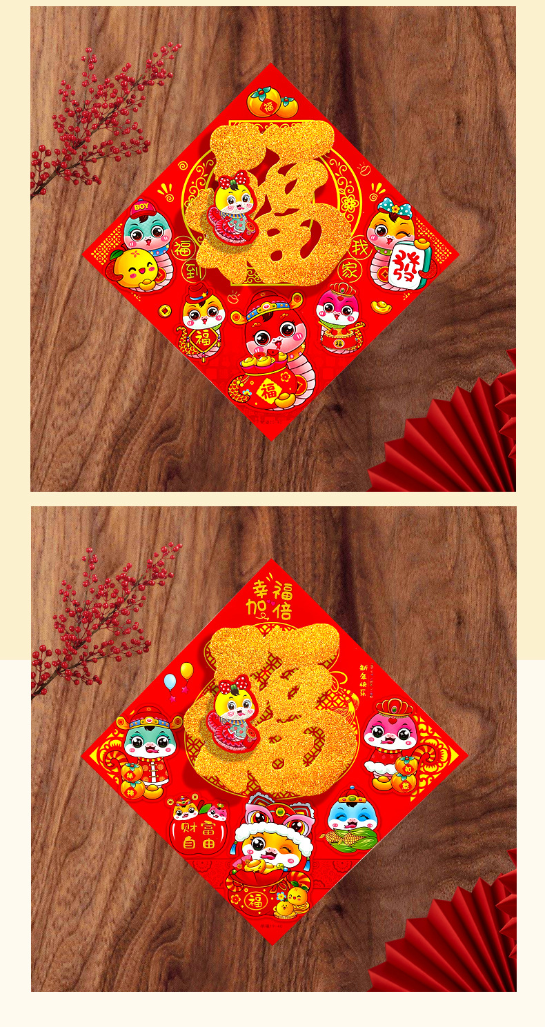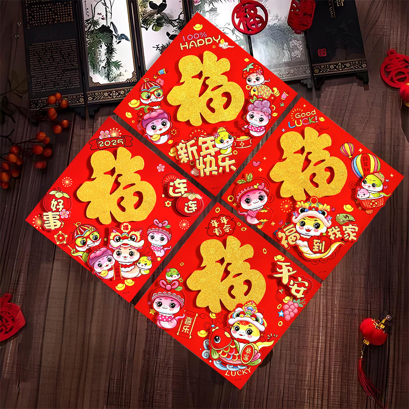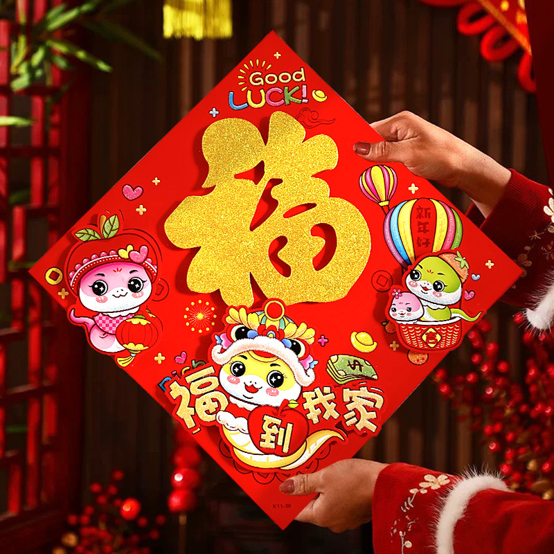 春节用品立体福字三层卡通生肖植绒大门装饰春节过年布置福字门贴