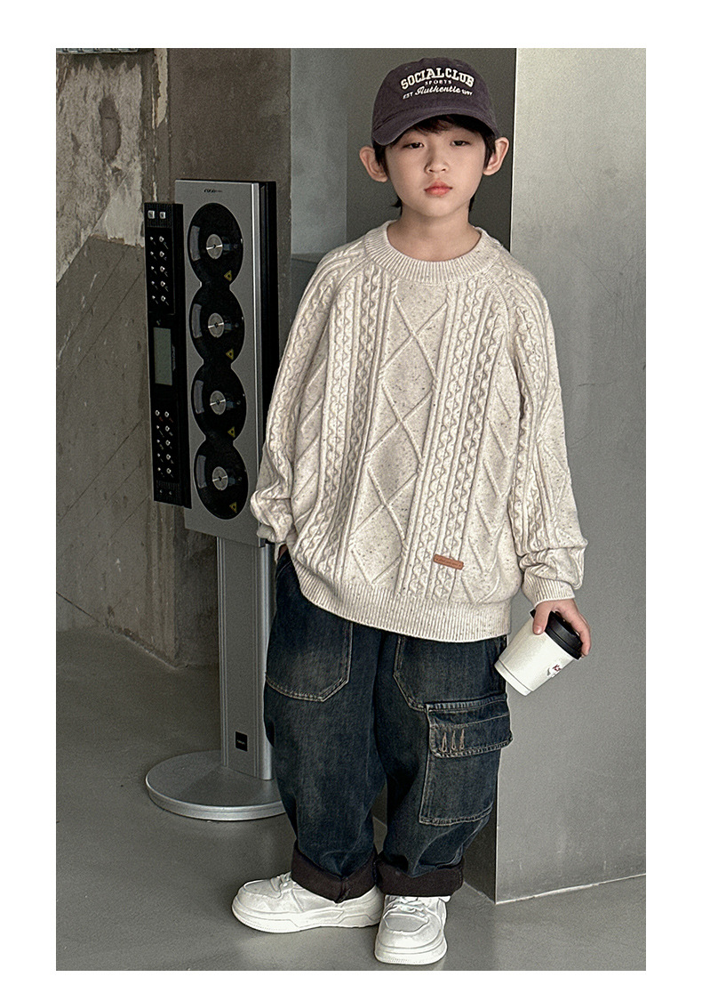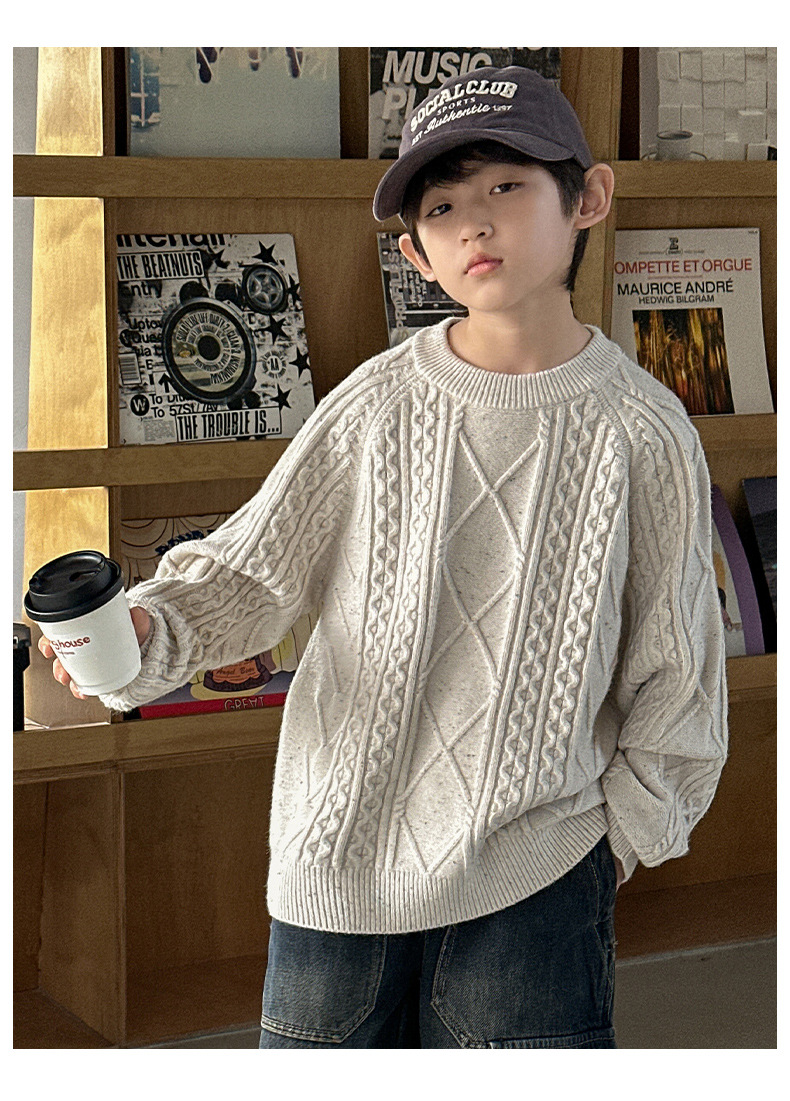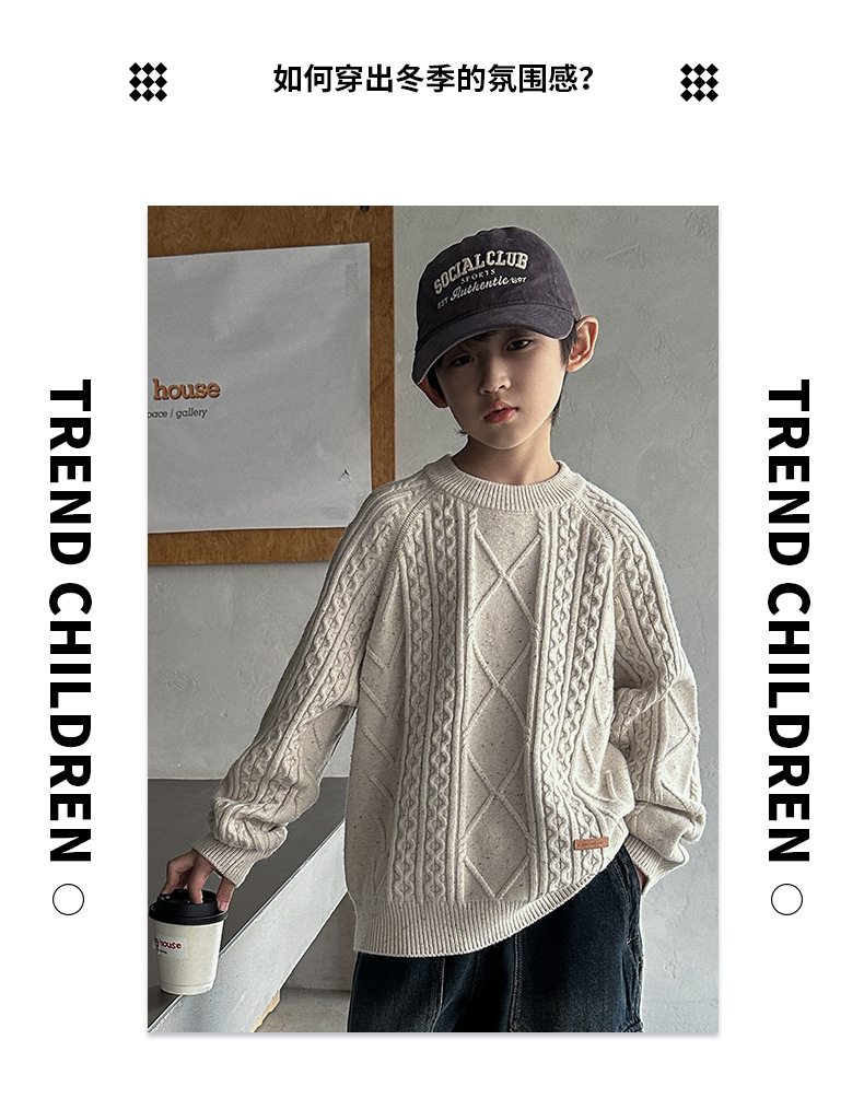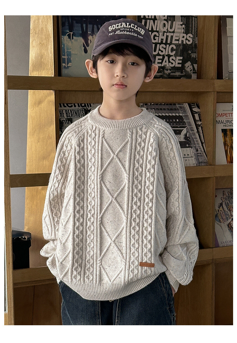 儿童装男童纯色加厚毛衣冬装2024新款中大童男孩韩版套头针织衫潮