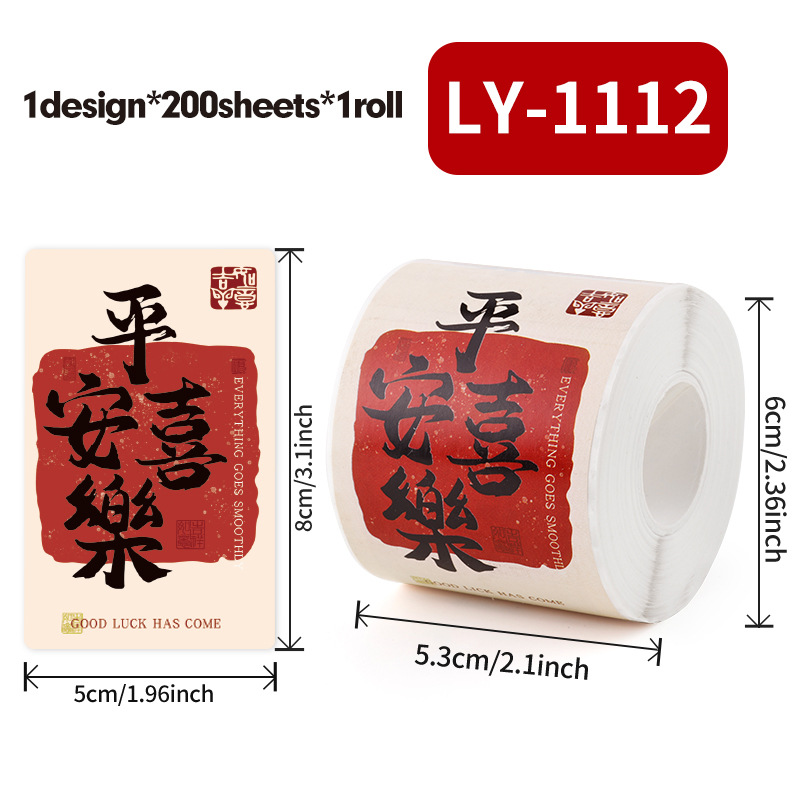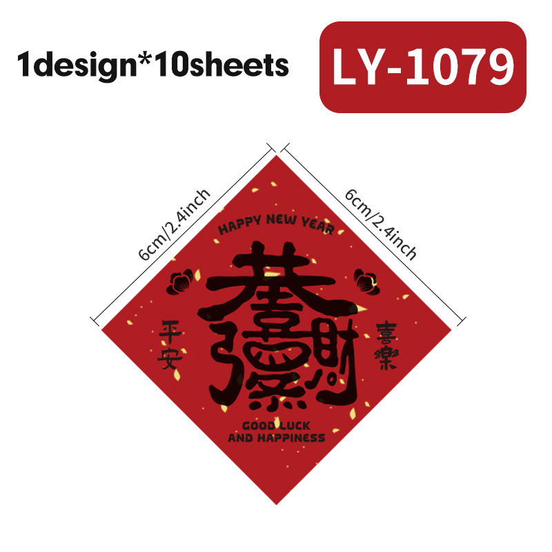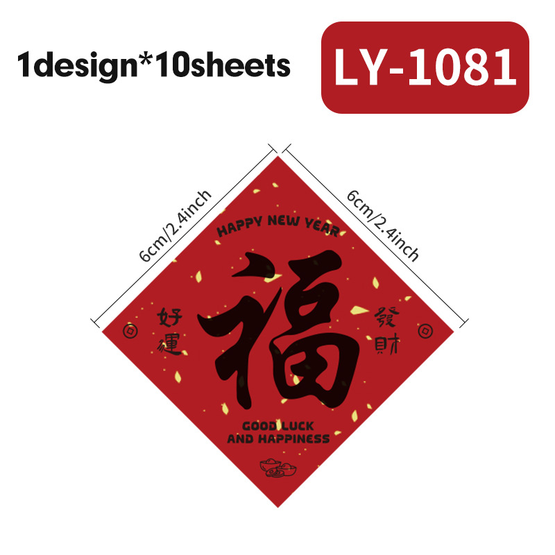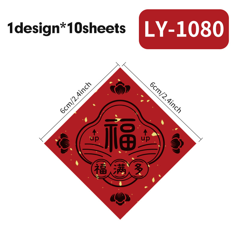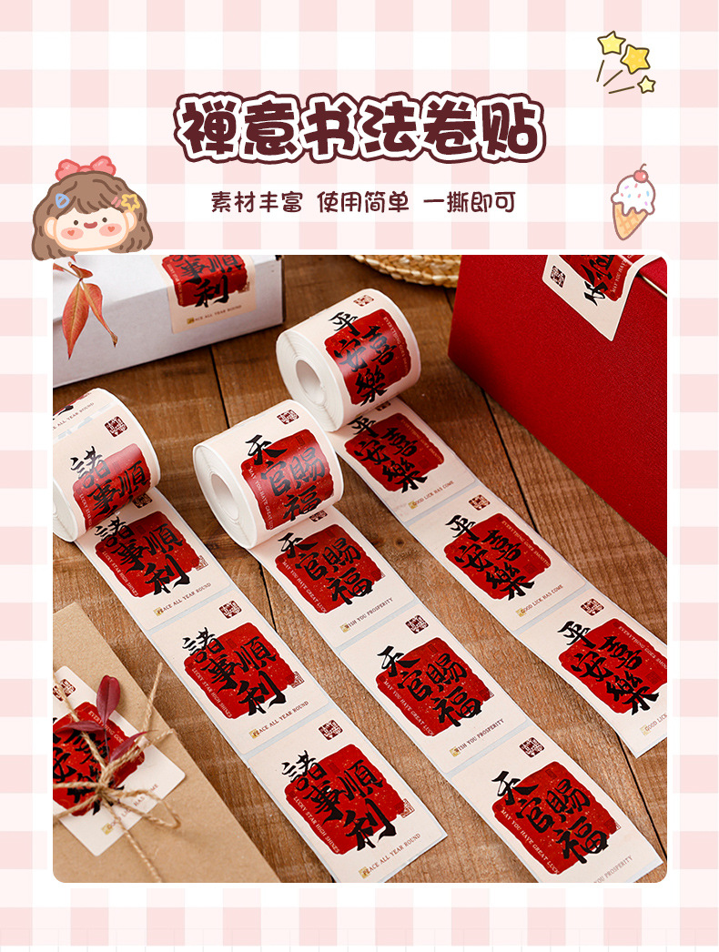 新年祝福文字装饰贴纸自粘铜版纸不干胶标签红包快递礼物盒封口贴