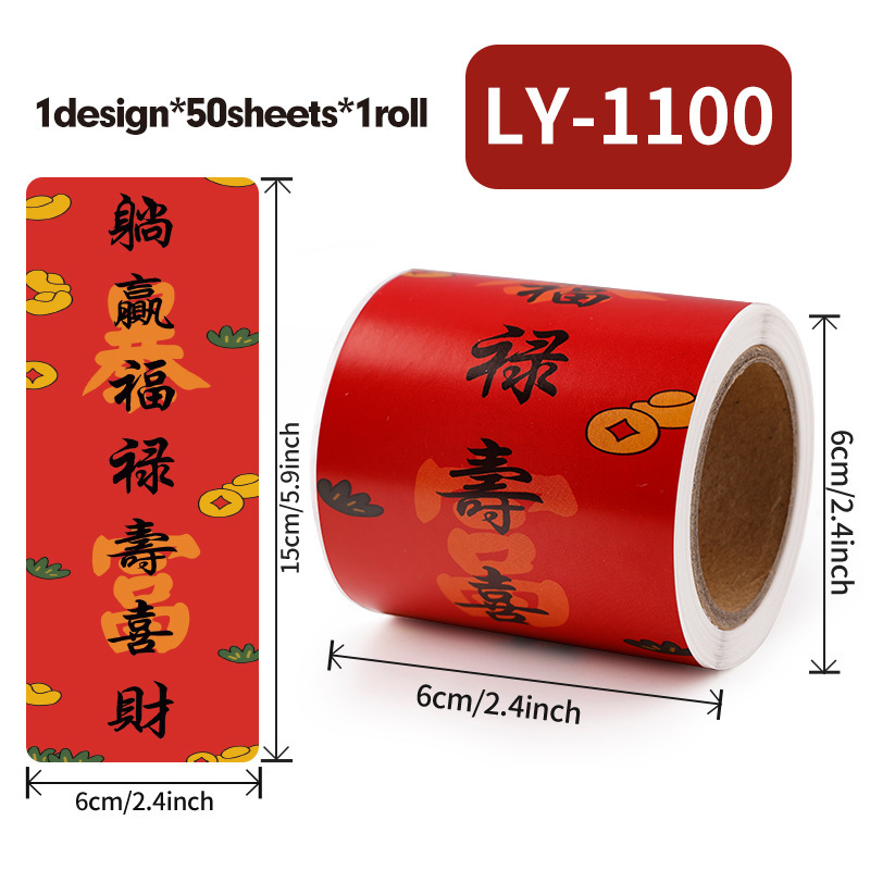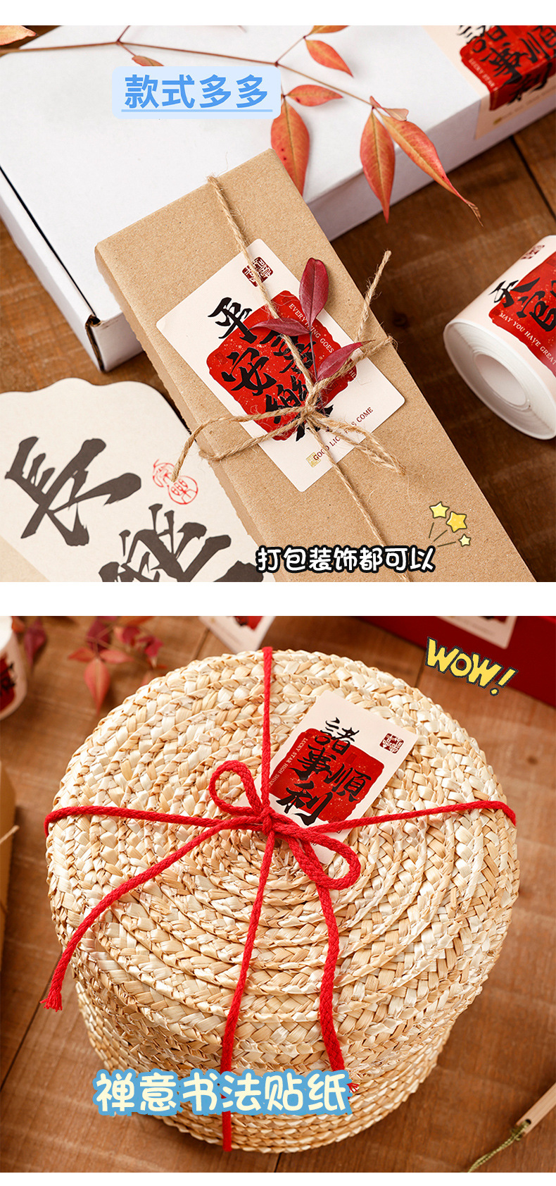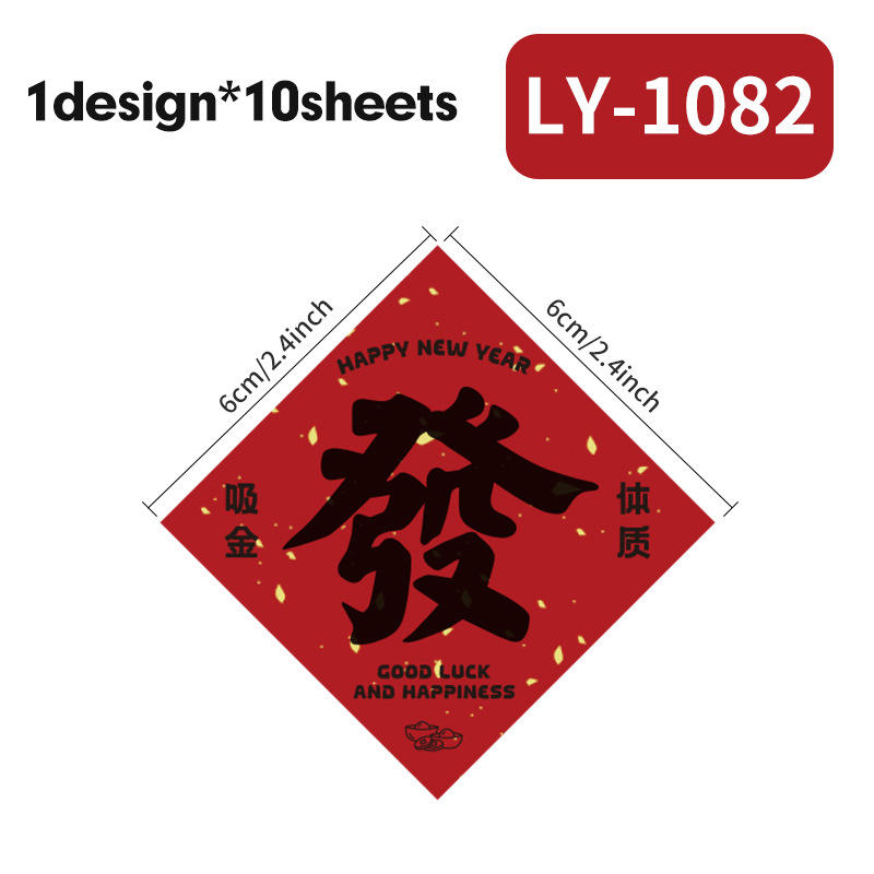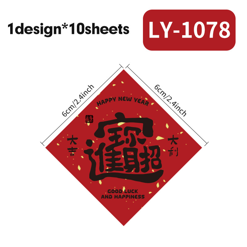 新年祝福文字装饰贴纸自粘铜版纸不干胶标签红包快递礼物盒封口贴