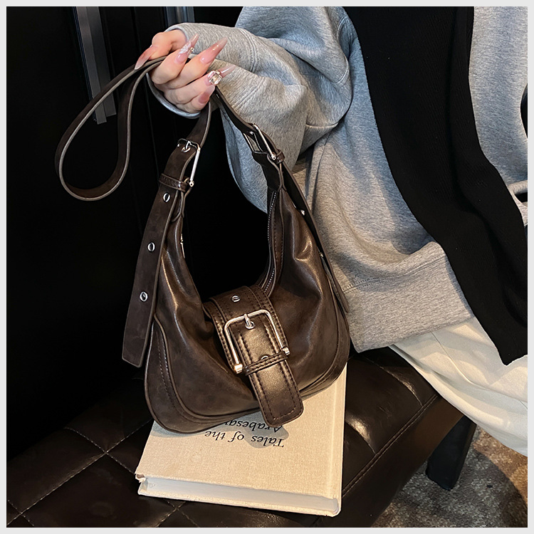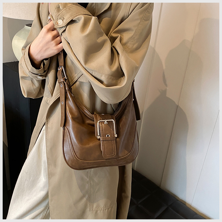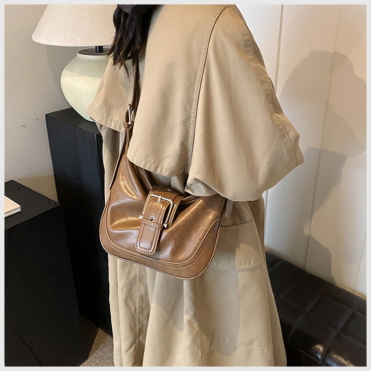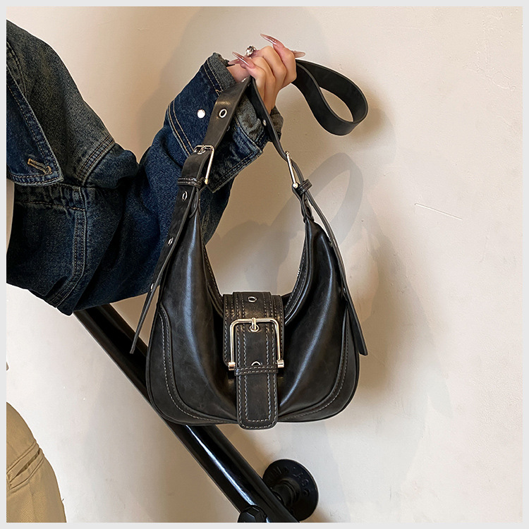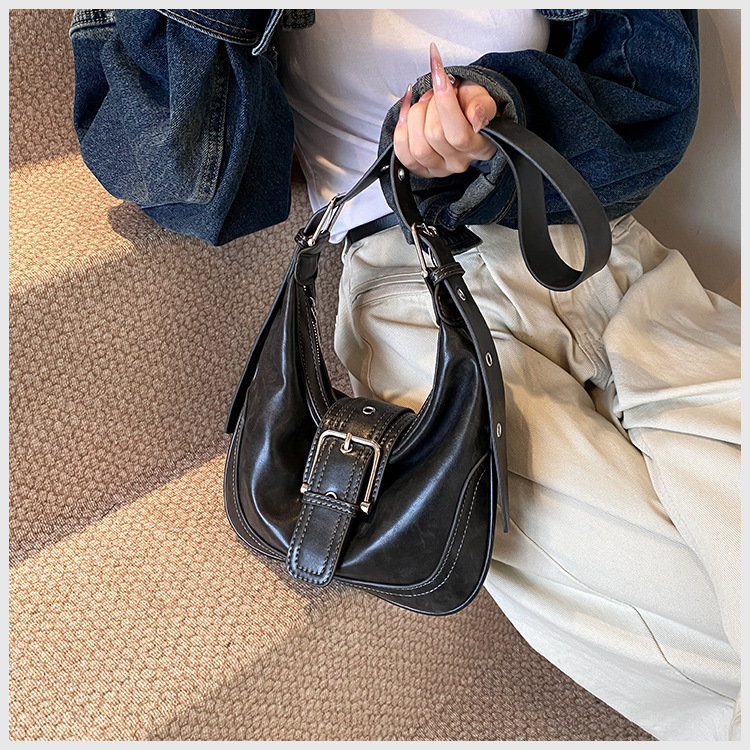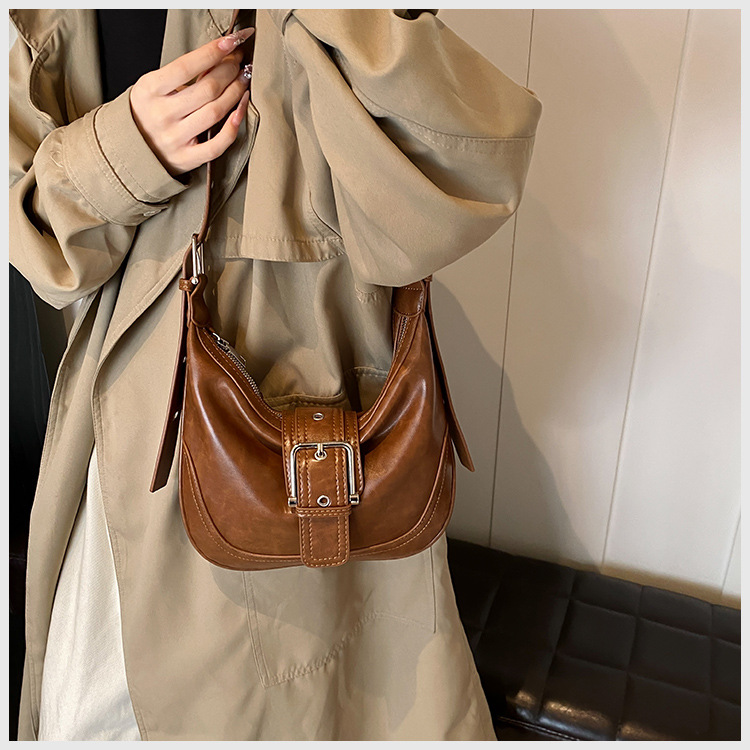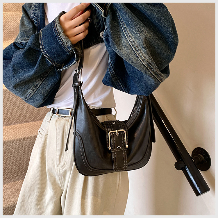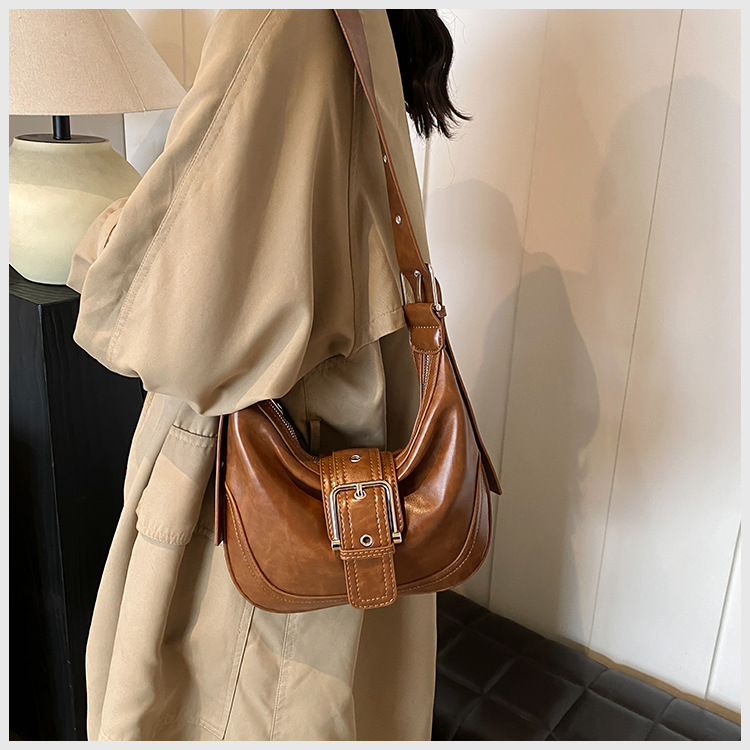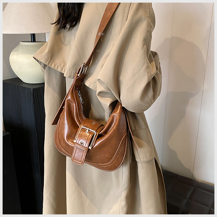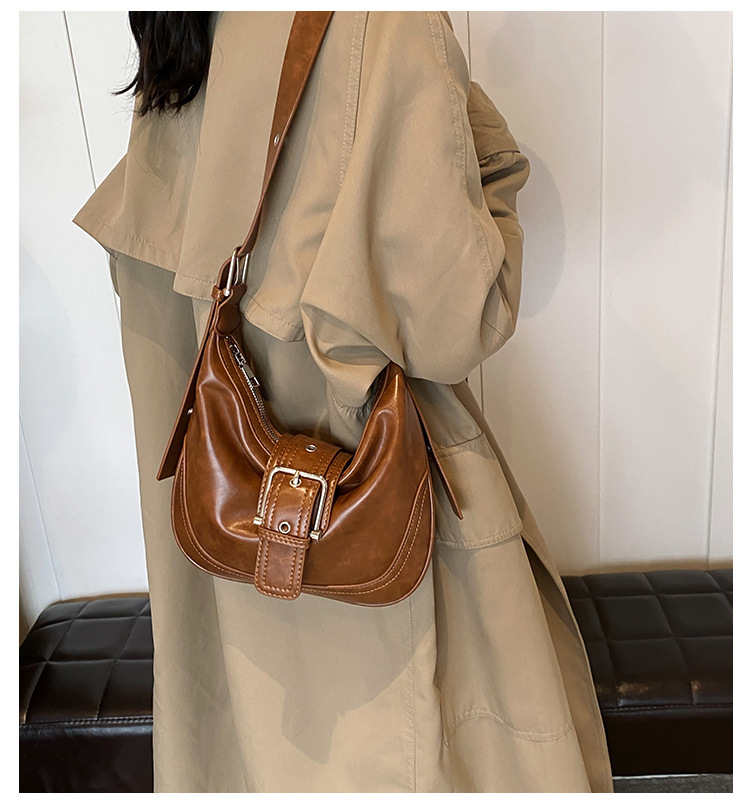 2024新款潮流腋下饺子包女士时尚通勤PU纯色单肩斜挎包