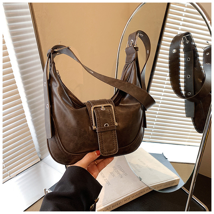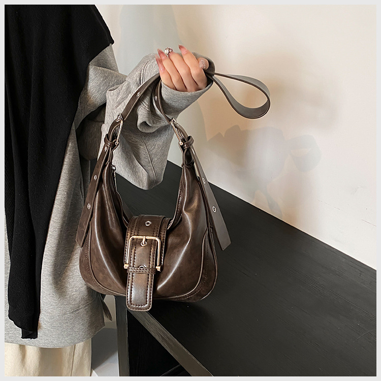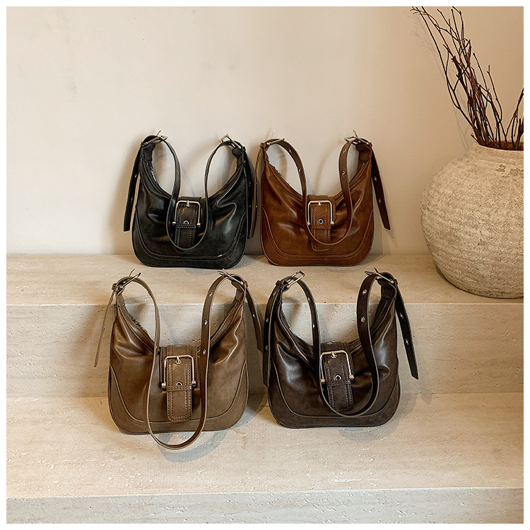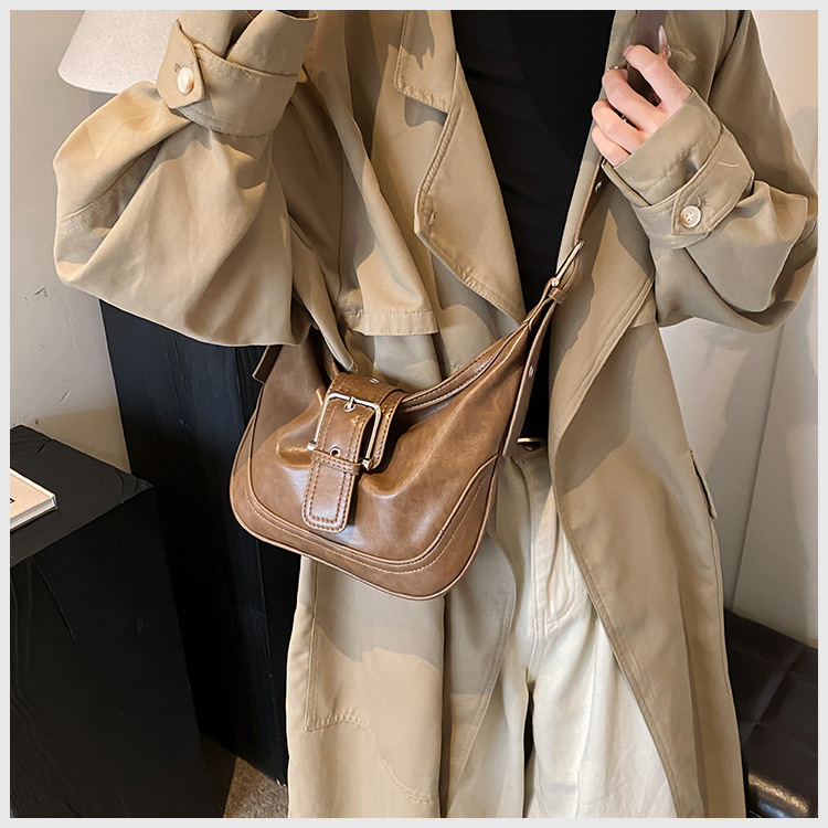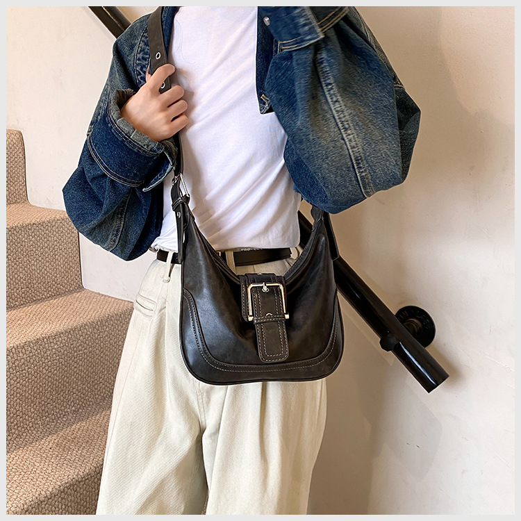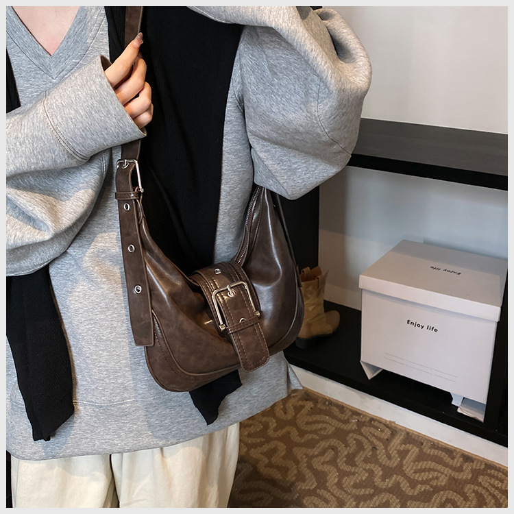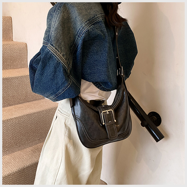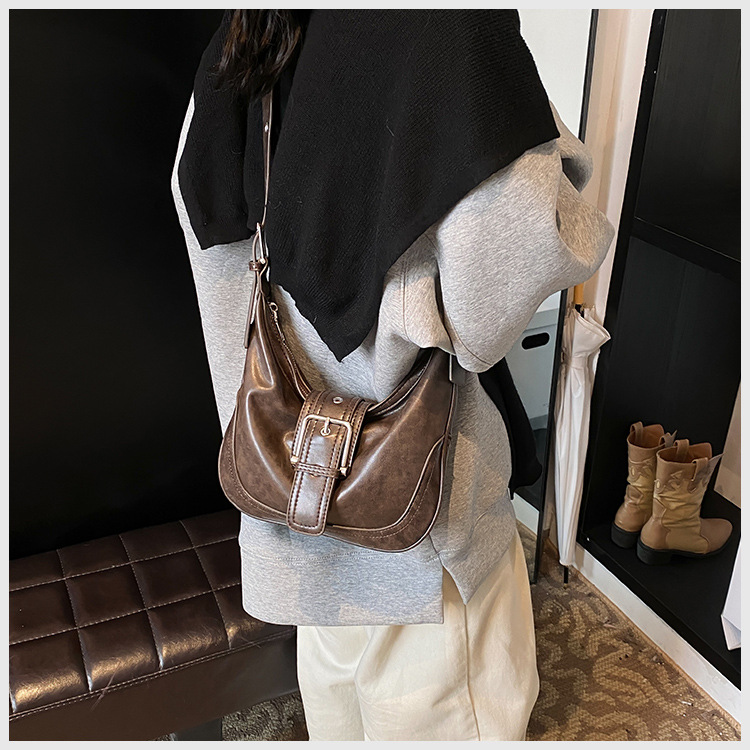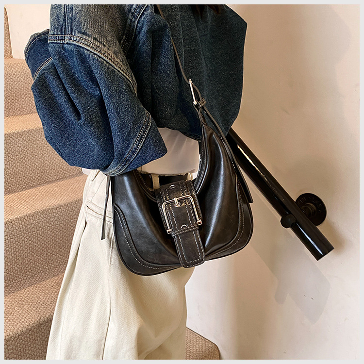2024新款潮流腋下饺子包女士时尚通勤PU纯色单肩斜挎包