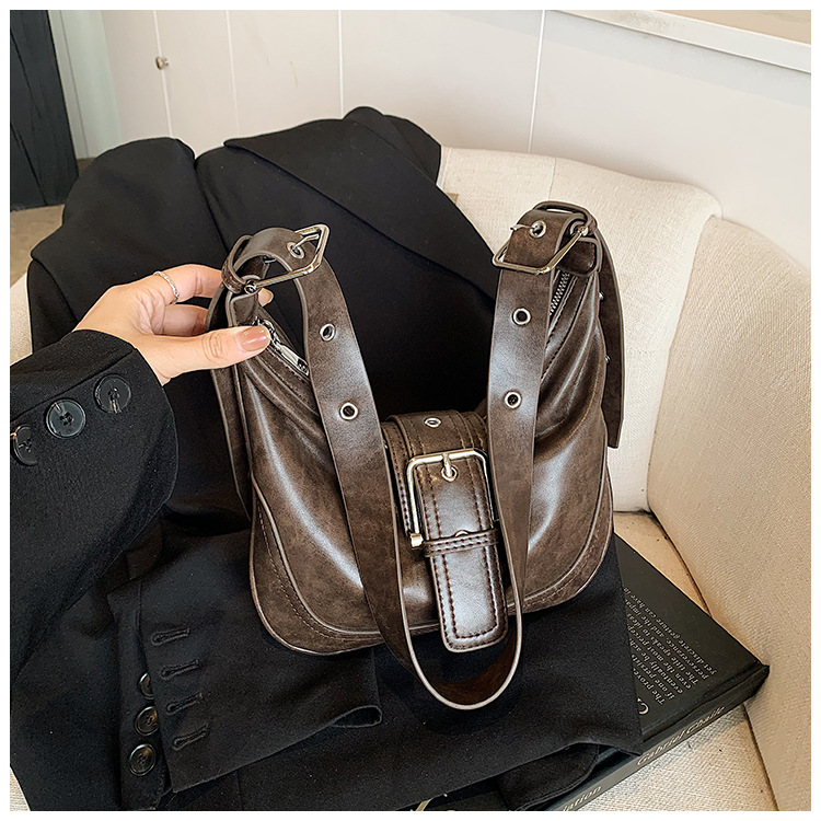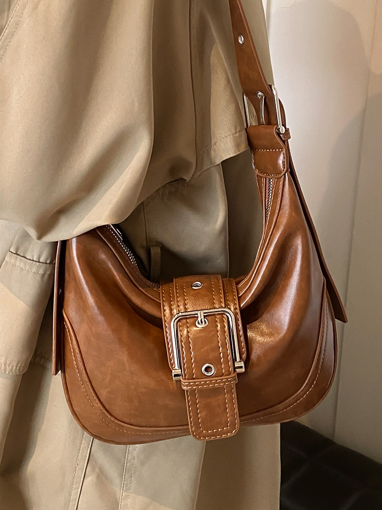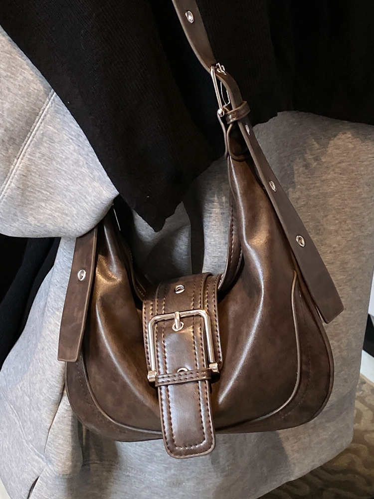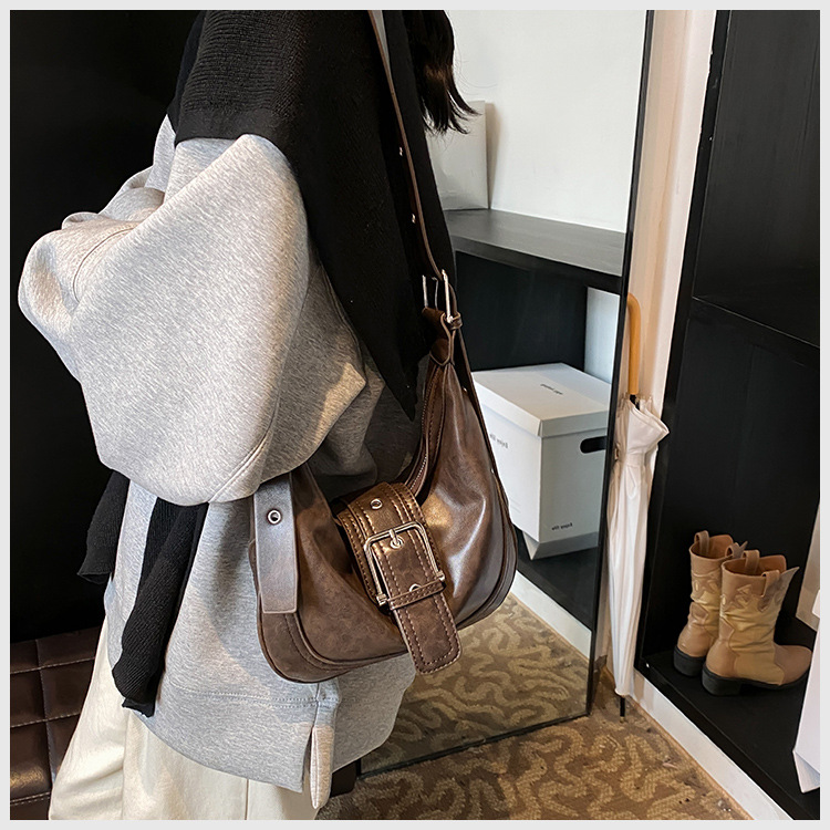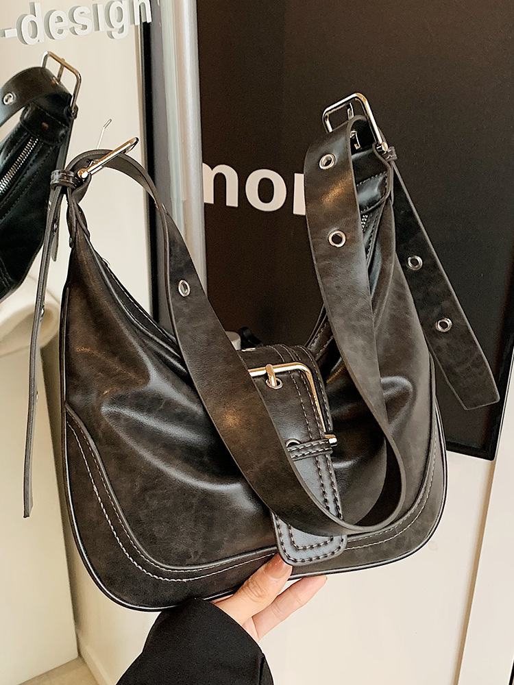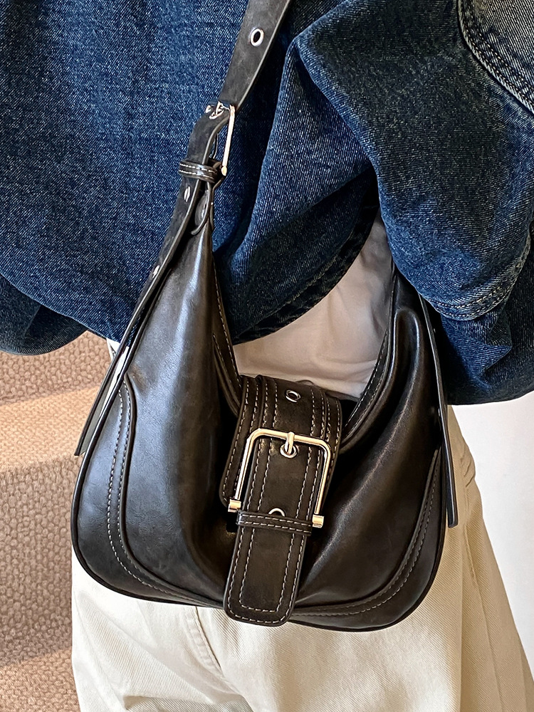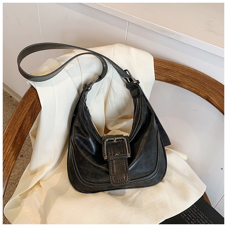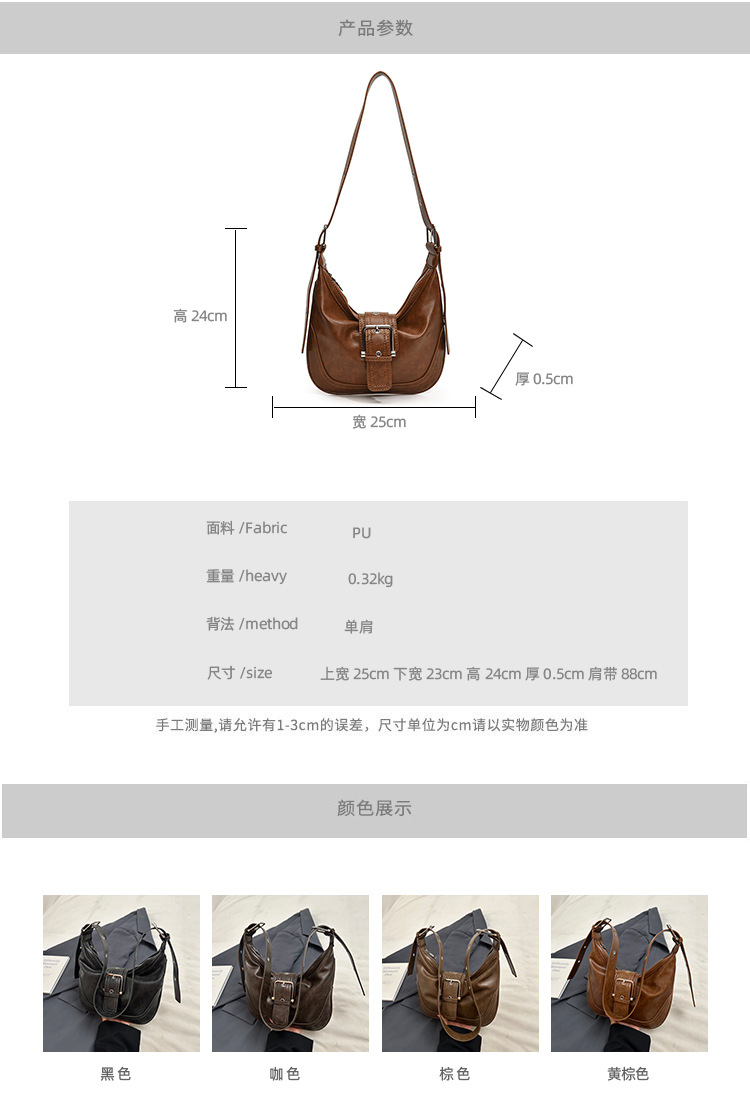 2024新款潮流腋下饺子包女士时尚通勤PU纯色单肩斜挎包