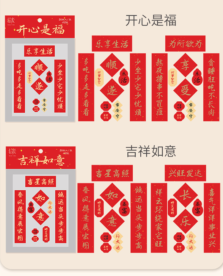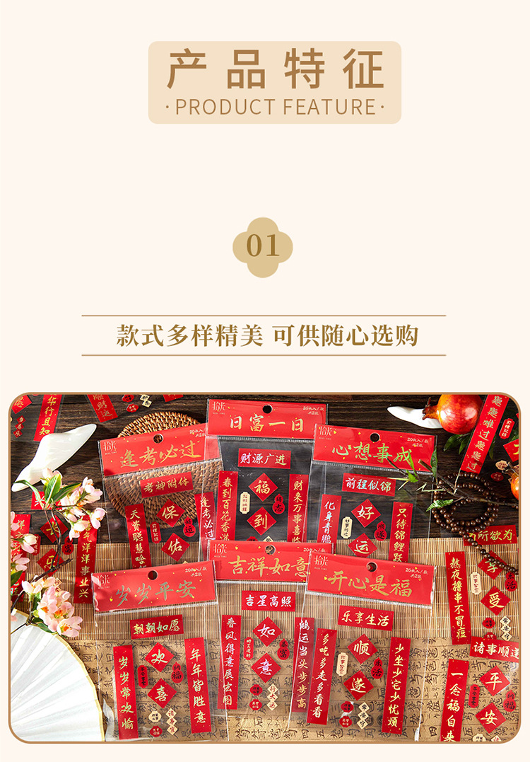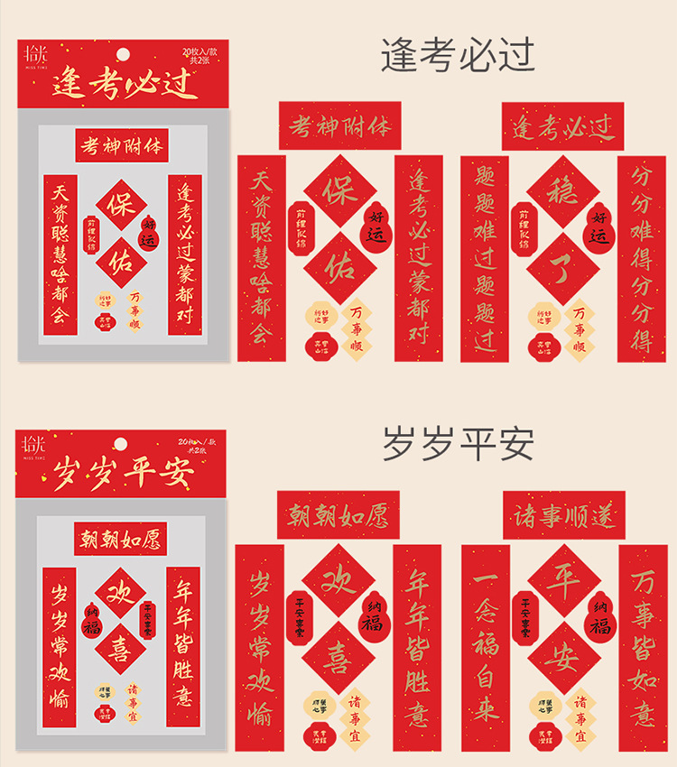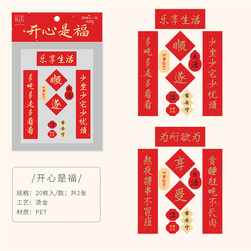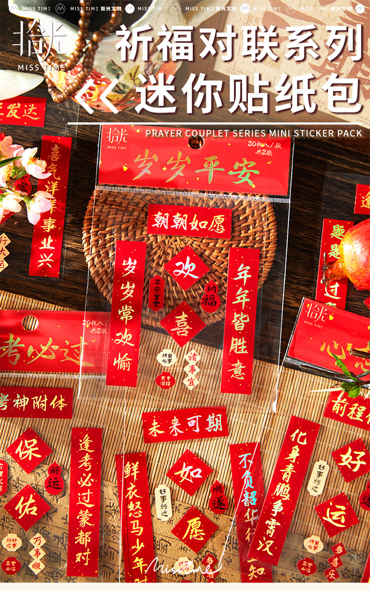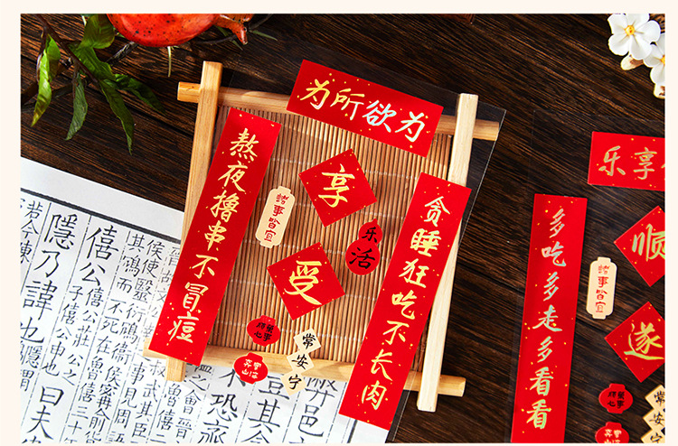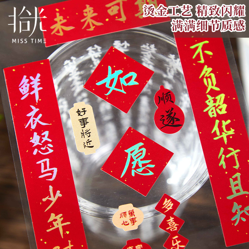 拾光新年对联贴纸包 祈福春节国风烫金手帐学生文字祝福装饰贴纸