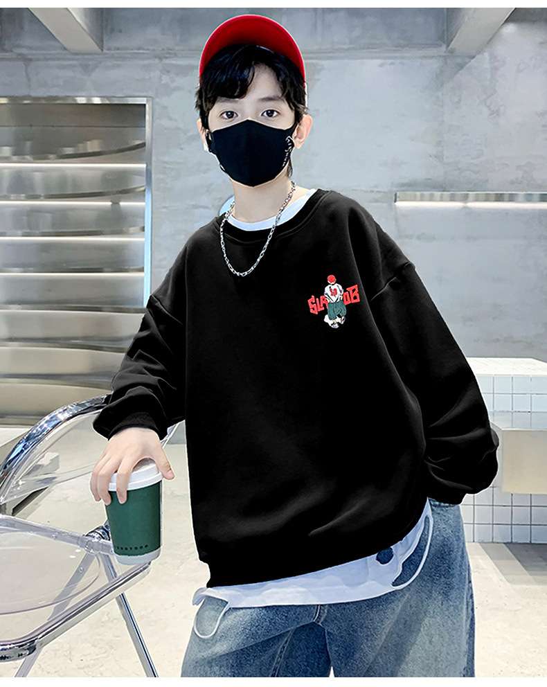 男童春秋装卫衣2024新款中大童男生字母纯色打底衫儿童秋季童装潮