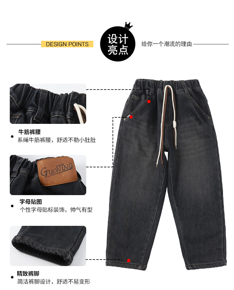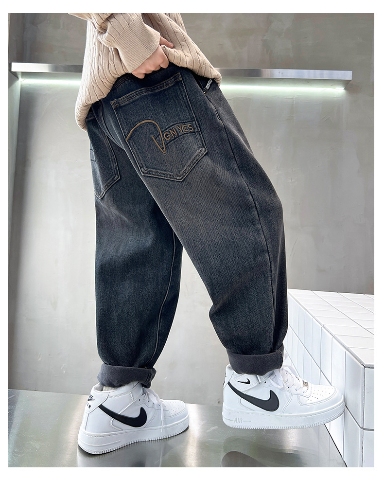 儿童牛仔裤男童春秋款2024新款中大童秋冬季加绒加厚直筒裤子帅气