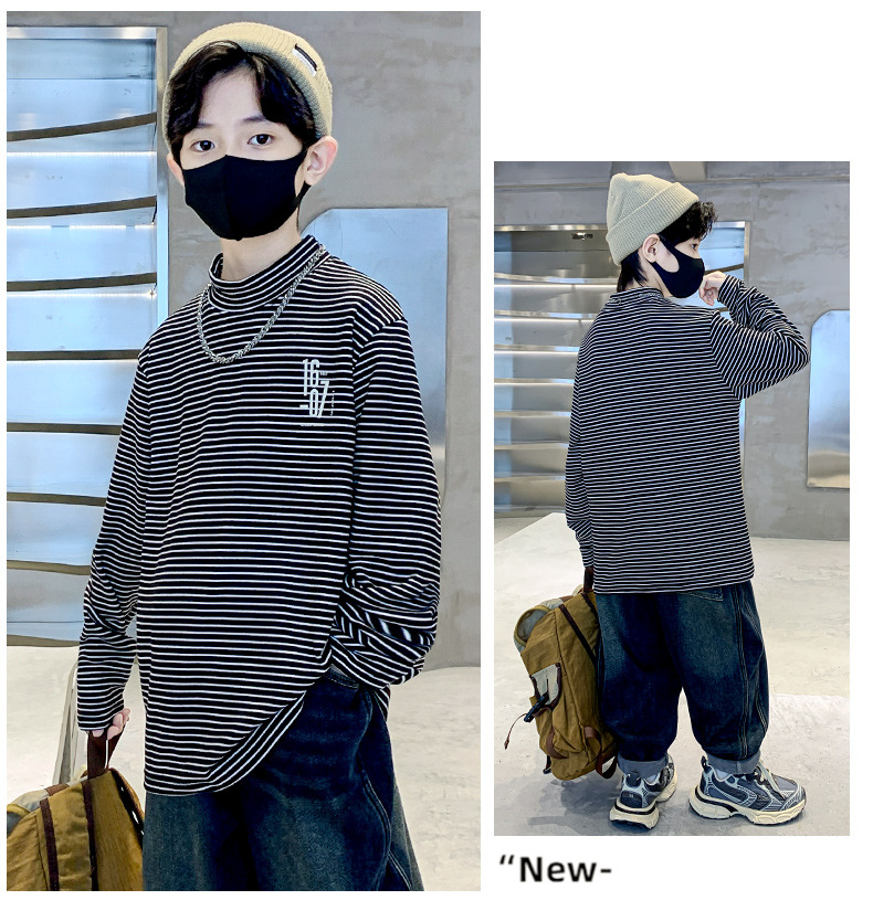 儿童装男童德绒卫衣秋冬款2024新款中大童加厚条纹保暖内衣打底衫