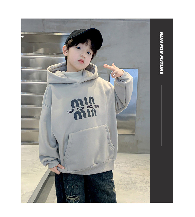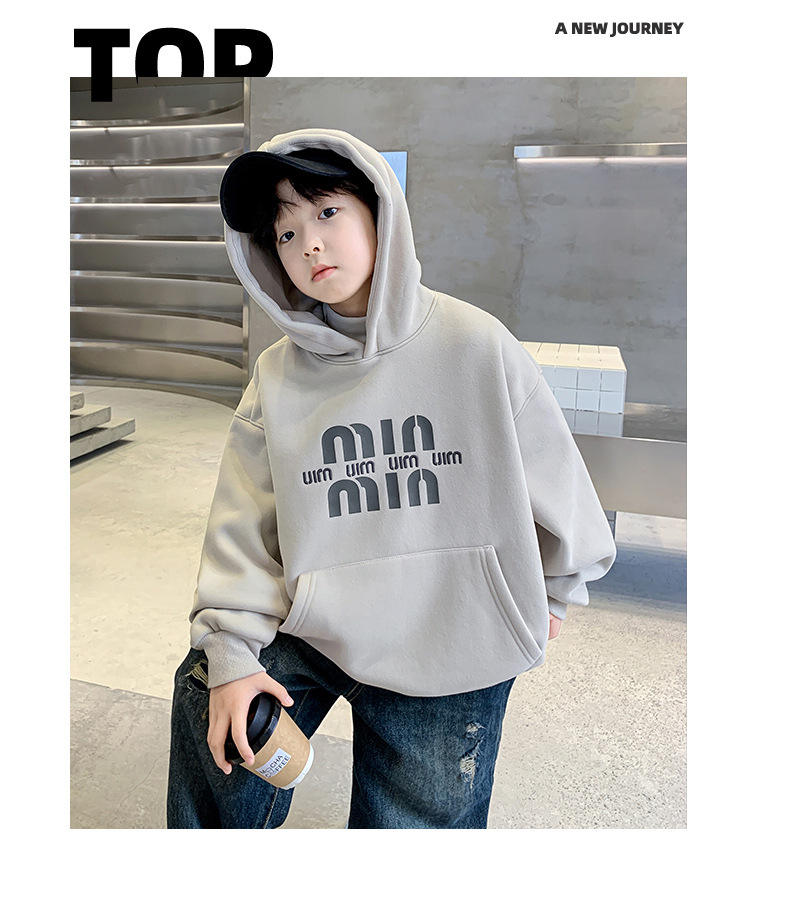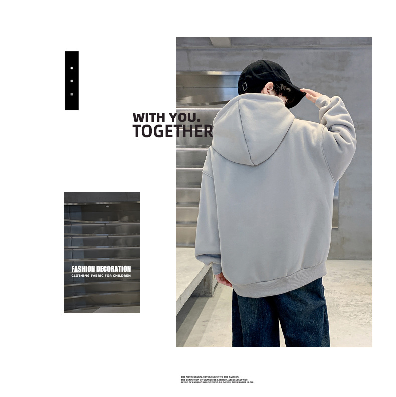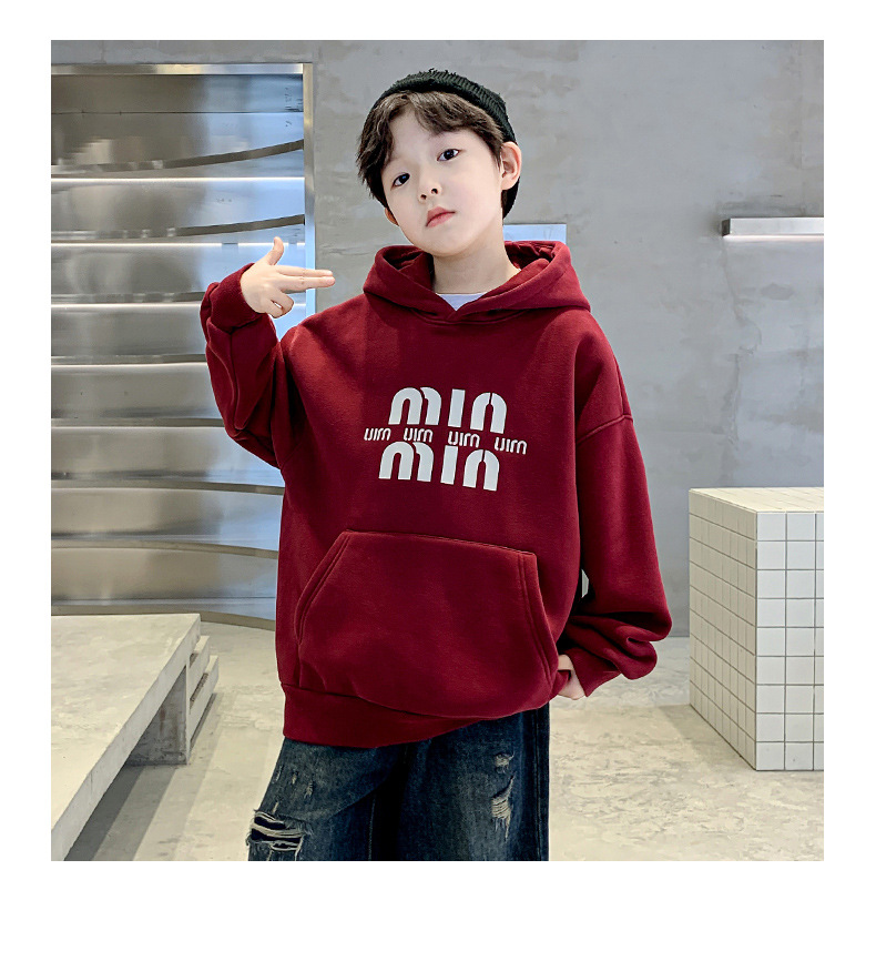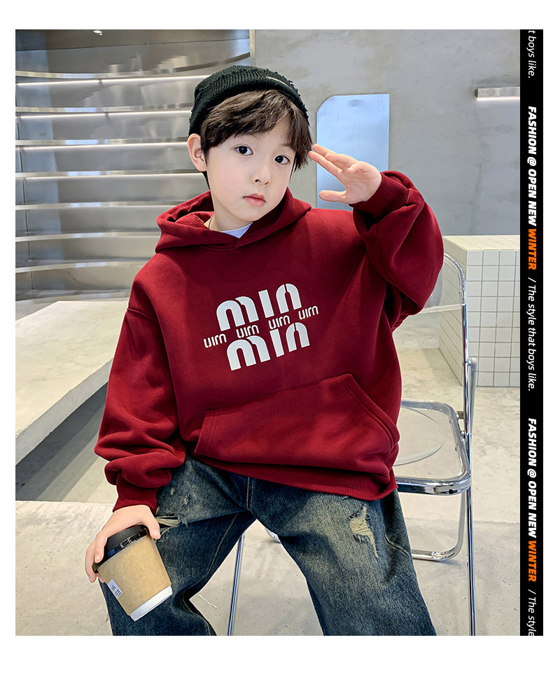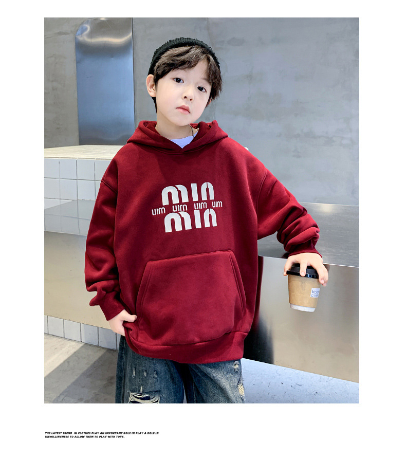 男童安哥拉红连帽卫衣加绒2024新款中大童加厚打底衫儿童冬装衣服