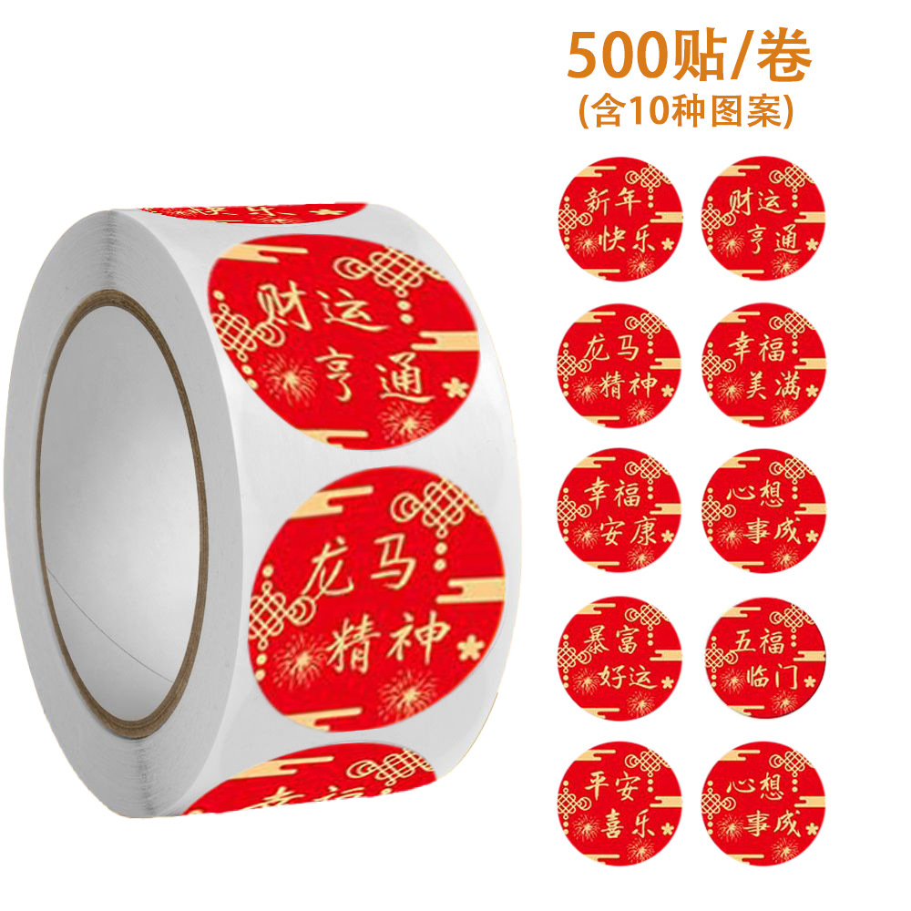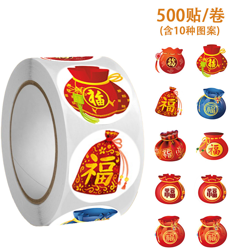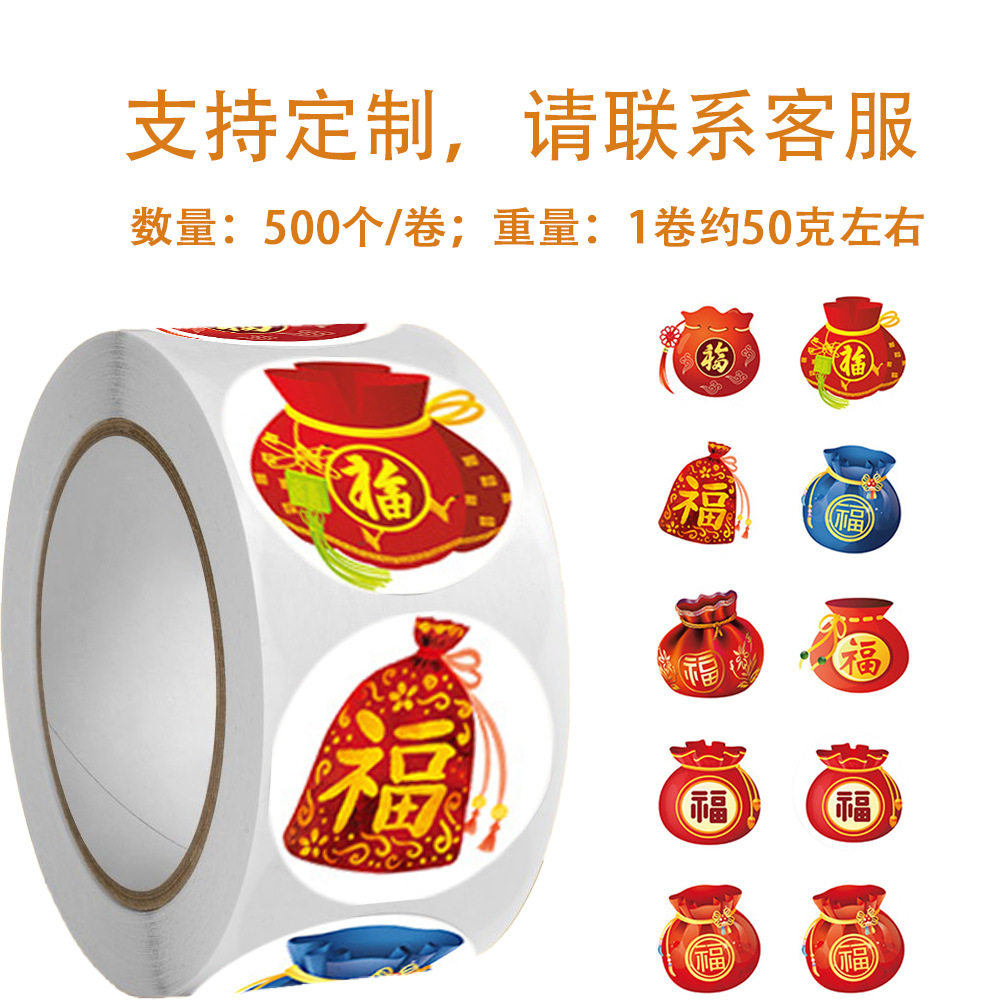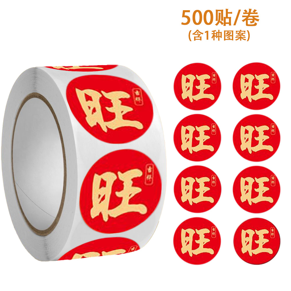 新款圆形福旺字感谢字金字新年利是封口贴纸礼物礼品装饰春节标签
