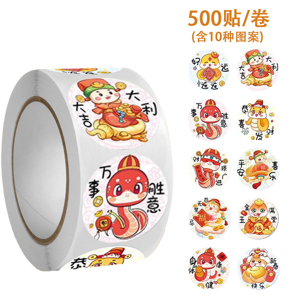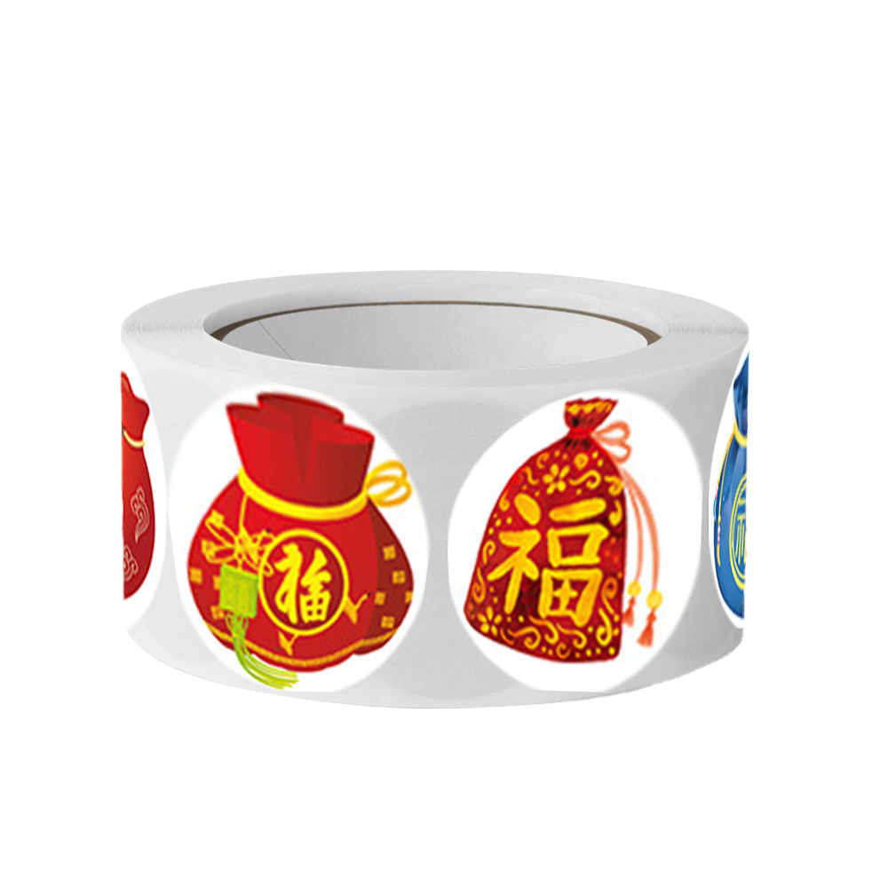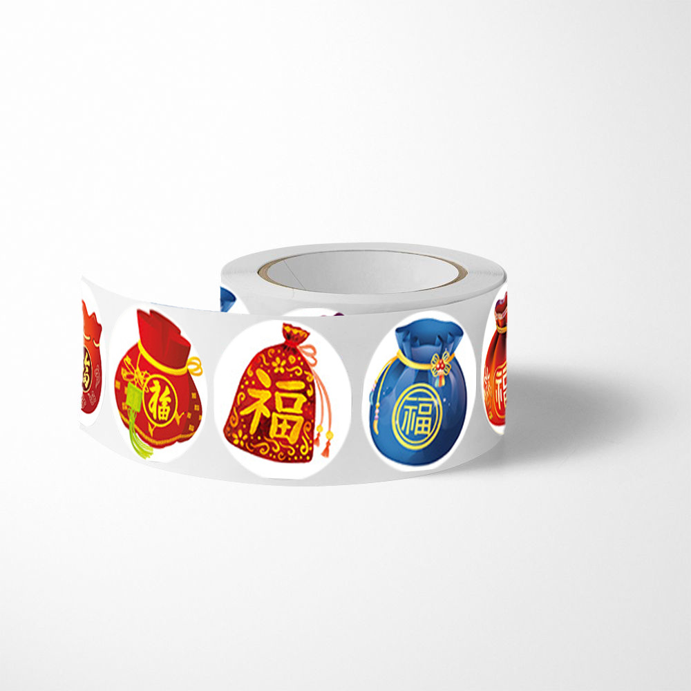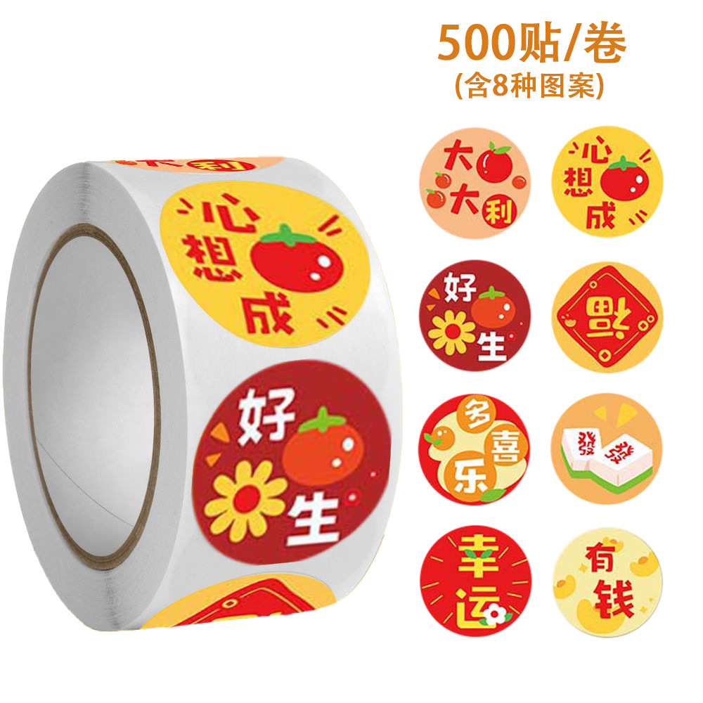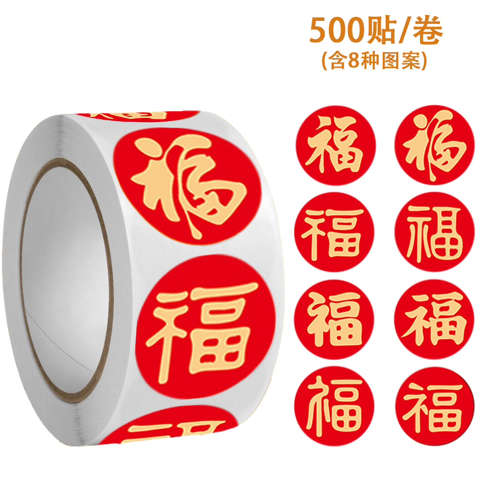 新款圆形福旺字感谢字金字新年利是封口贴纸礼物礼品装饰春节标签