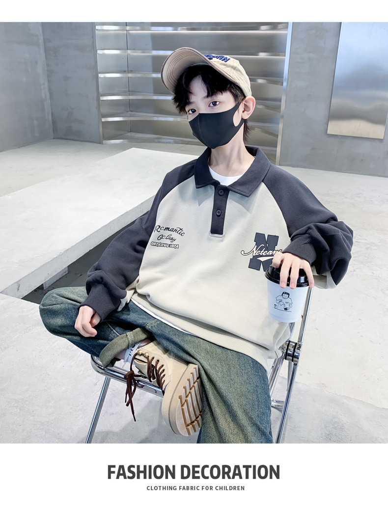 男童春秋季洋气卫衣2024新款中大童冬季一体加绒POLO衫打底衫上衣