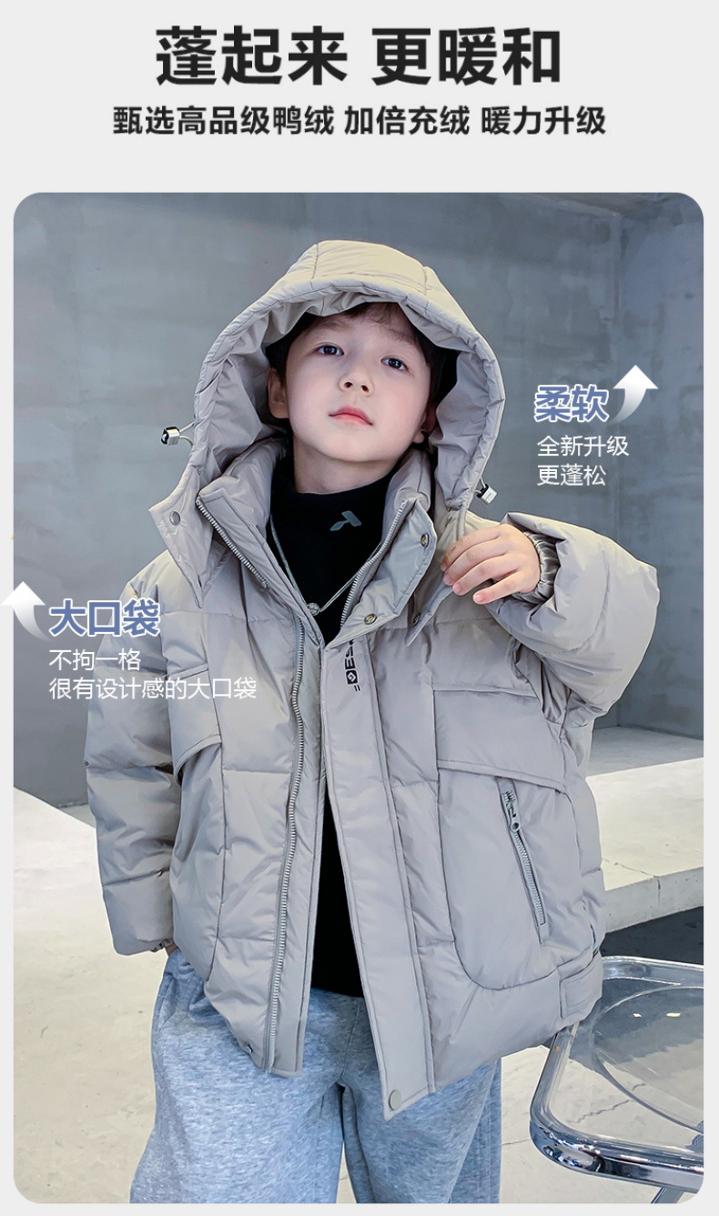 儿童羽绒服三防冬装外套2024新款中大男童青少年连帽上衣冬款帅气