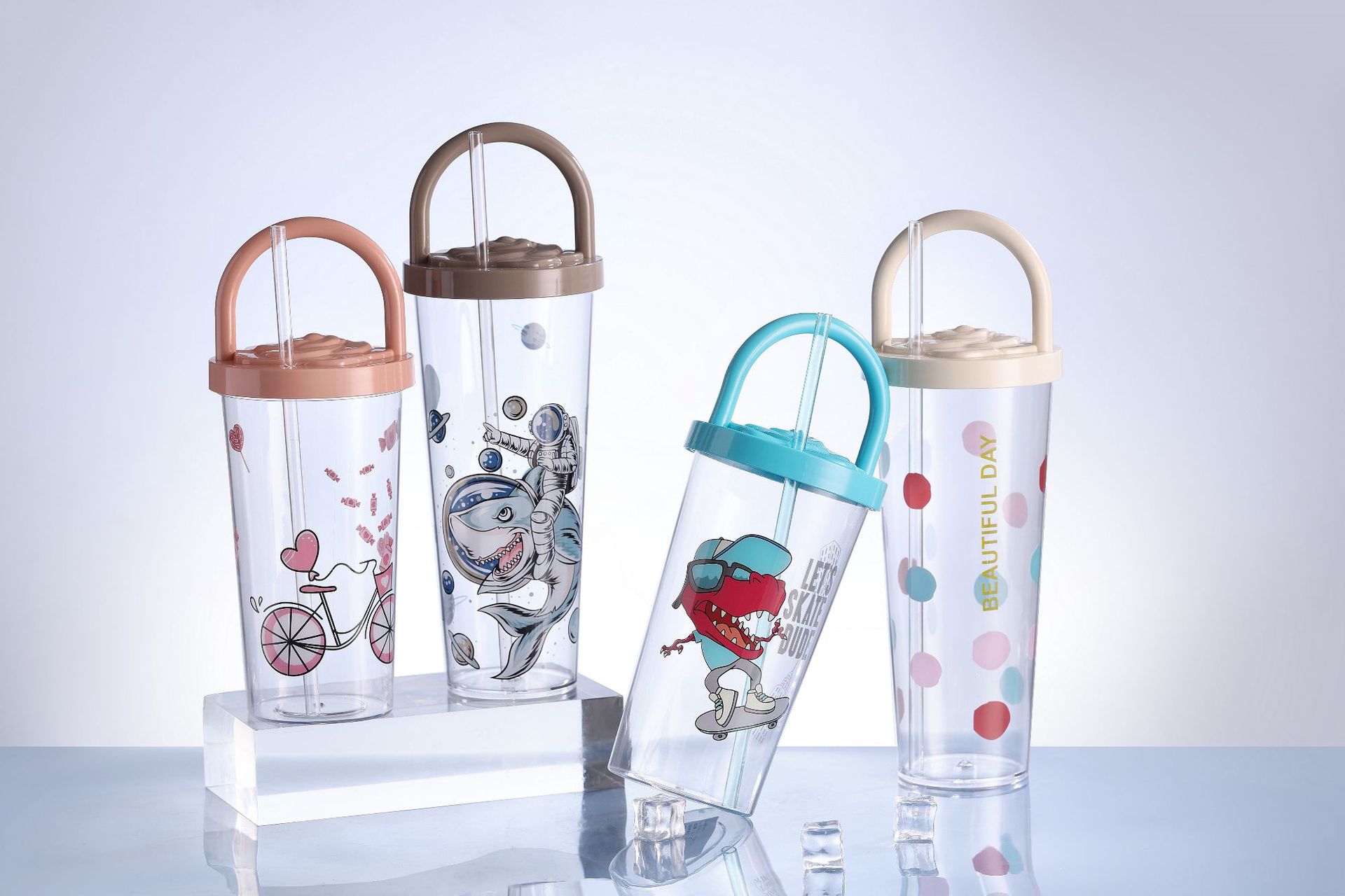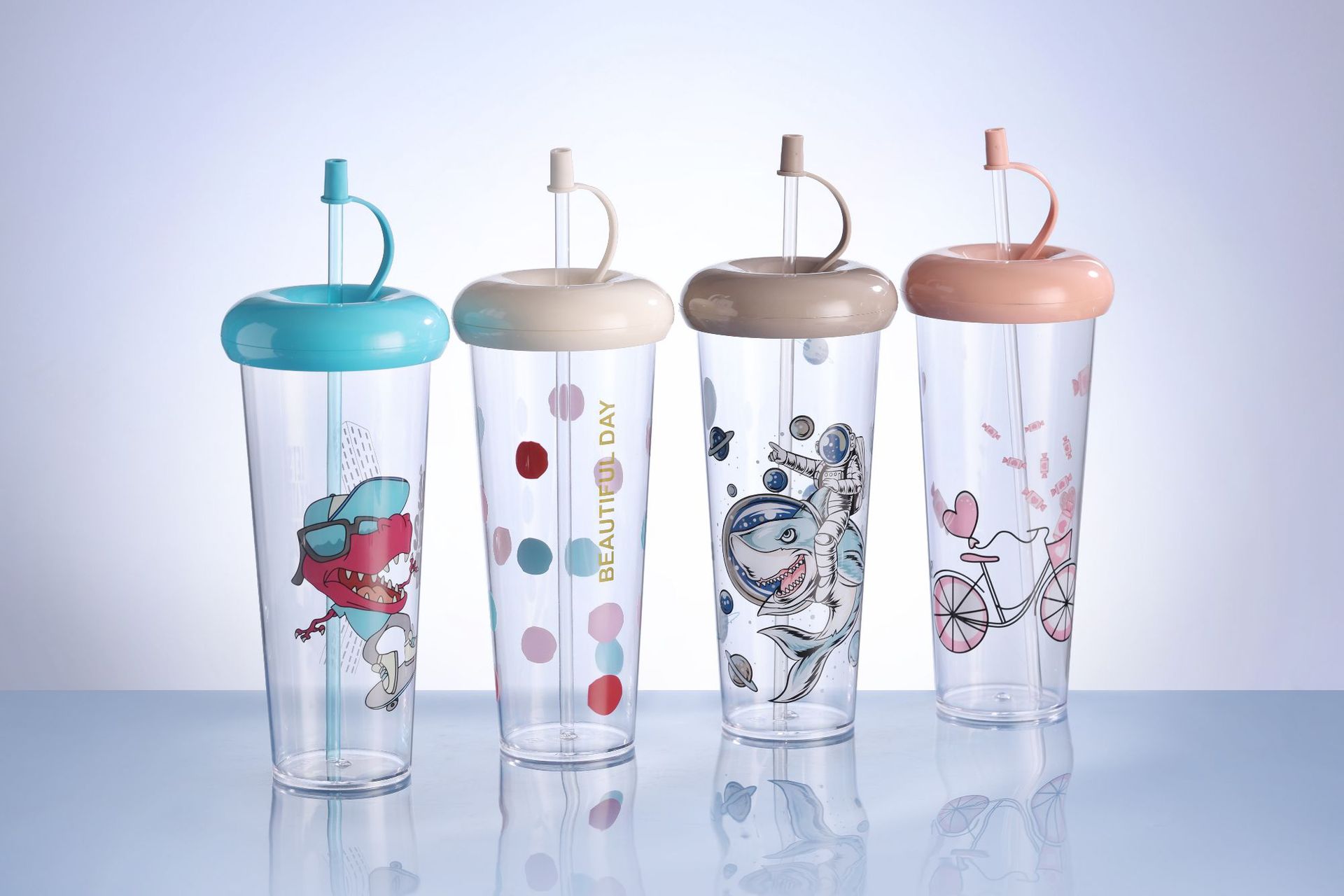 新款卡通吸管杯口杯吸管杯真空吸管塑料杯可装珍珠奶茶吸管杯子