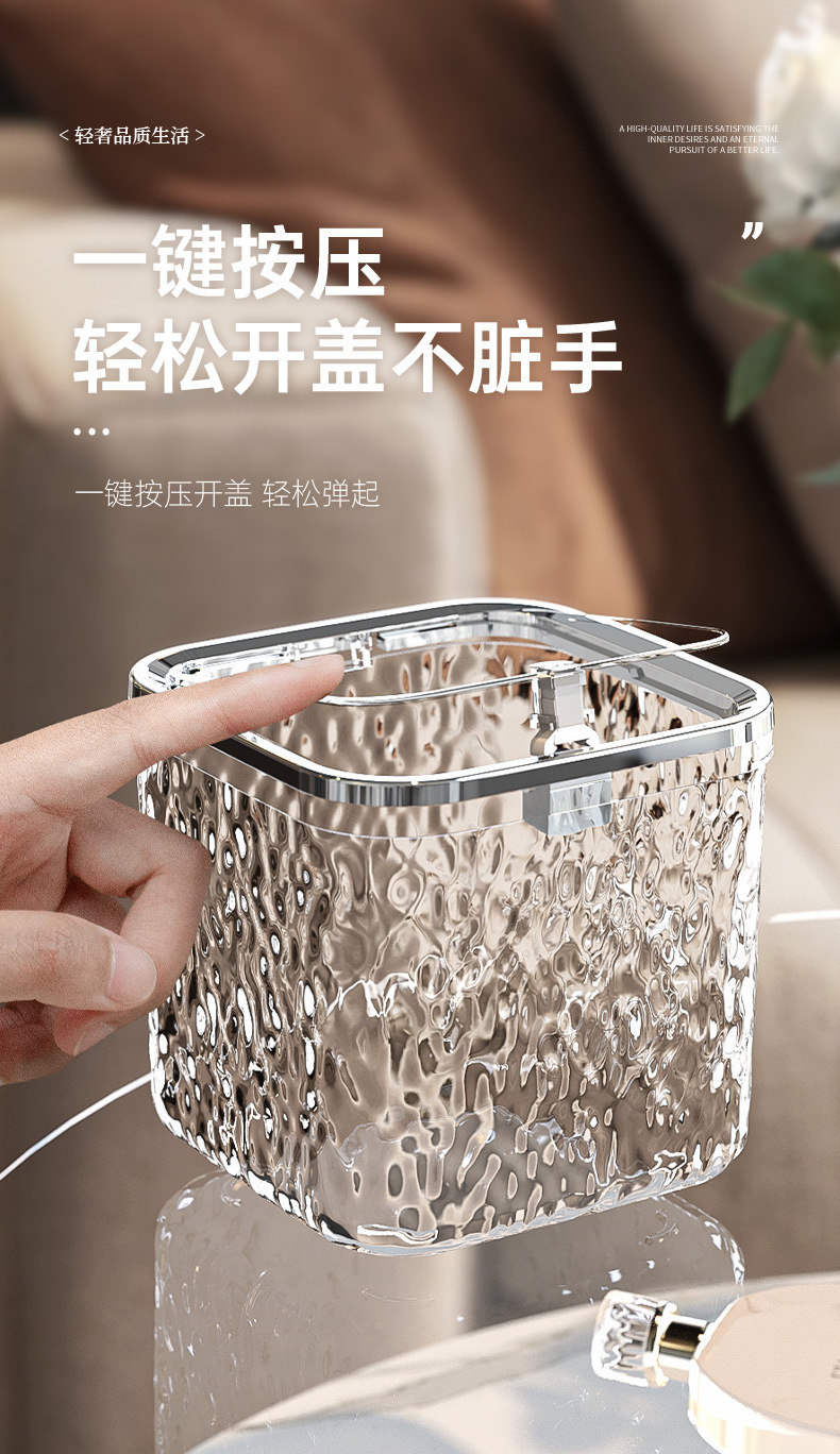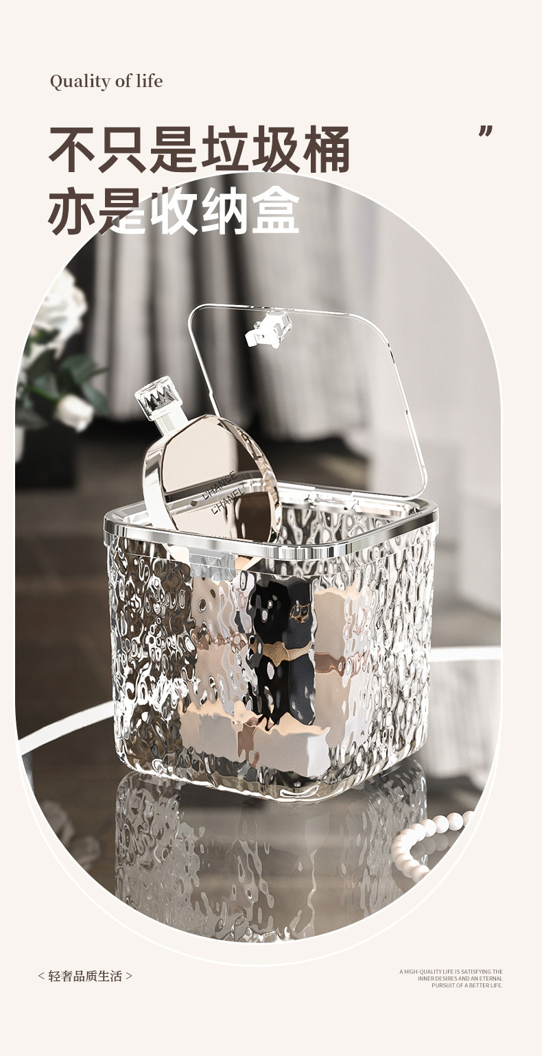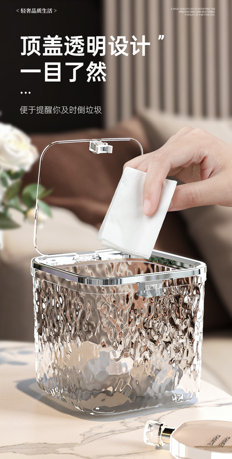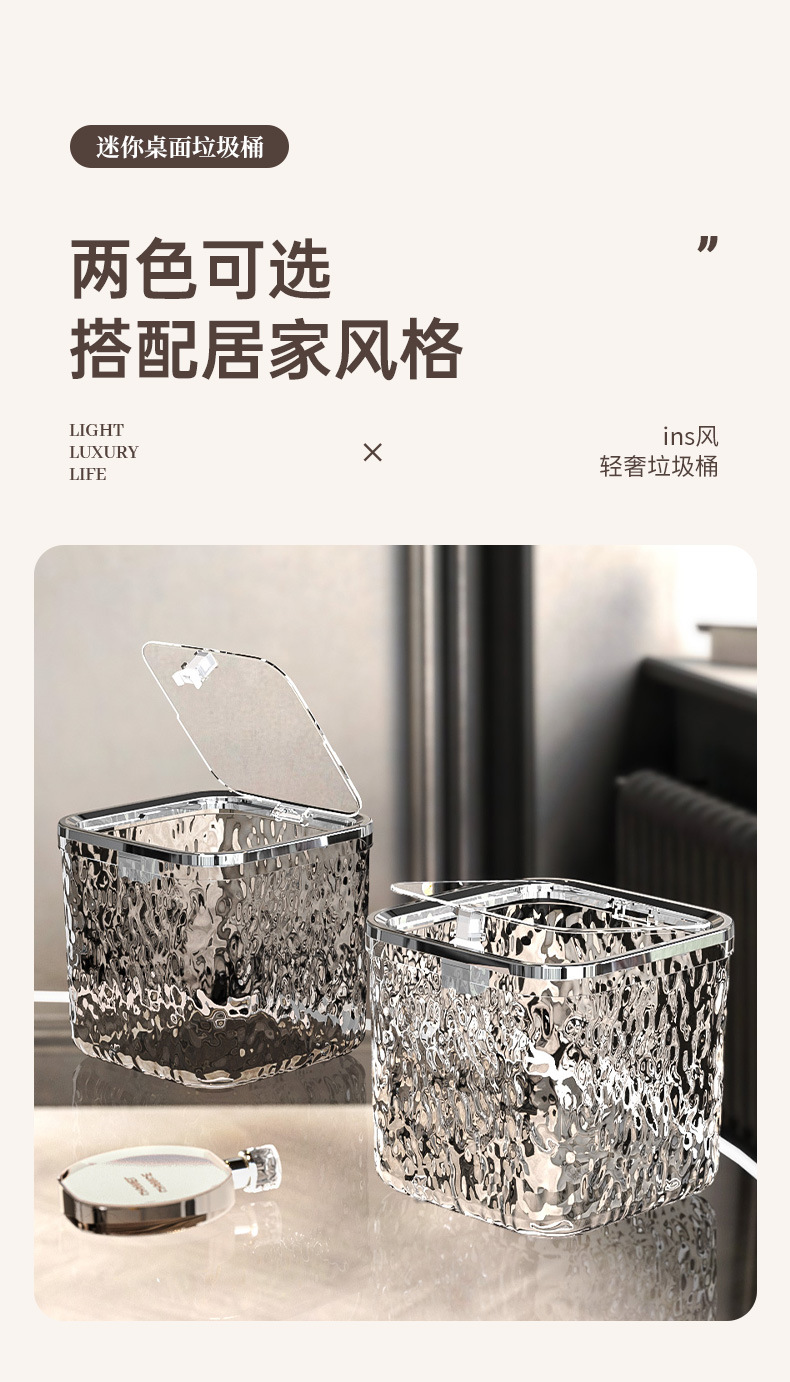 新款桌面水波纹垃圾桶客厅茶几办公室床头带盖卧室多用收纳垃圾桶
