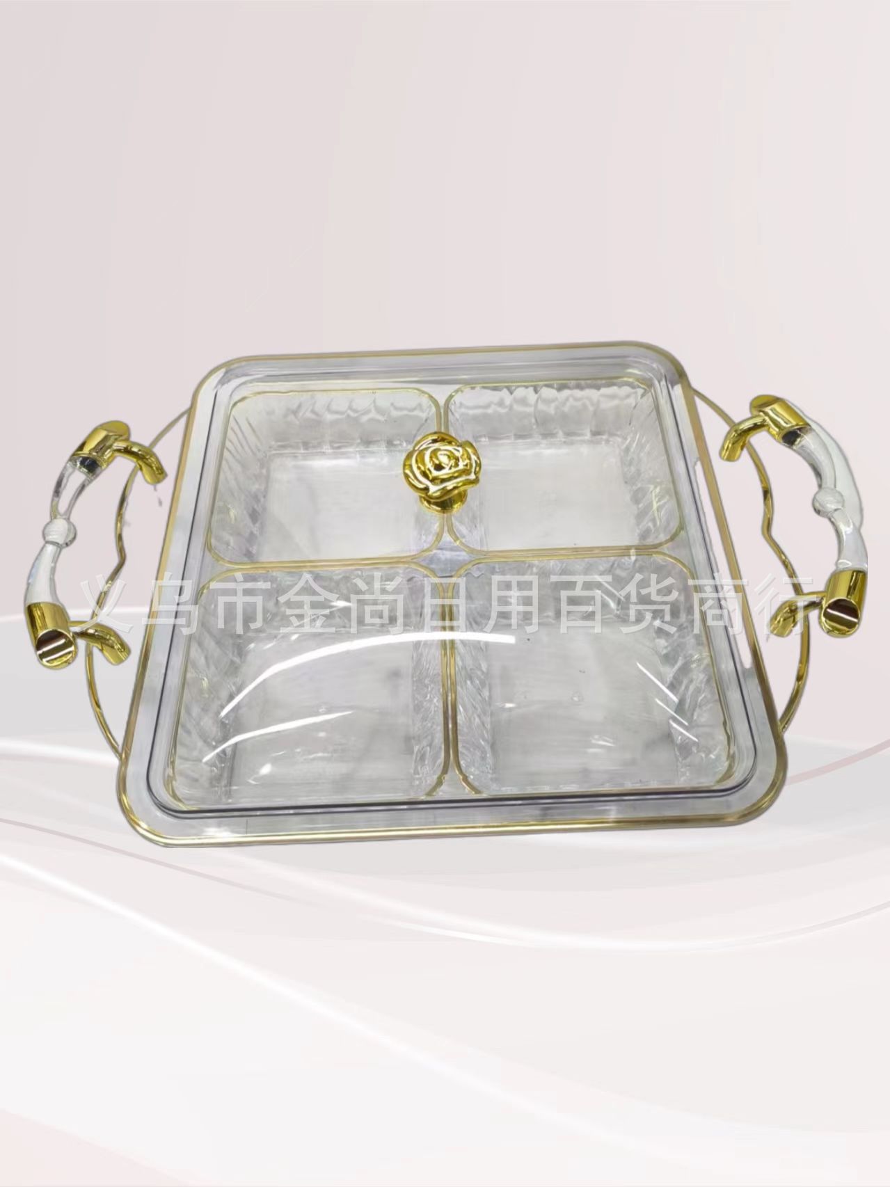 新款点心分格带盖干果盘家用客厅零食糖果盘KTV美容院会所水果盘