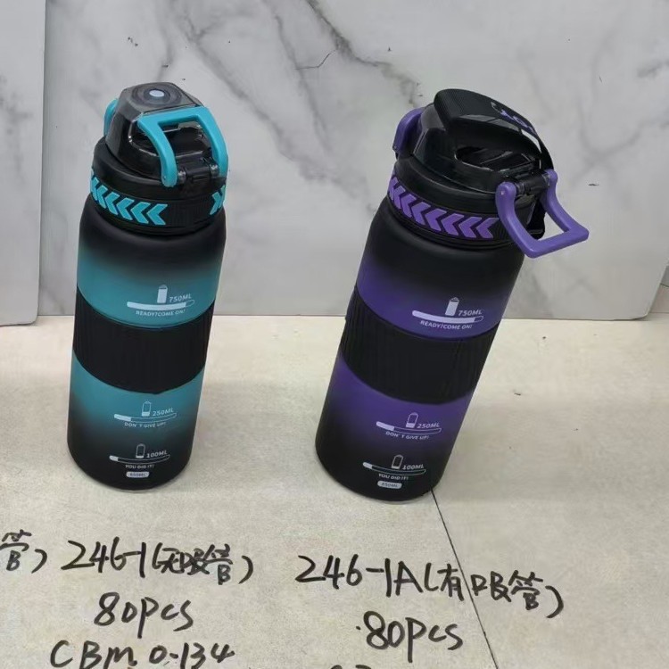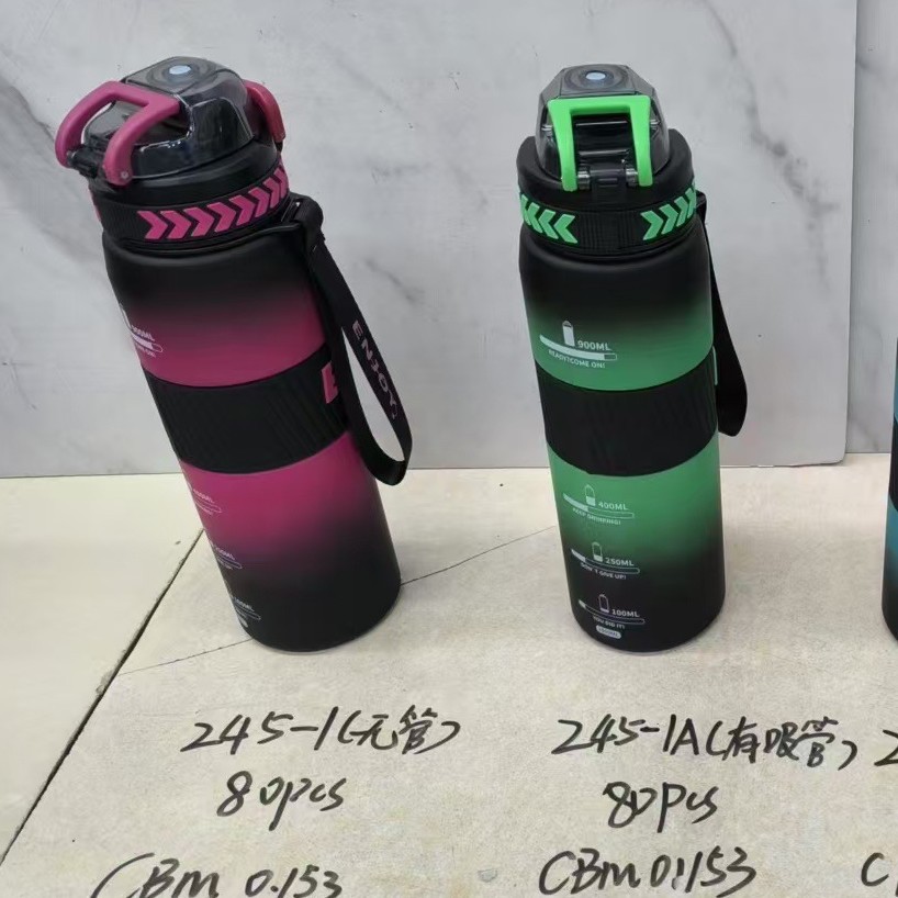 新款弹跳盖水杯带吸管提手户外运动学生太空杯1000/850ml塑料杯