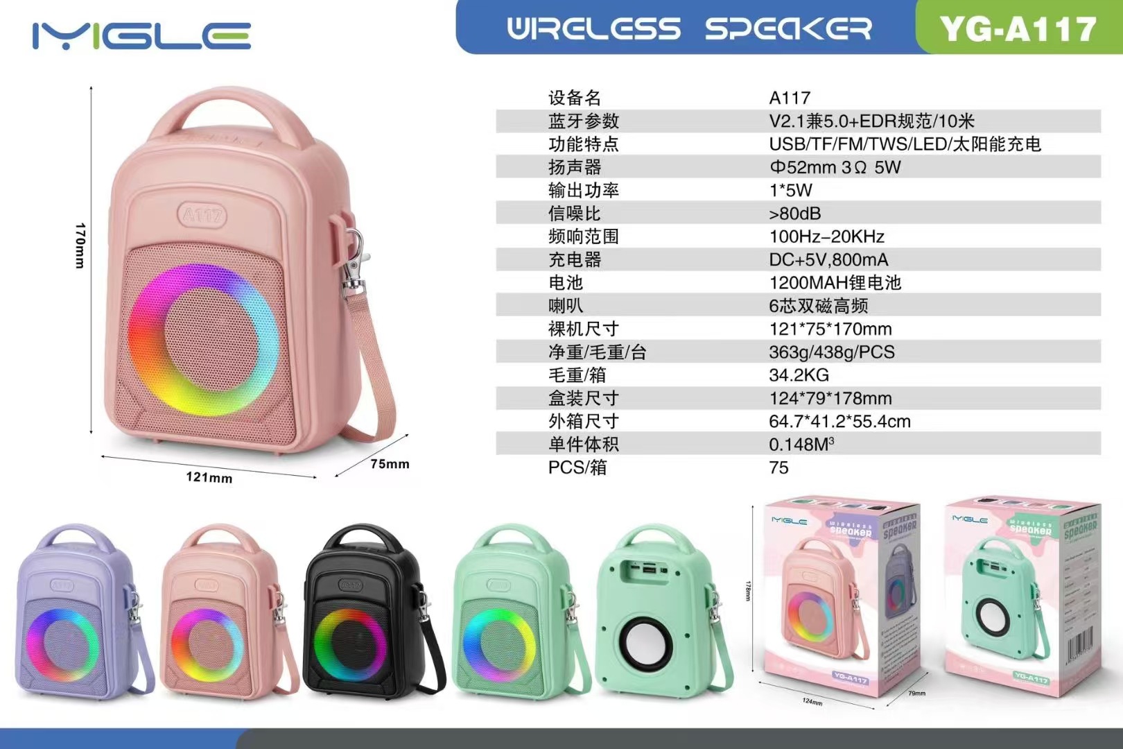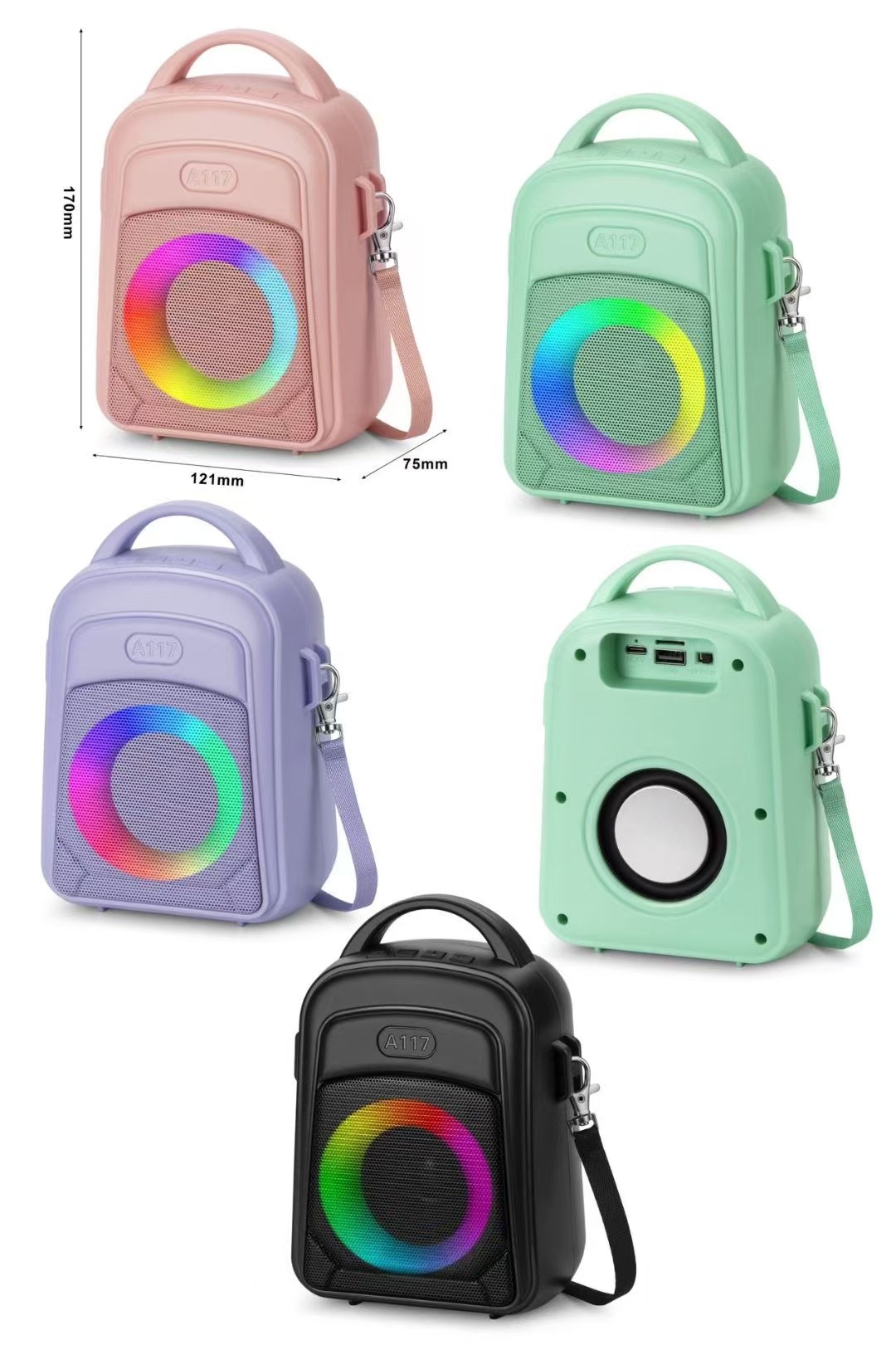 A117 跨境蓝牙音响非洲爆款太阳能户外便携手提RGB灯圈收音机音箱