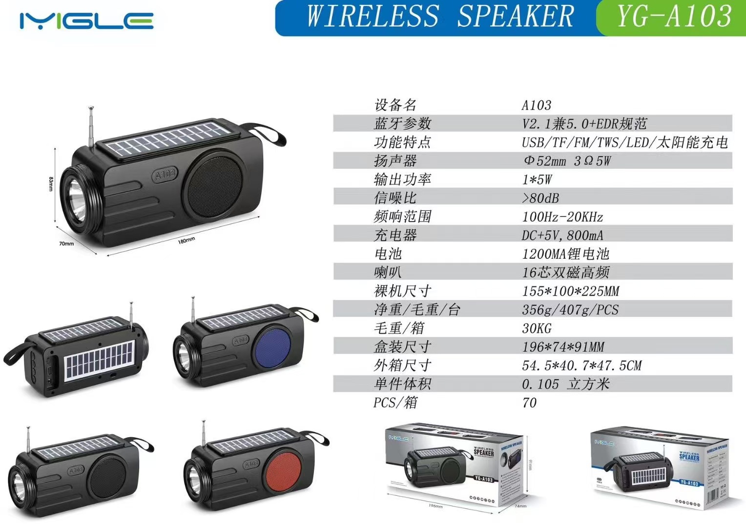 A103非洲户外太阳能蓝牙音响便携式手电筒手提插卡收音机无线音箱