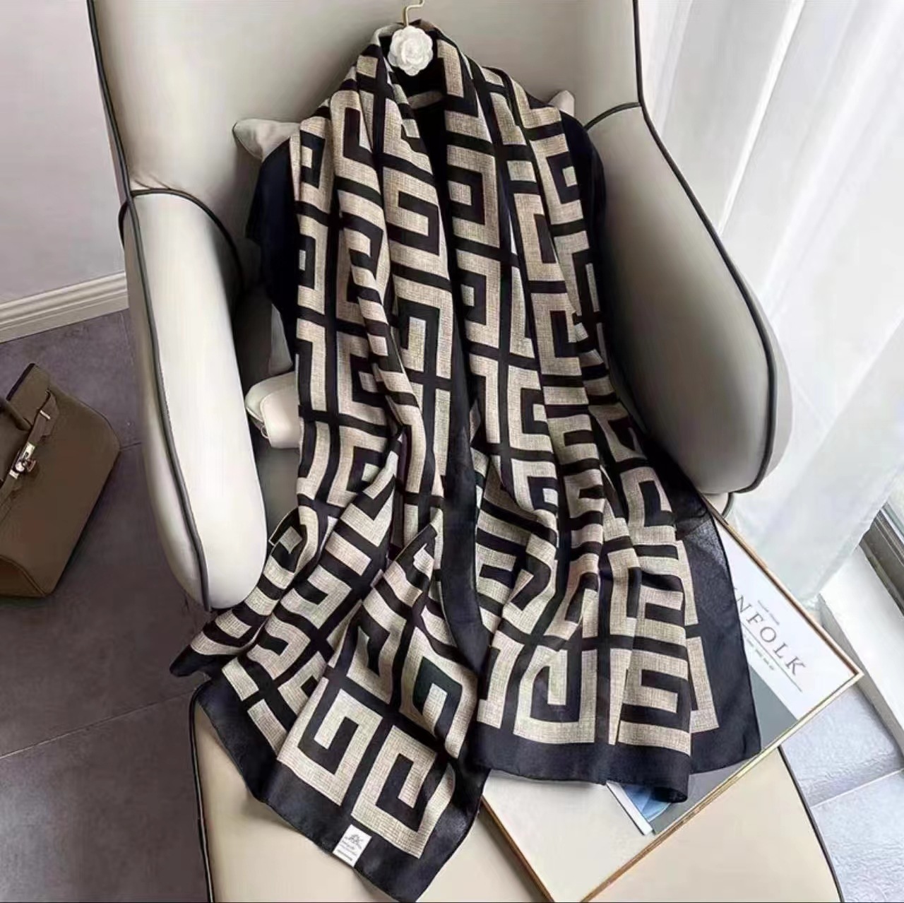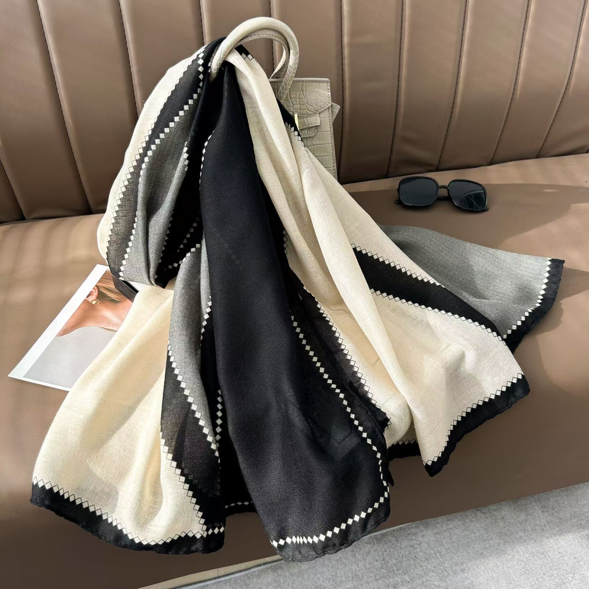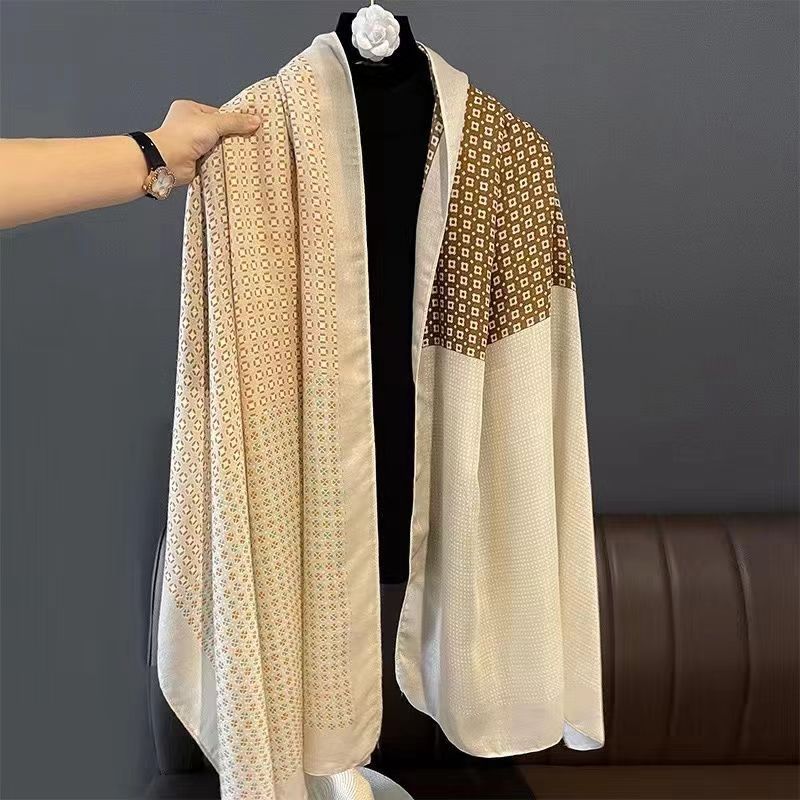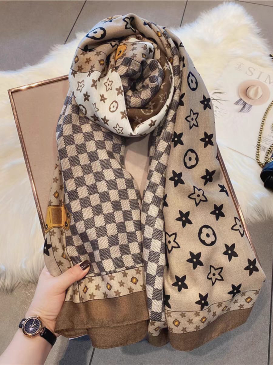 冬季保暖丝巾女两用围巾高级感春秋百搭棉麻披肩洋气时尚女士印花