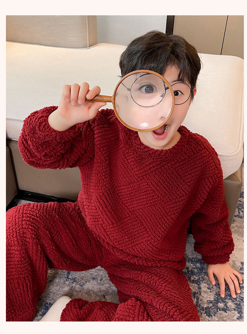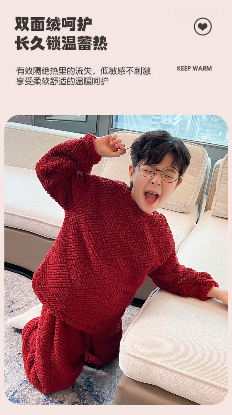 男童红色珊瑚绒家居服套装2024新款中大儿童装秋冬装加厚喜庆睡衣