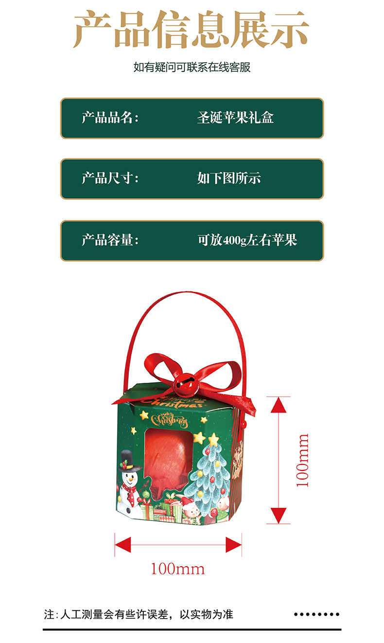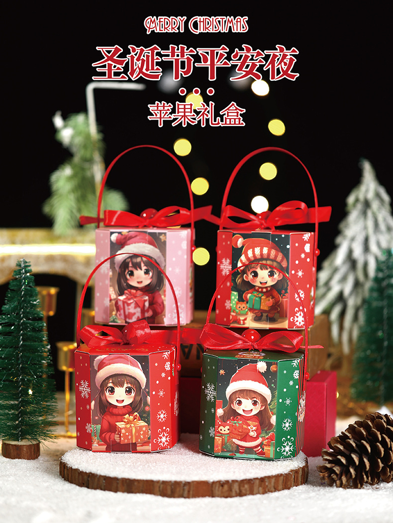 新款圣诞礼盒加厚开窗手提糖果礼物盒子平安夜平安果礼品包装现货