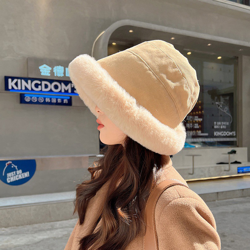 防寒防风护耳盆帽毛绒帽子卡其色民族帽新款卷边时尚蒙古帽子