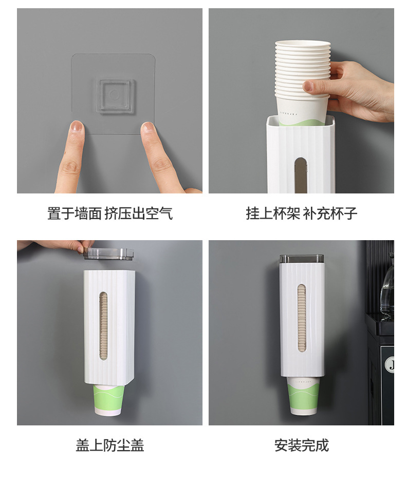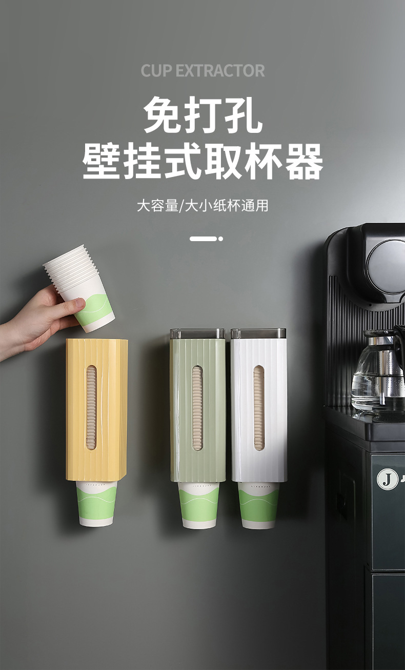 多色简约自动取杯器免打孔一次性纸杯架挂壁式纸杯架创意收纳置物