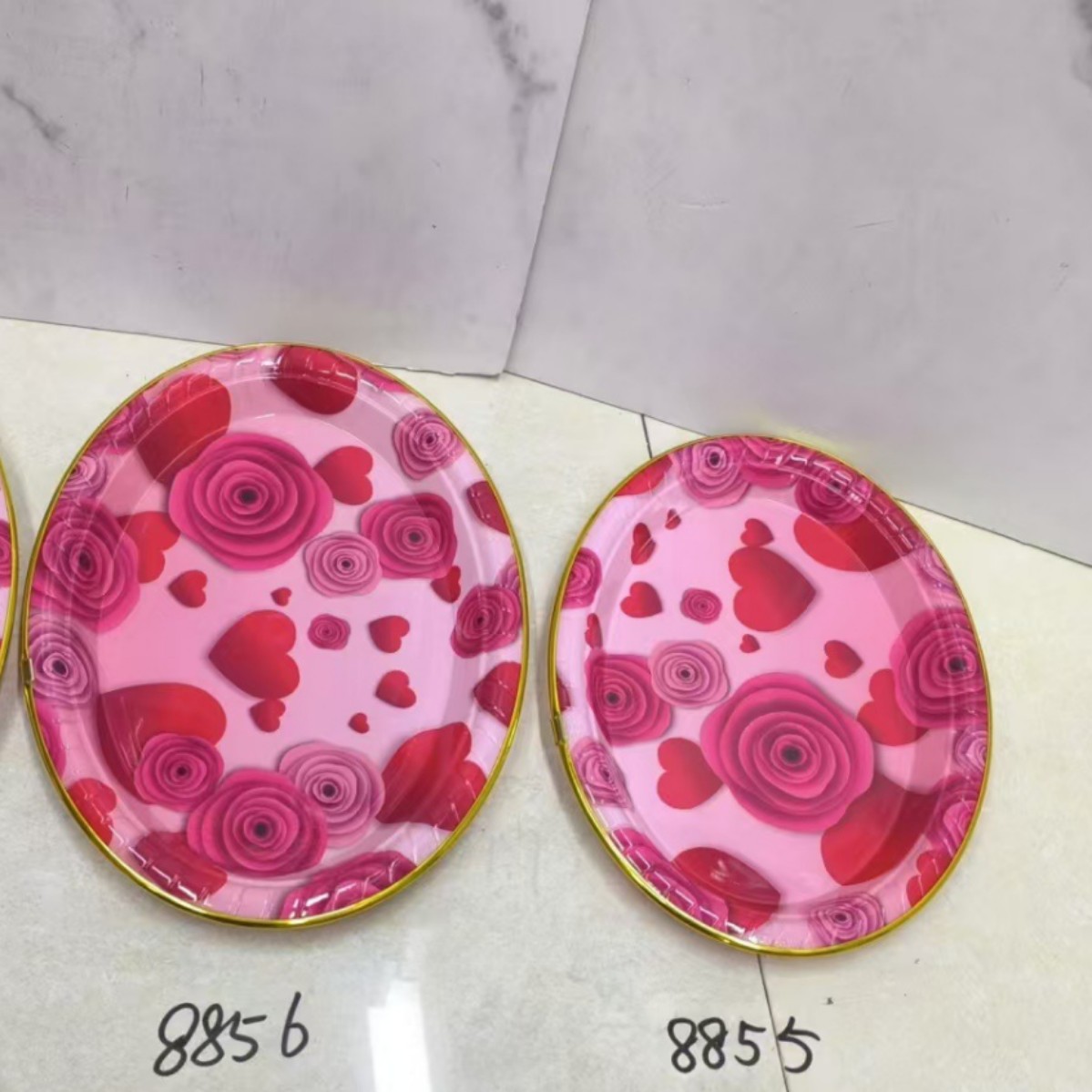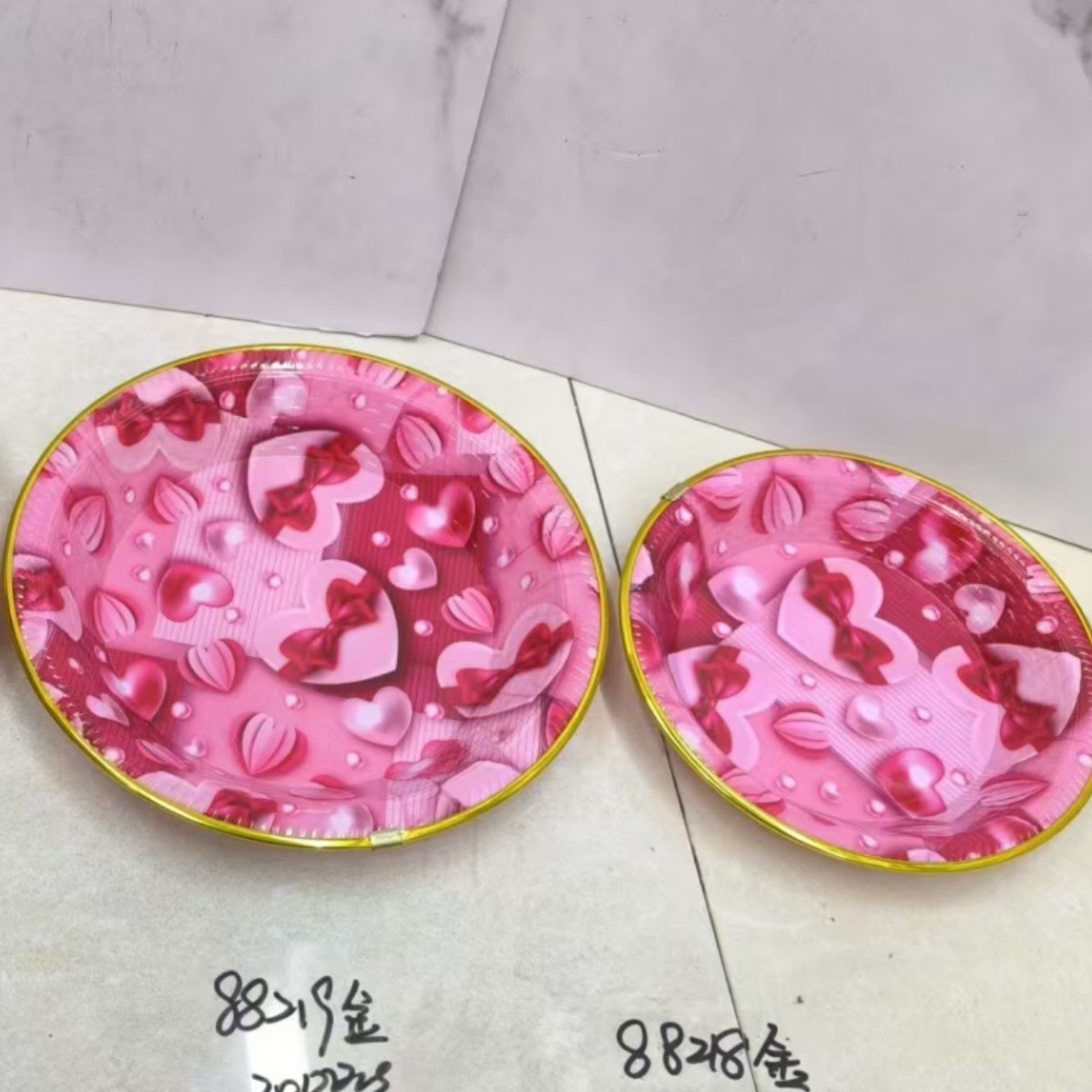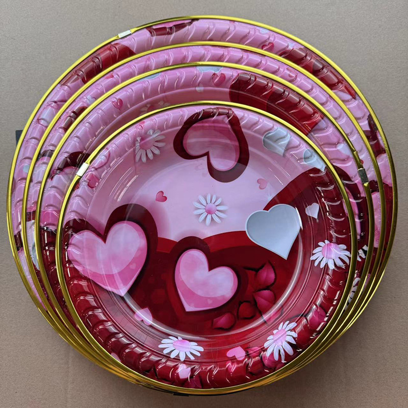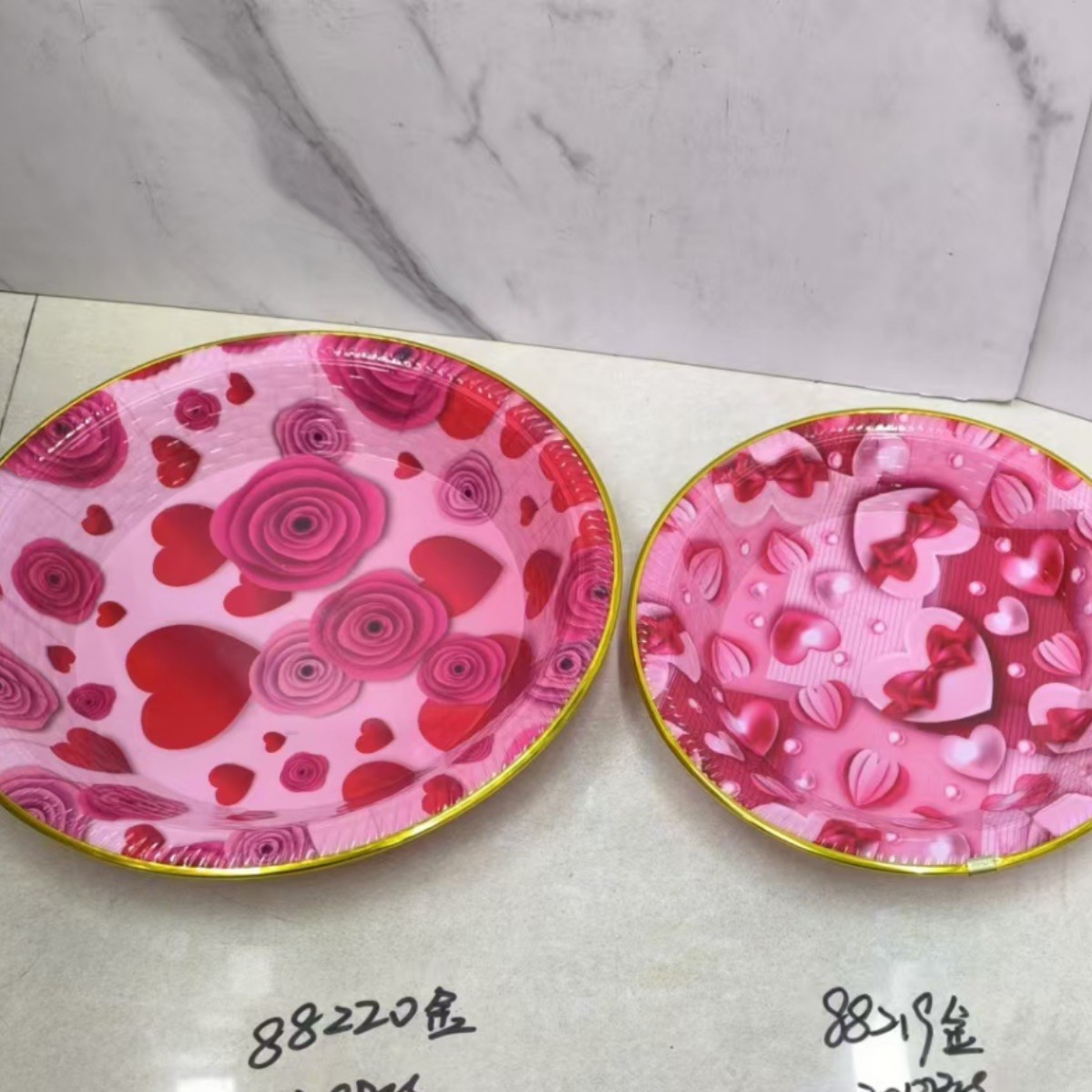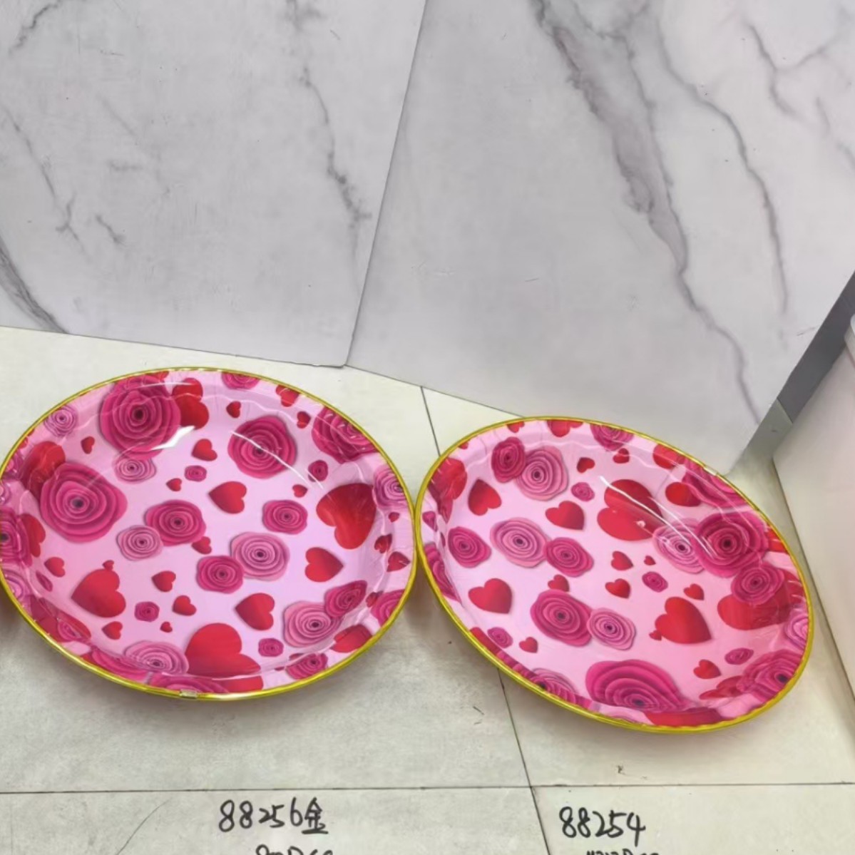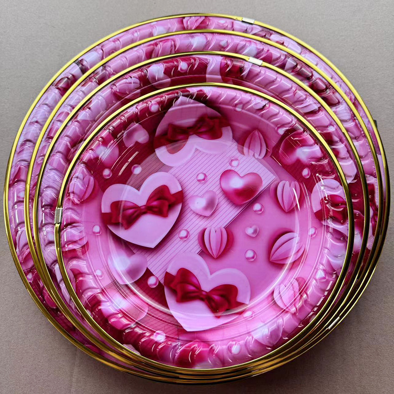 多款式情人节餐盘粉色花朵爱心礼物元素餐盘金边盘果盘圆盘