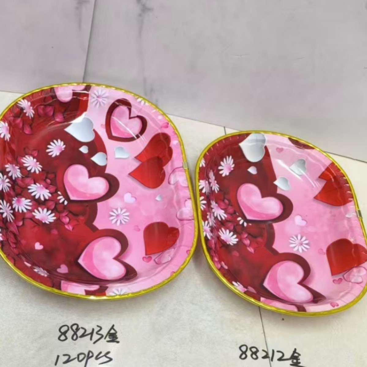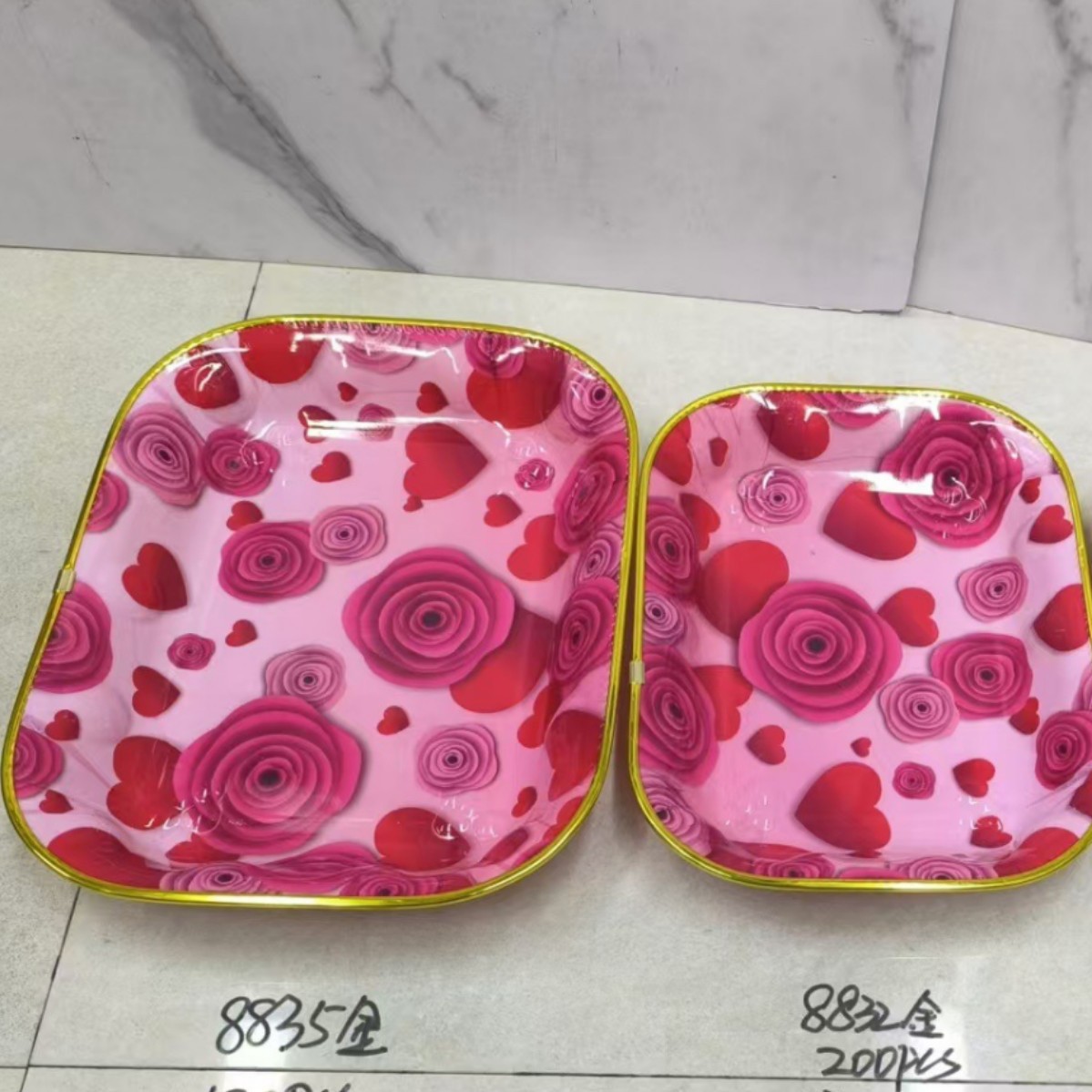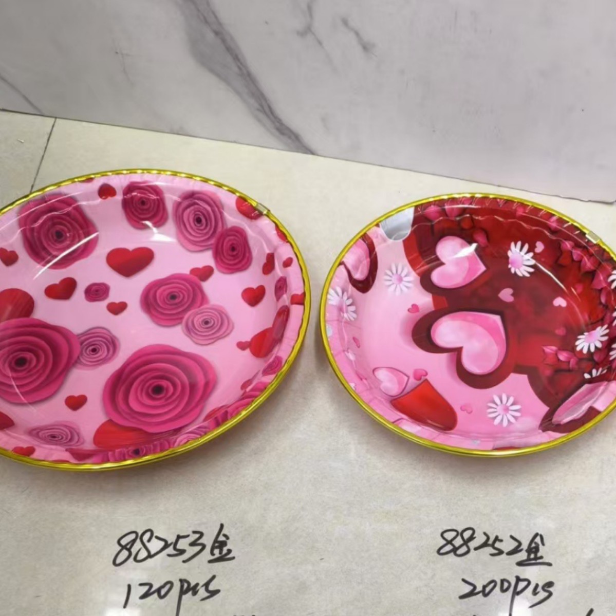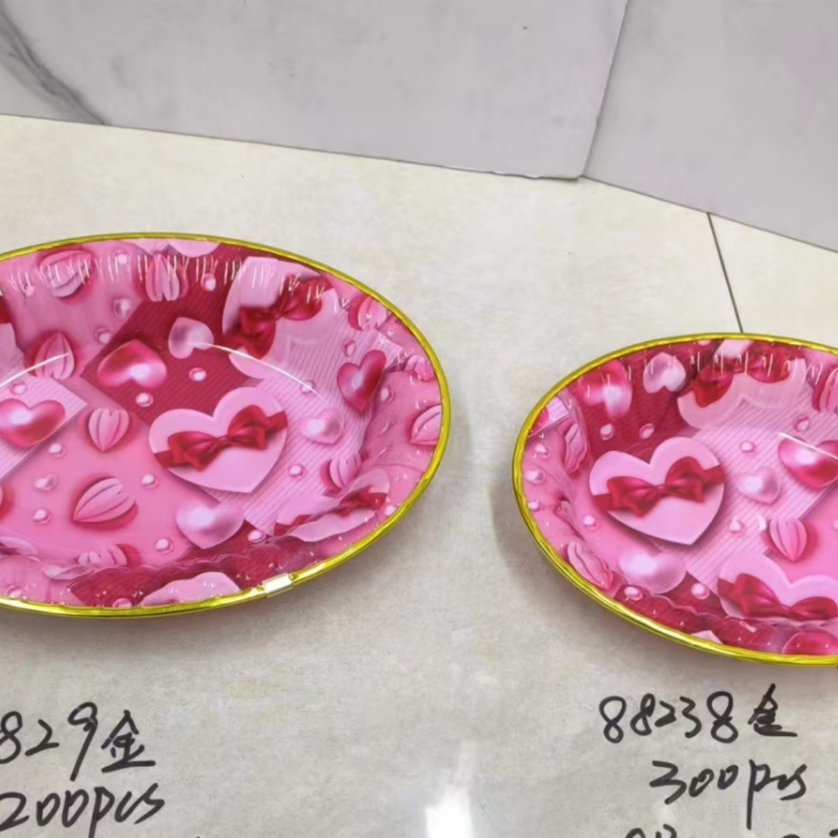 多款式情人节餐盘粉色花朵爱心礼物元素餐盘金边盘果盘圆盘