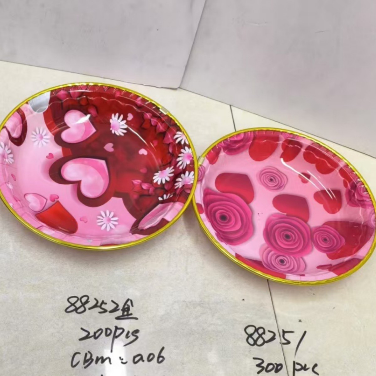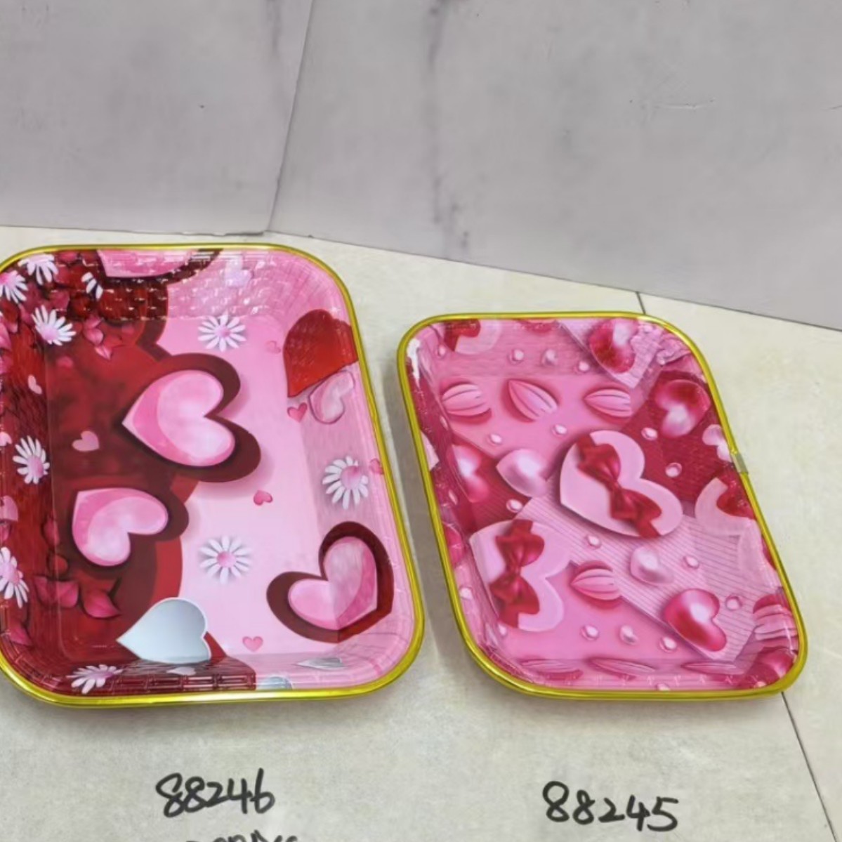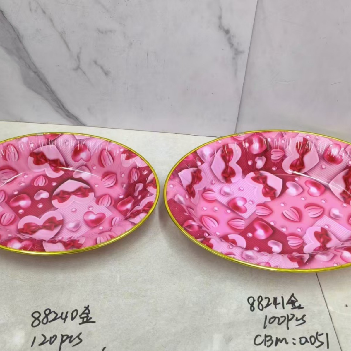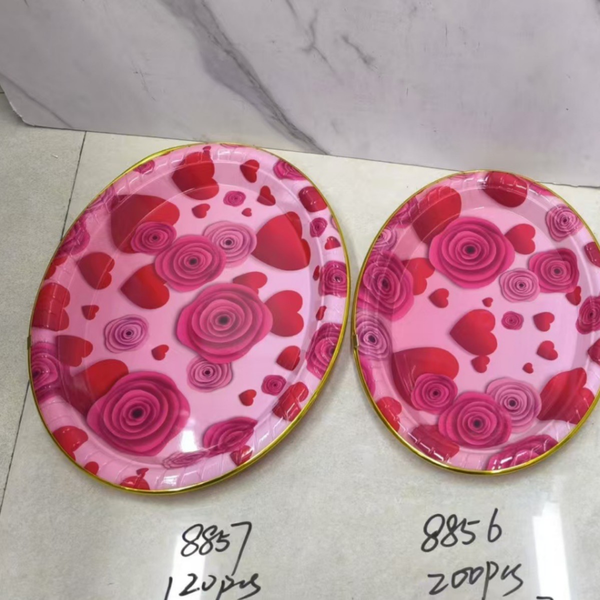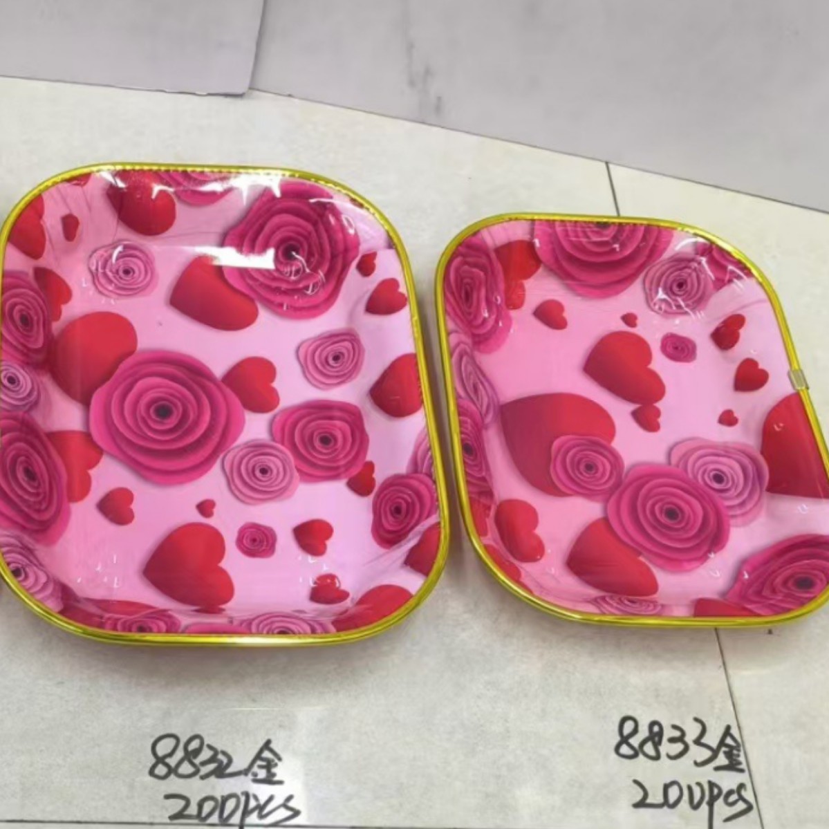多款式情人节餐盘粉色花朵爱心礼物元素餐盘金边盘果盘圆盘