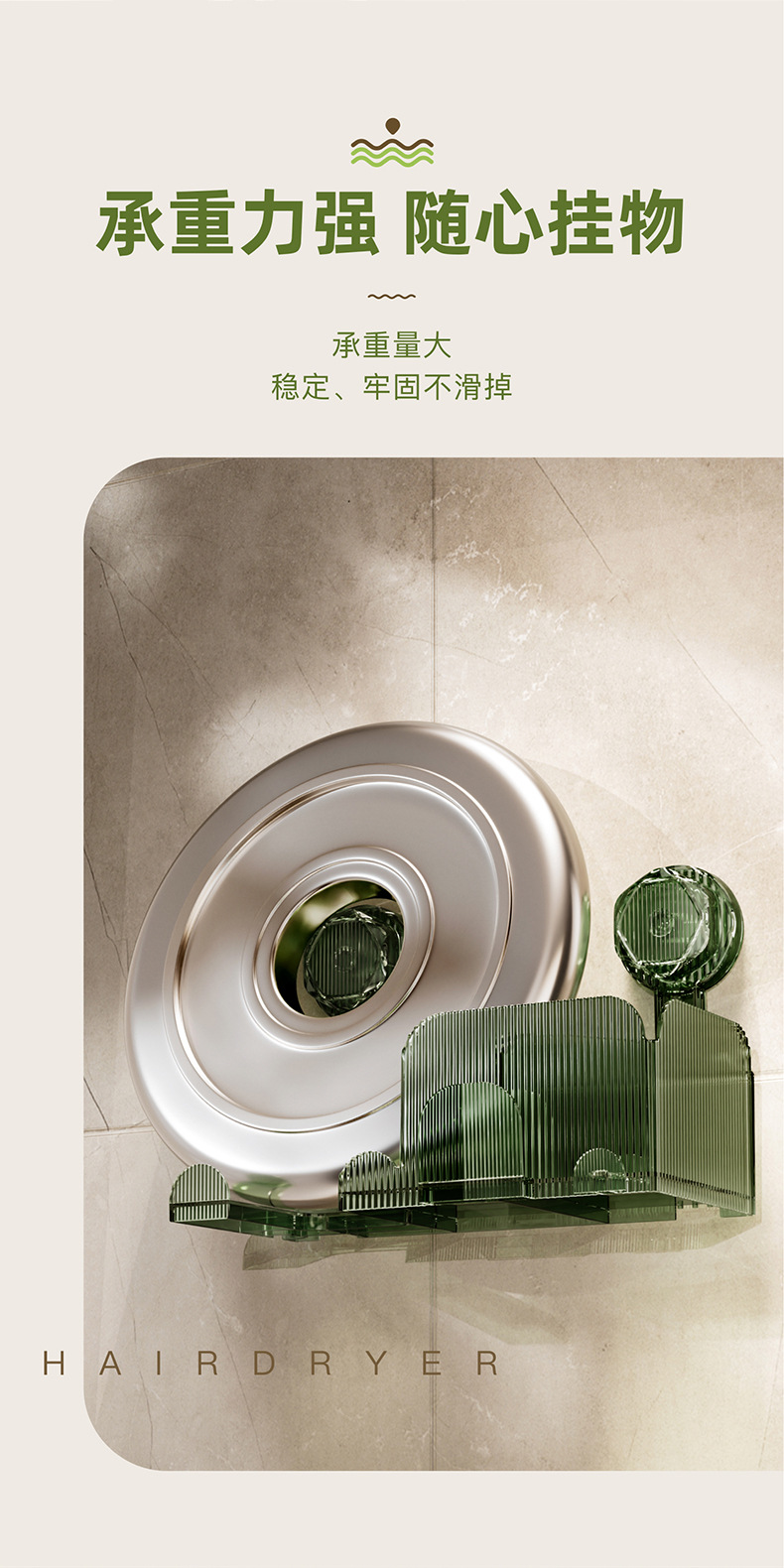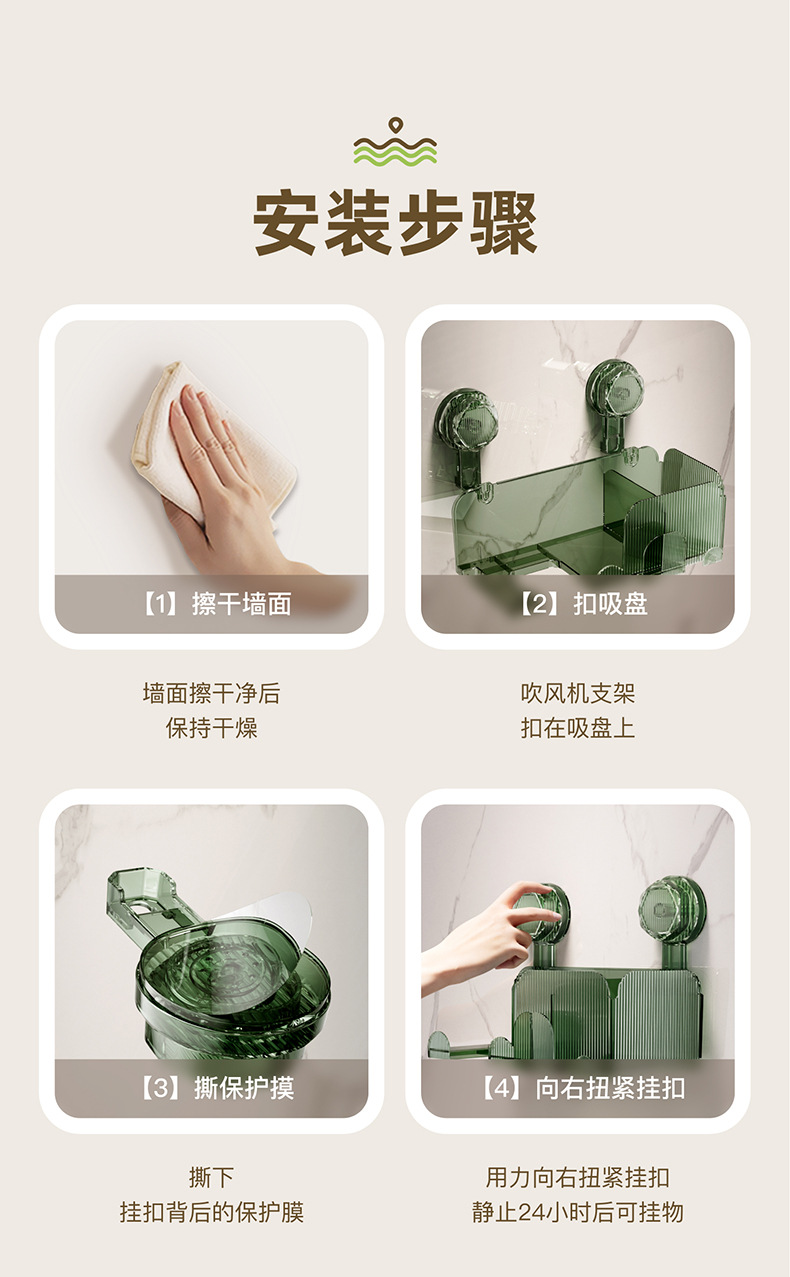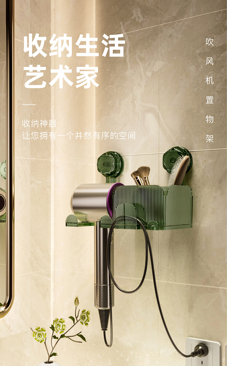 多色可选卫生间吹风机吸盘置物架壁挂式免打孔吹风筒架浴室多功能