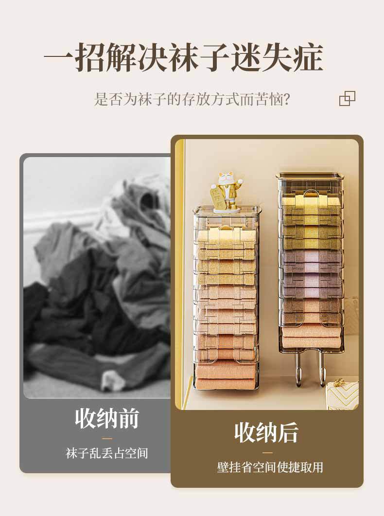 内裤收纳盒衣柜免打孔壁挂试抽取装袜子贴身衣物整理收纳盒置物架