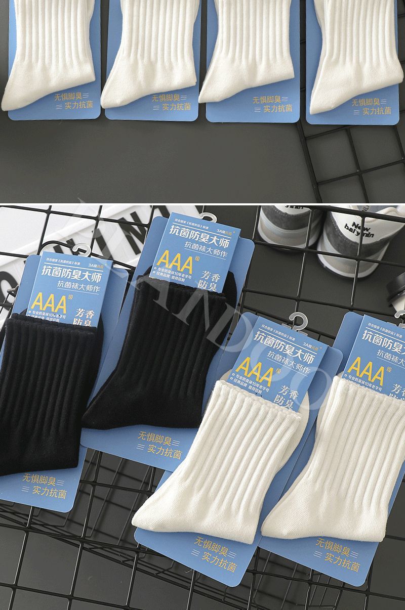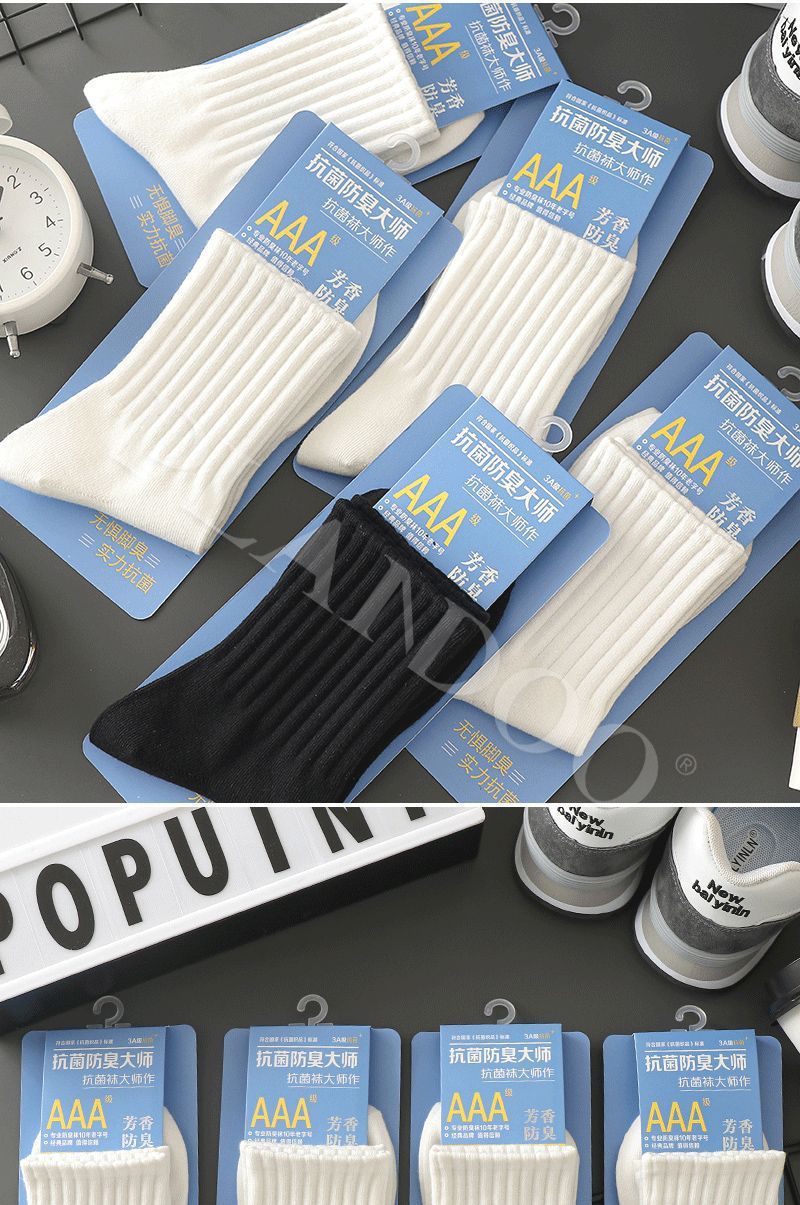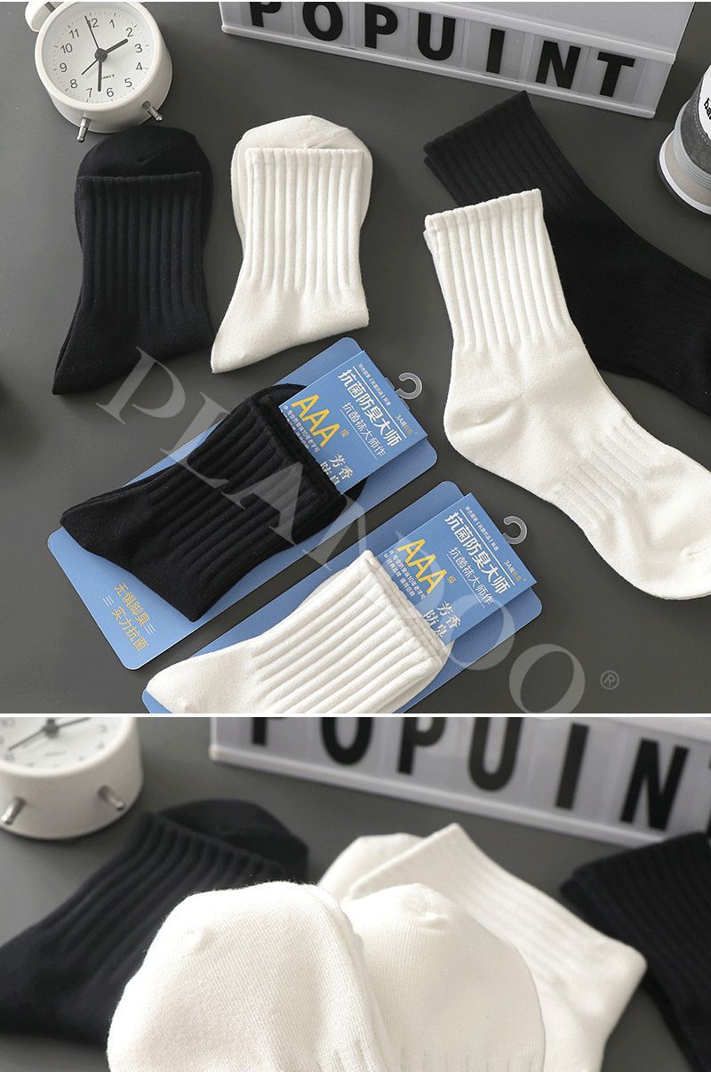 袜子男款中筒秋冬款纯色芳香防臭高筒黑白色运动短袜
