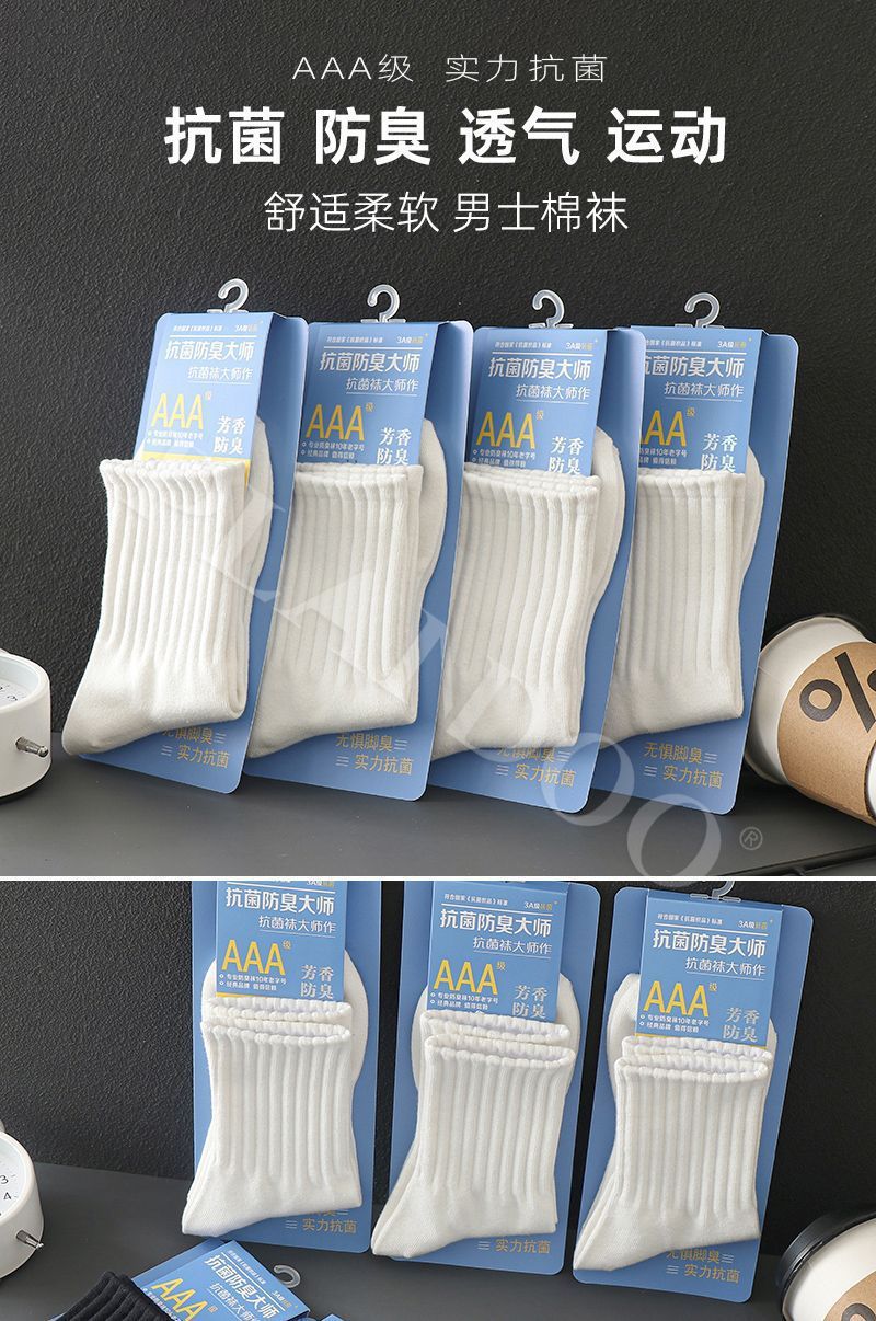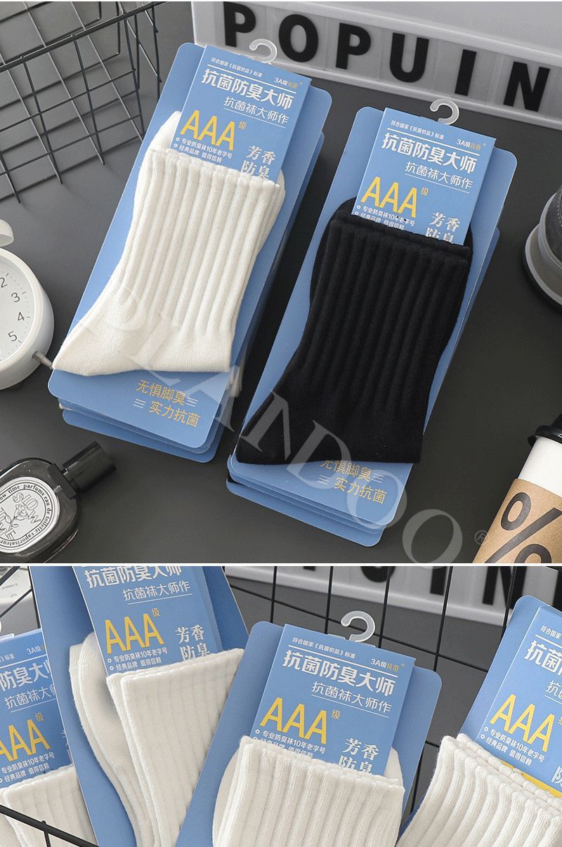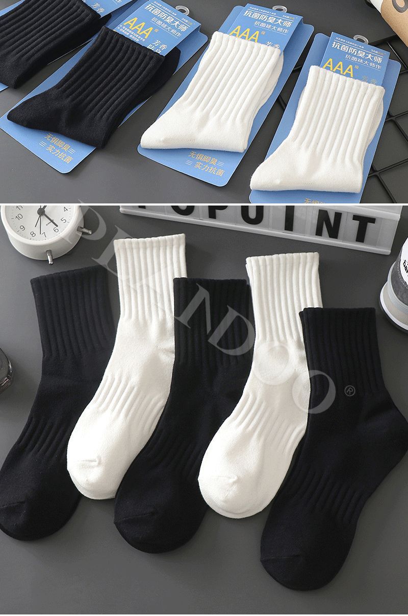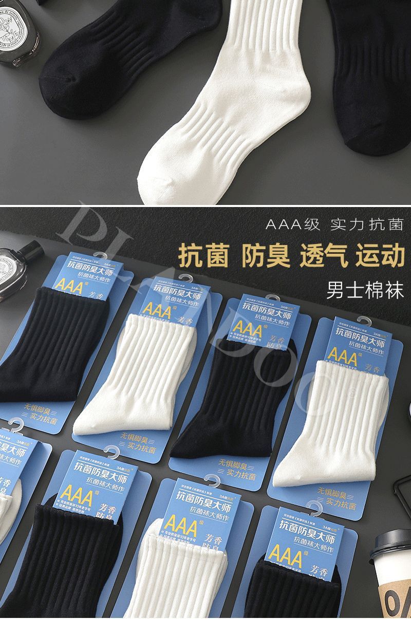袜子男款中筒秋冬款纯色芳香防臭高筒黑白色运动短袜