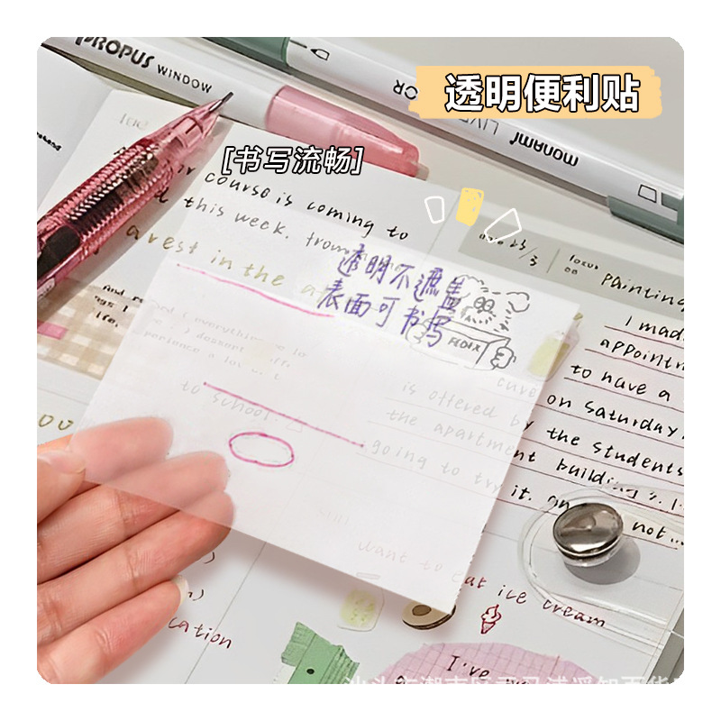 现货透明便利贴透视贴可撕粘性强pet创意N次贴便签纸学习用品批发