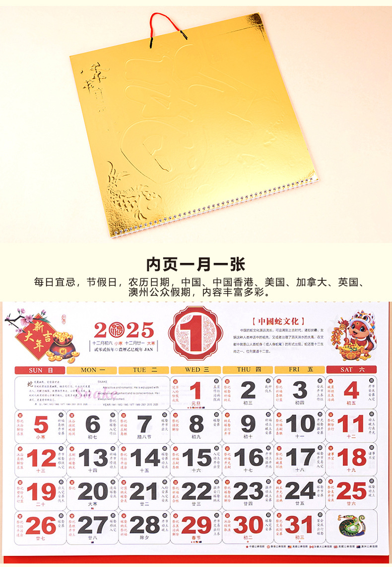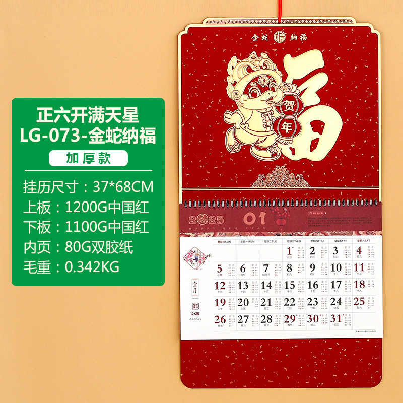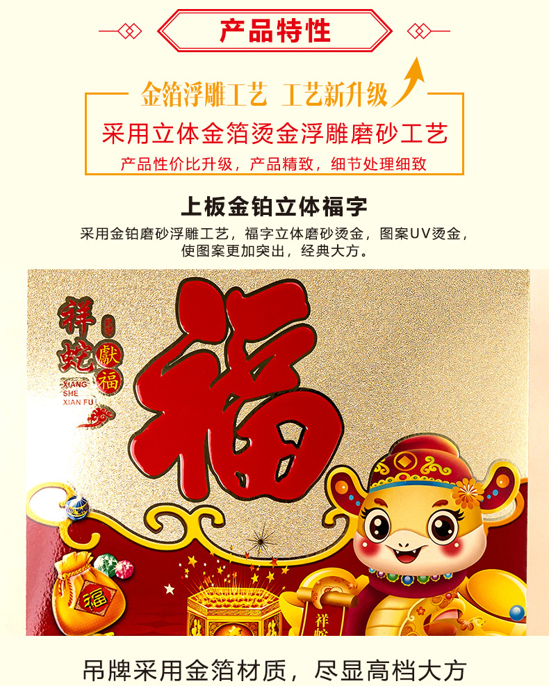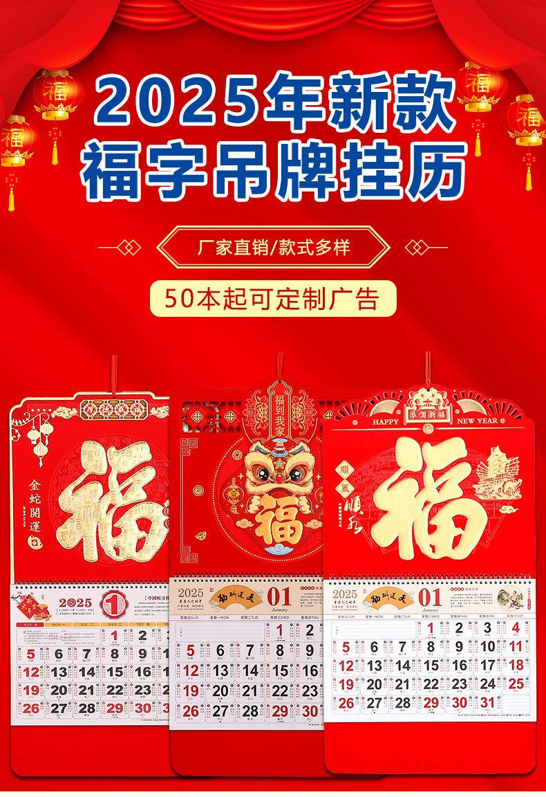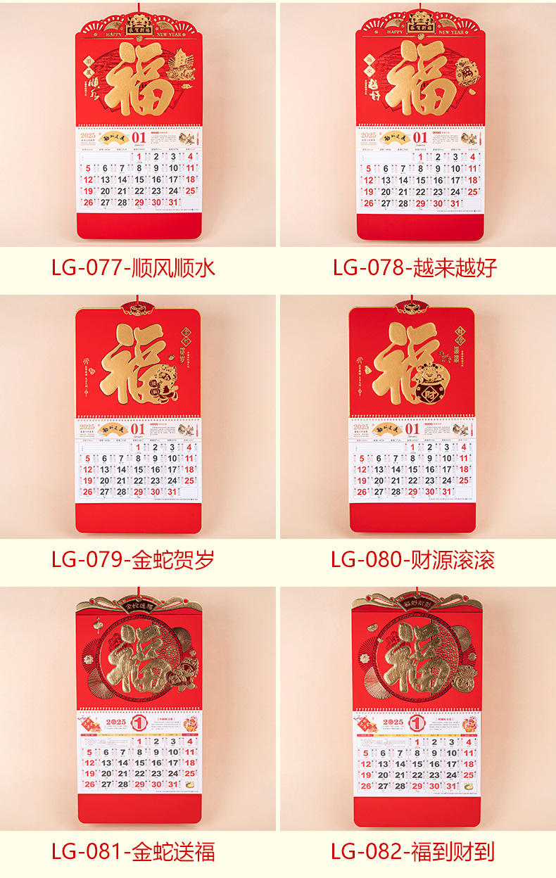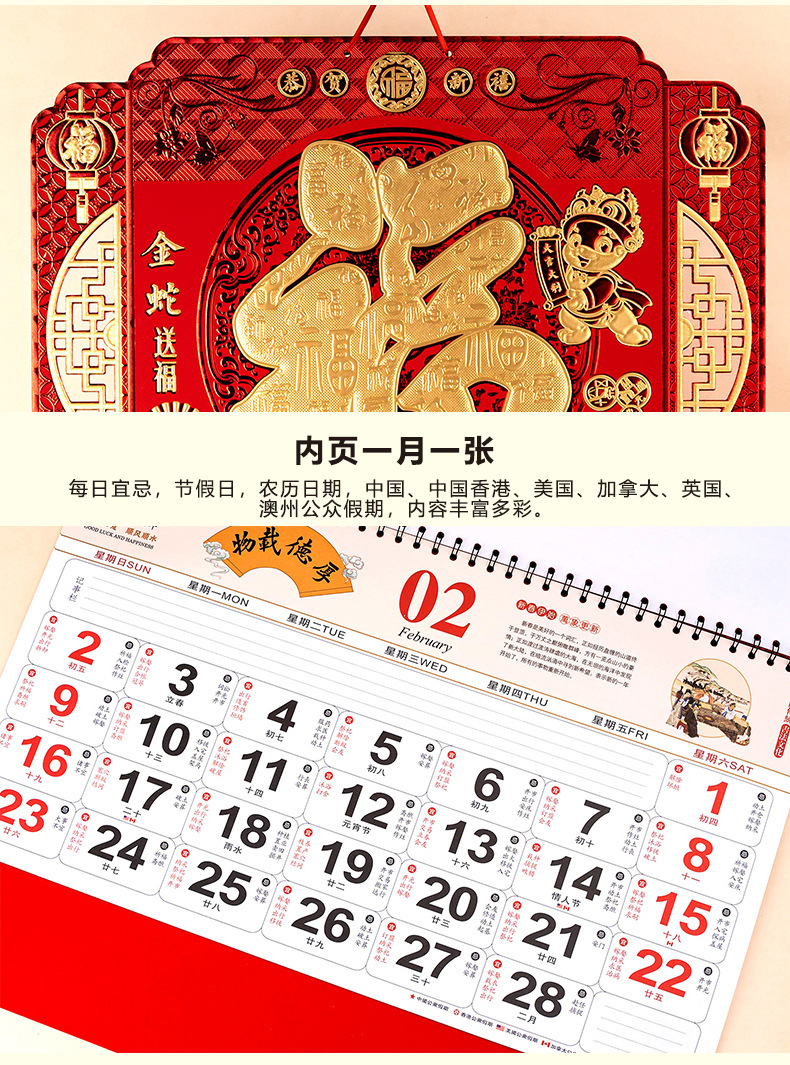 蛇年挂历定制蛇年中国风手撕金箔福字吊牌广告日历月历定做来图