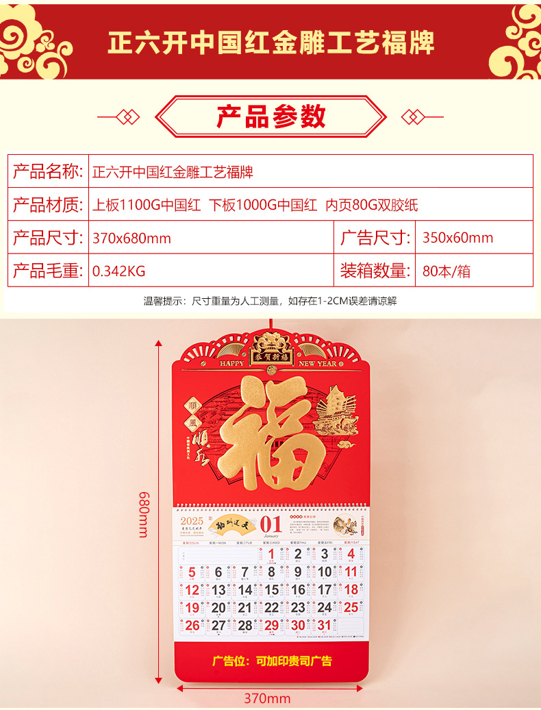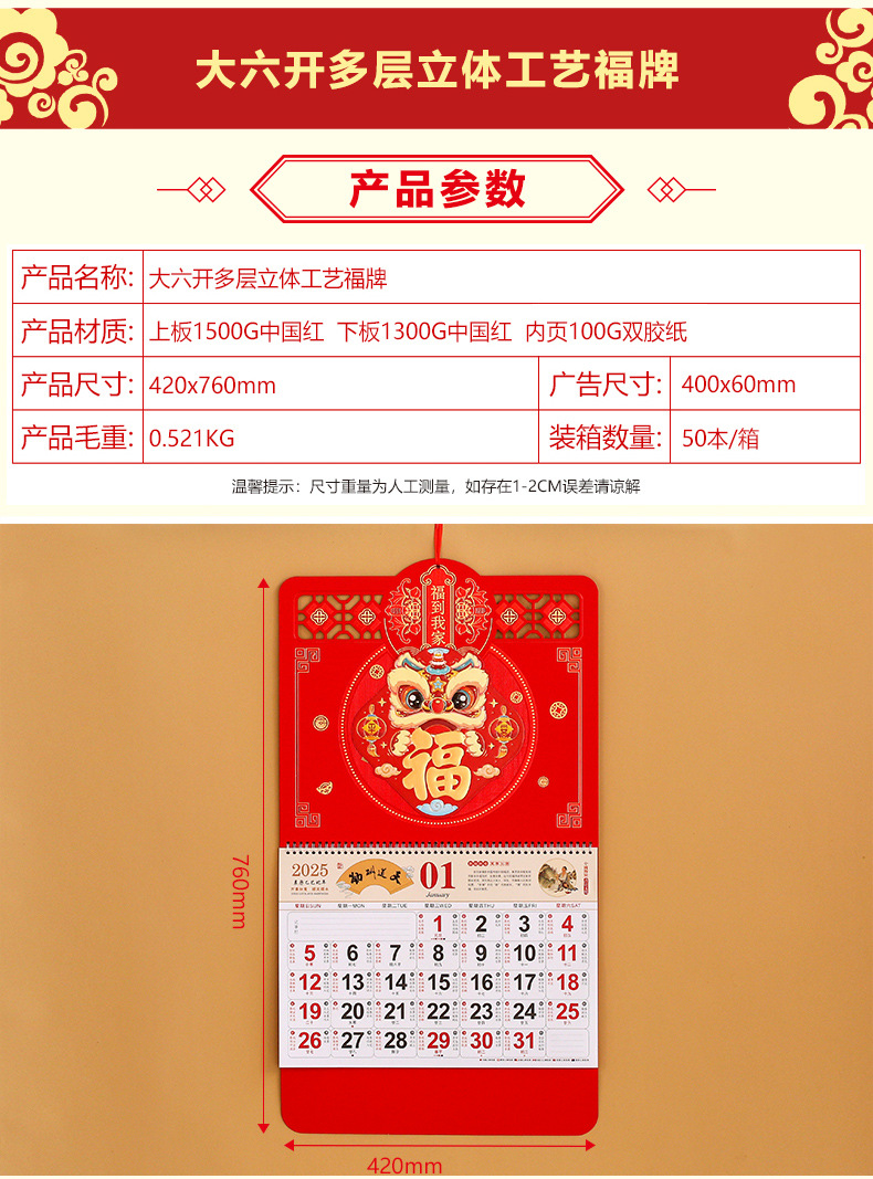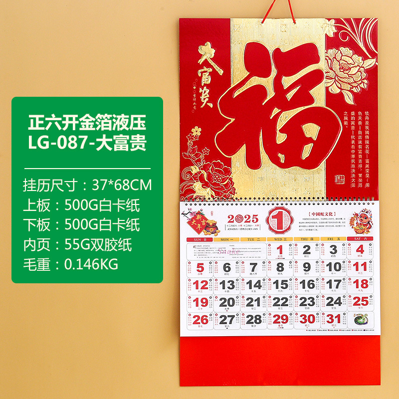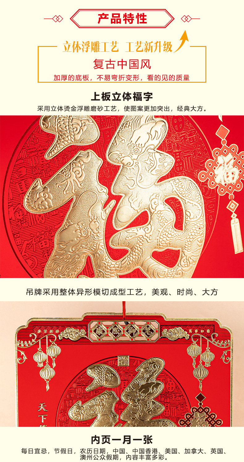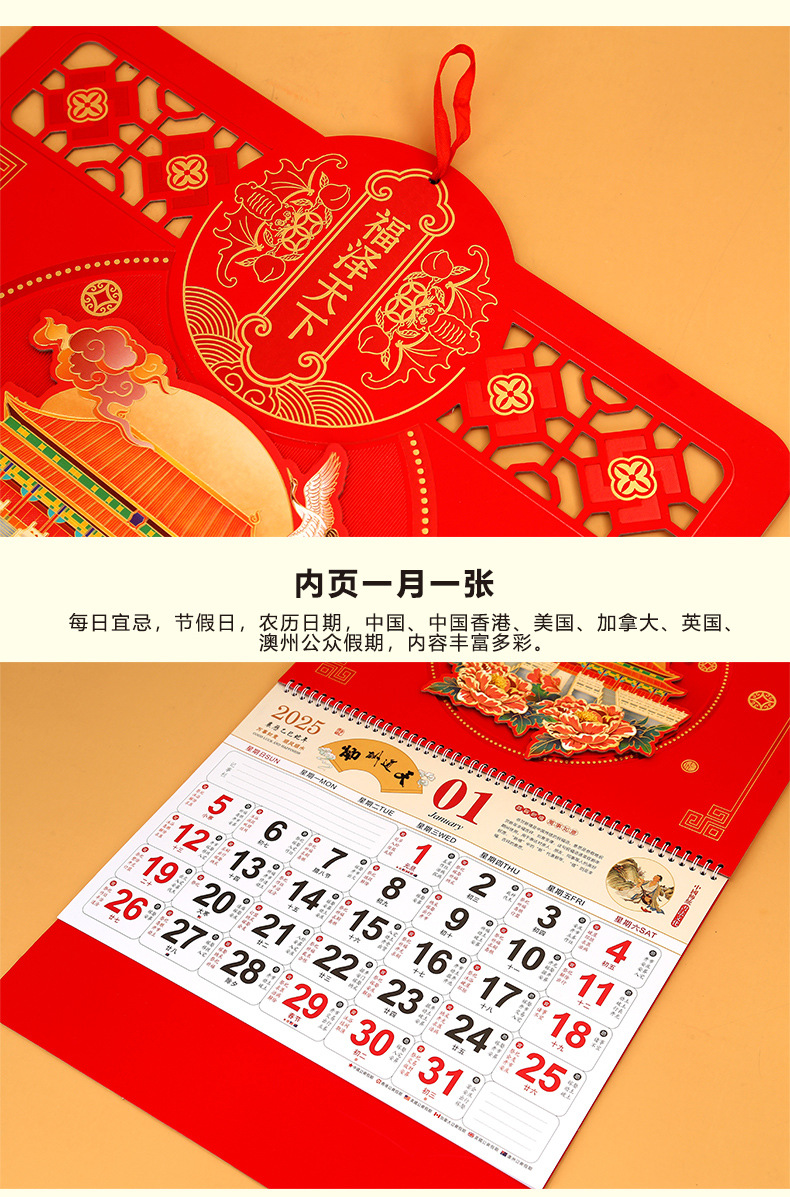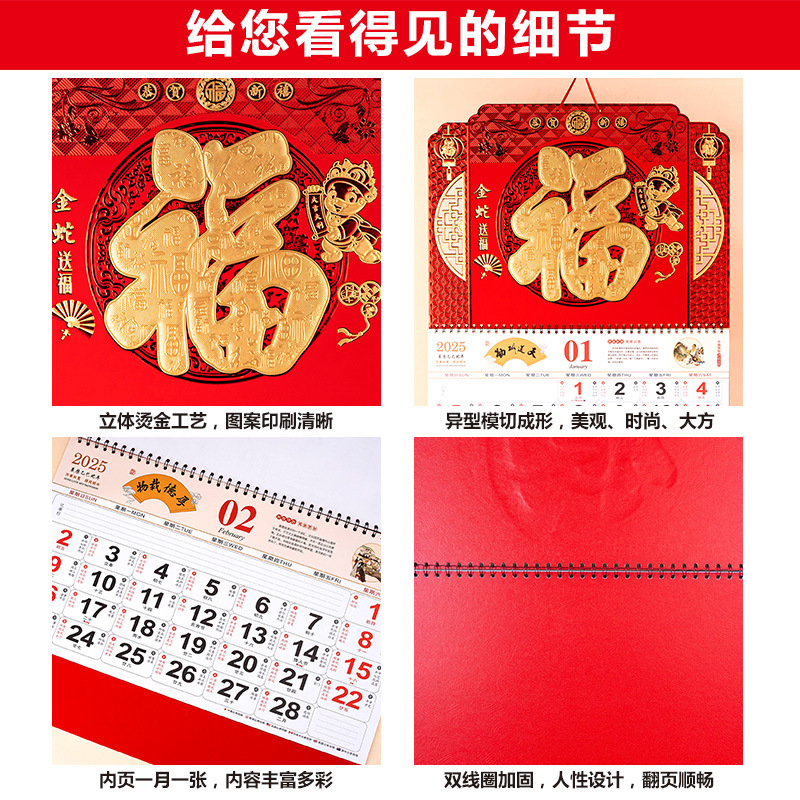 蛇年挂历定制蛇年中国风手撕金箔福字吊牌广告日历月历定做来图