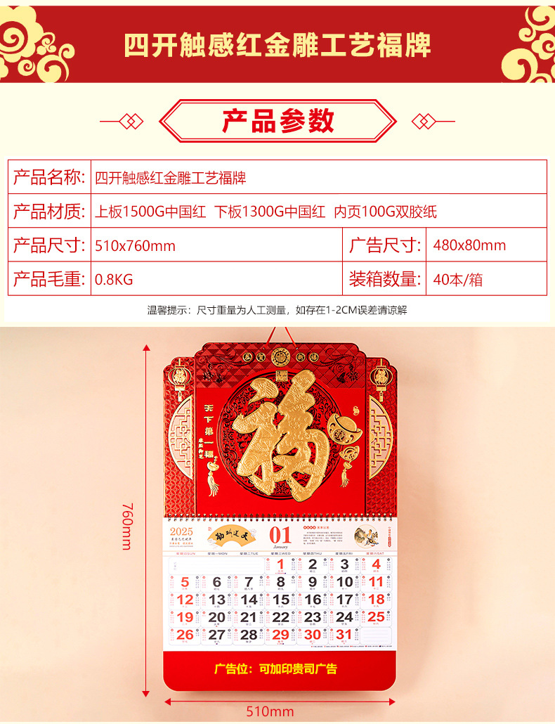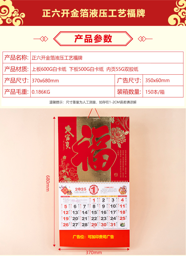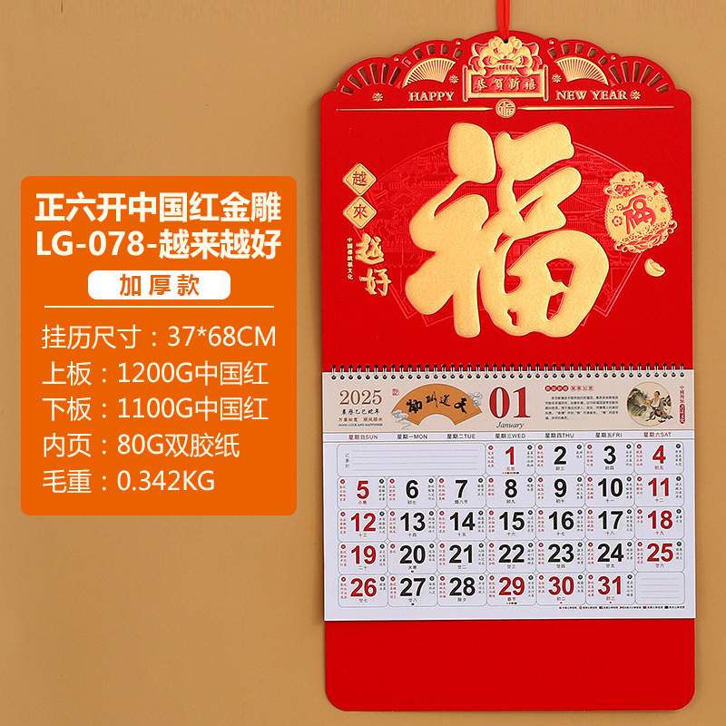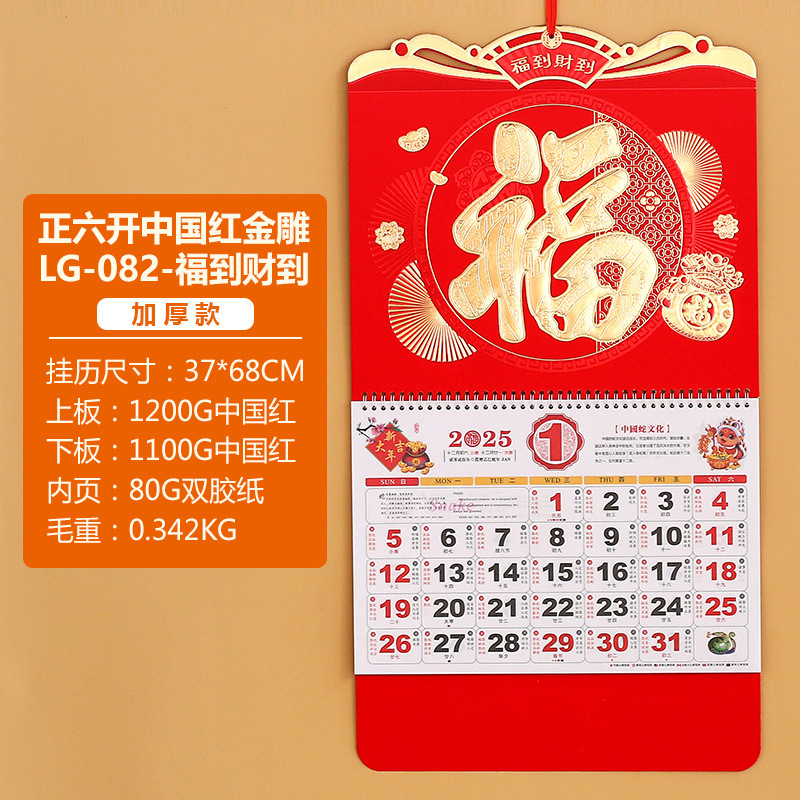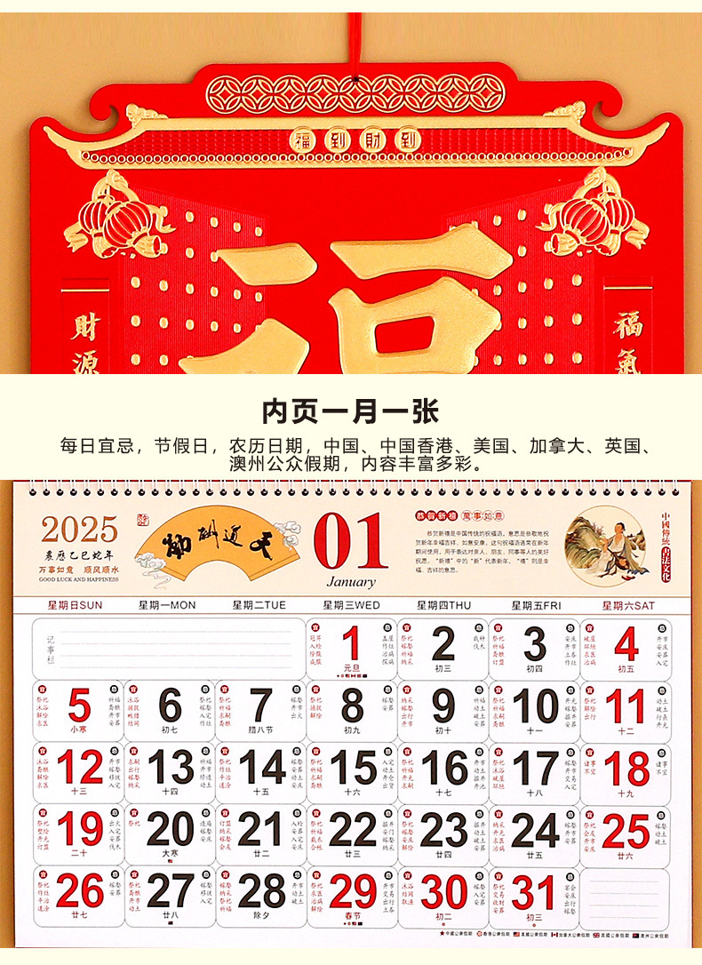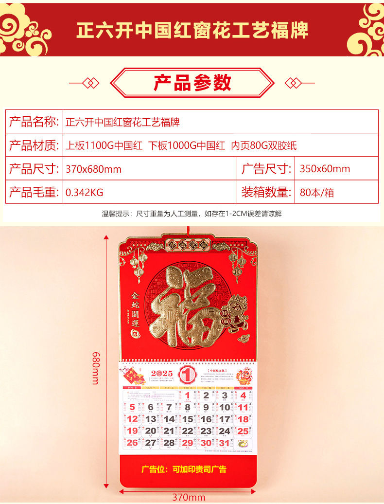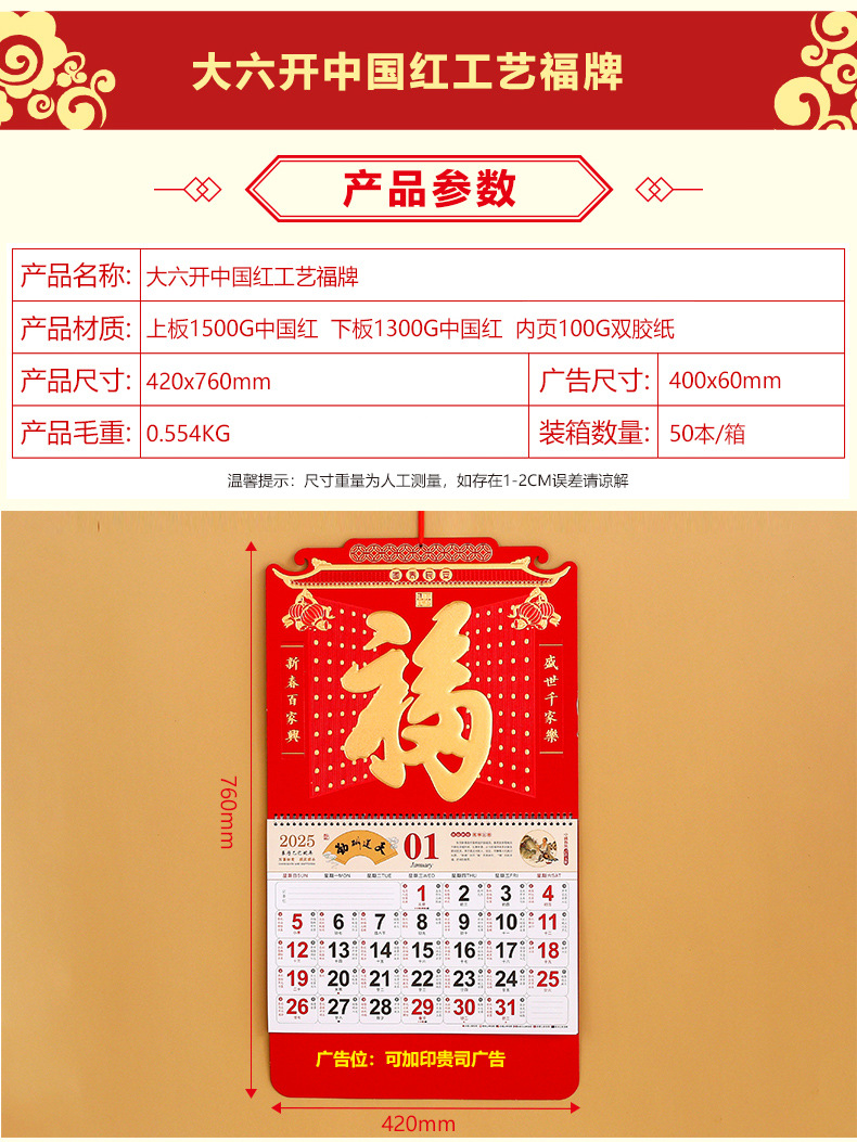 蛇年挂历定制蛇年中国风手撕金箔福字吊牌广告日历月历定做来图