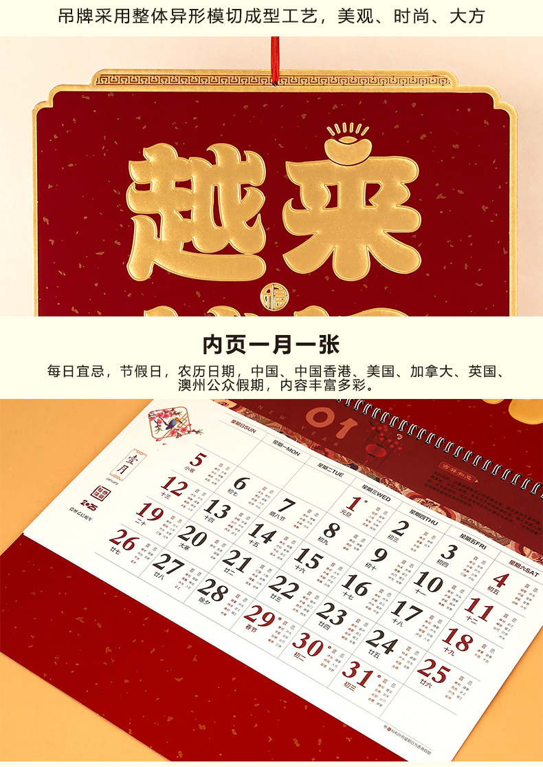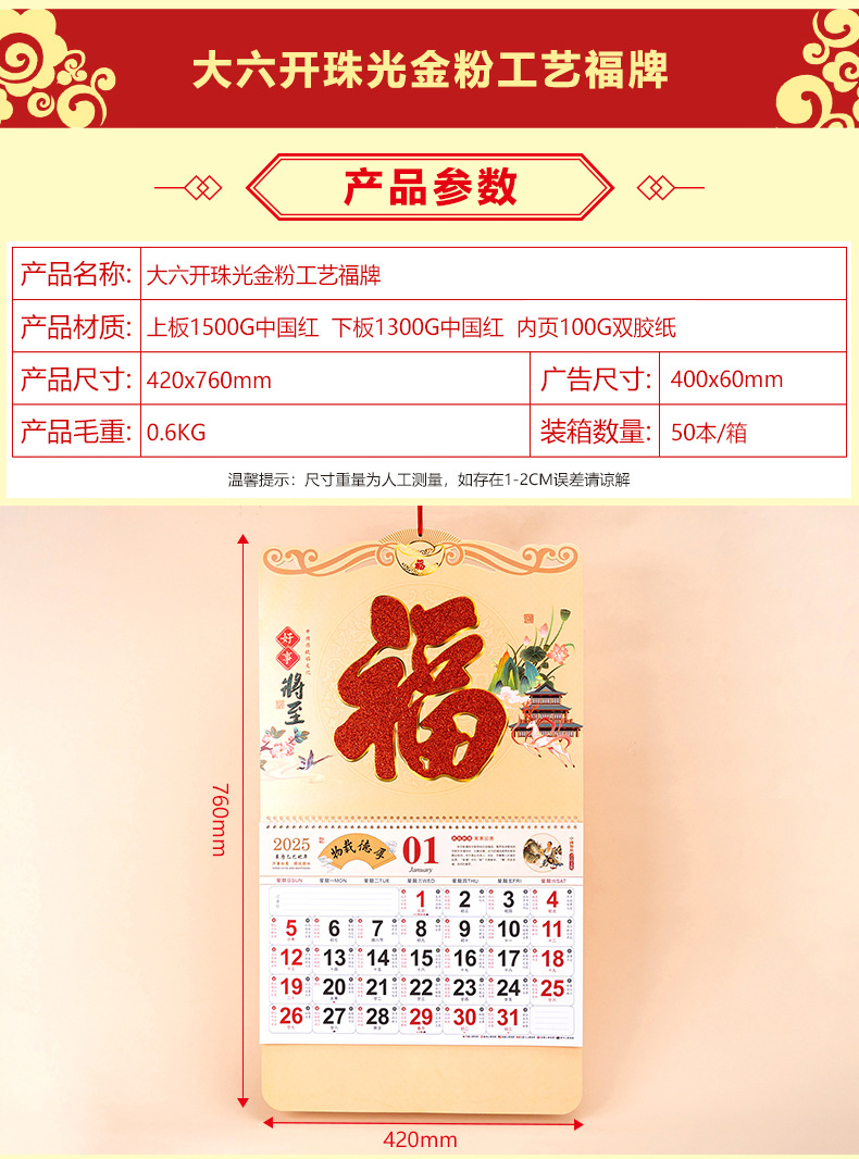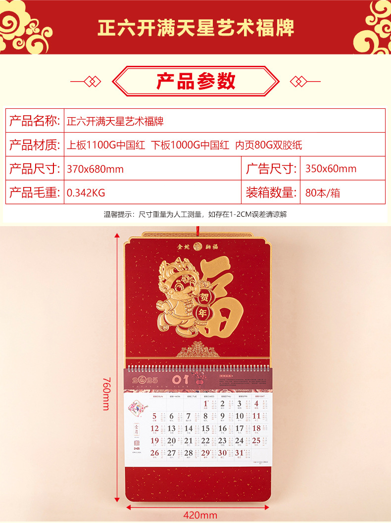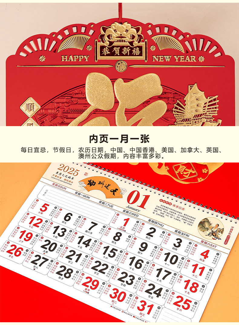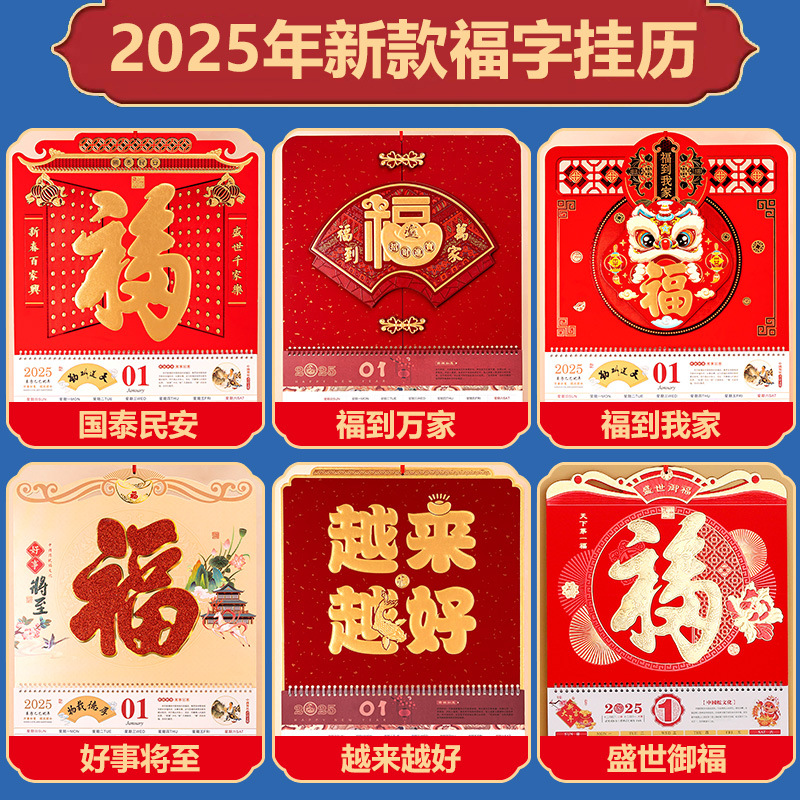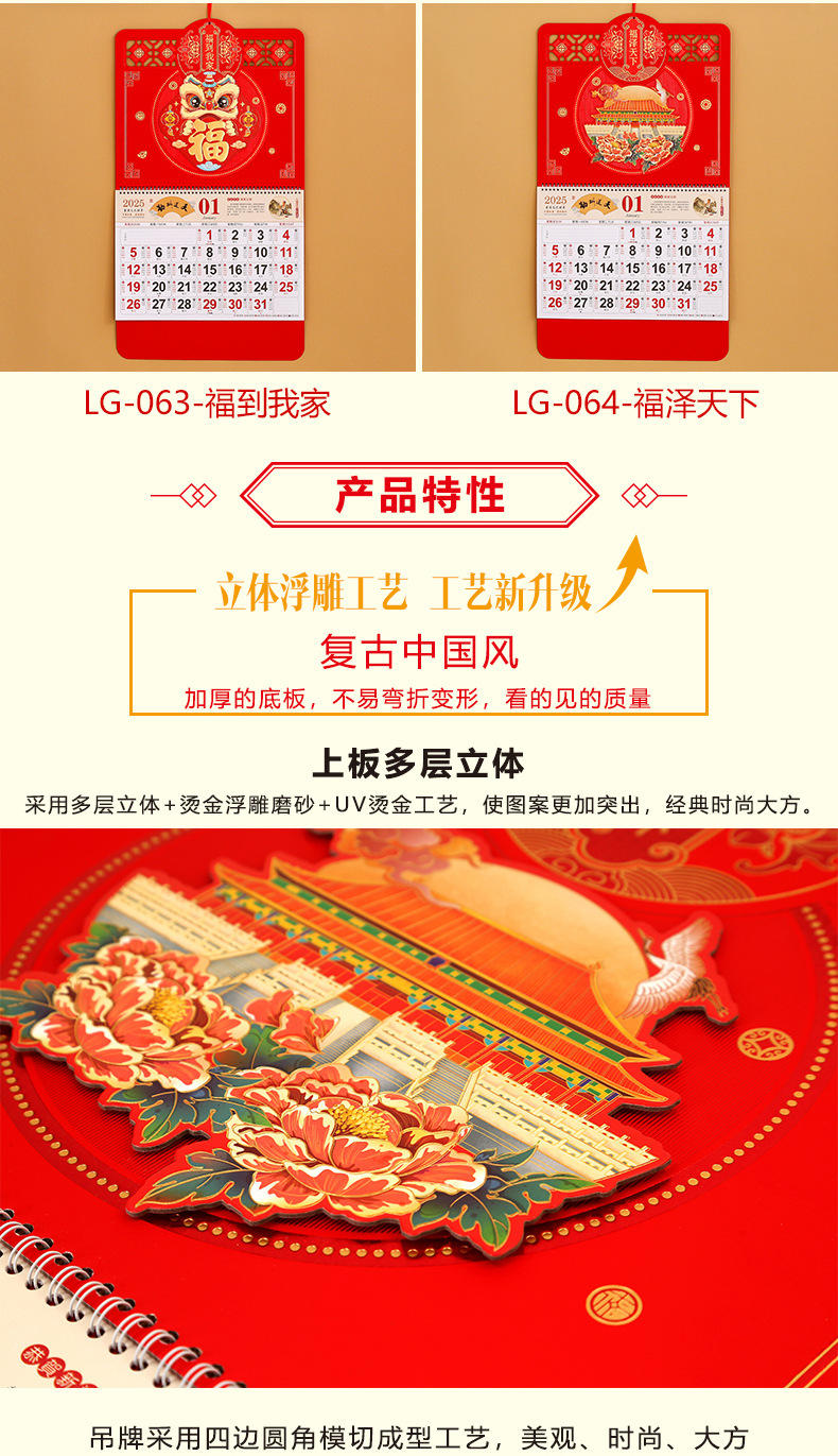蛇年挂历定制蛇年中国风手撕金箔福字吊牌广告日历月历定做来图
