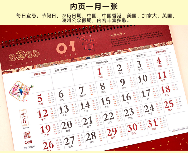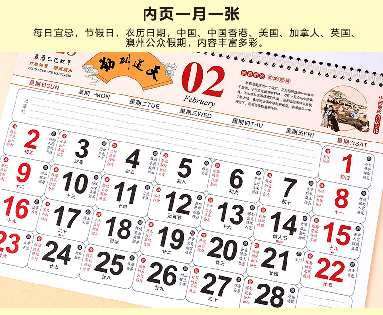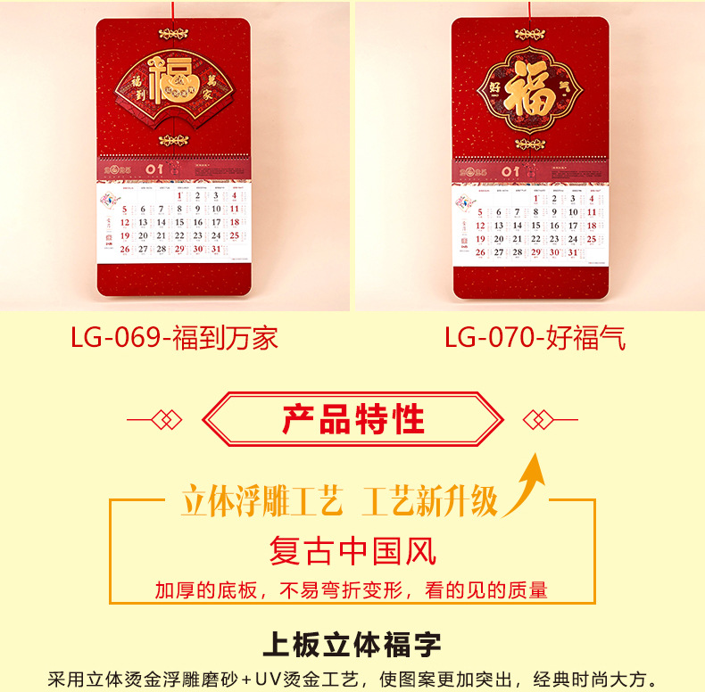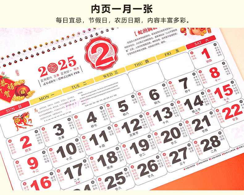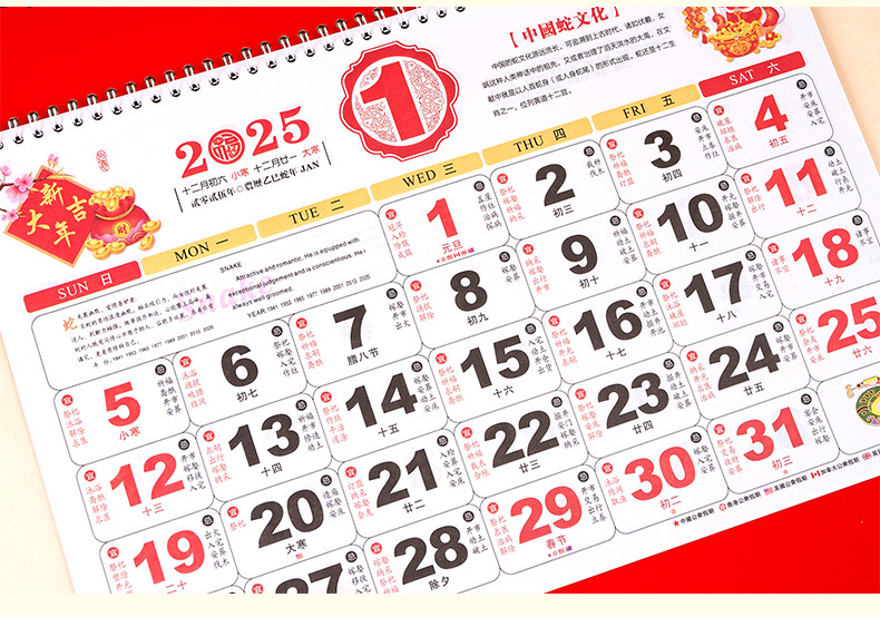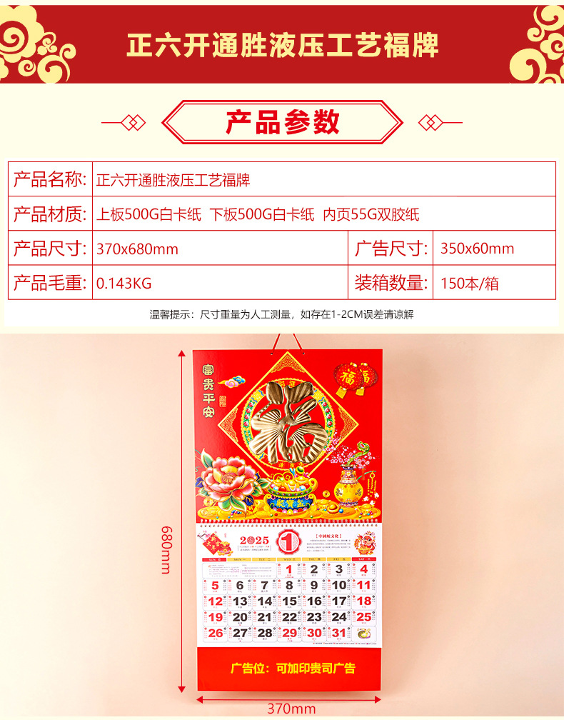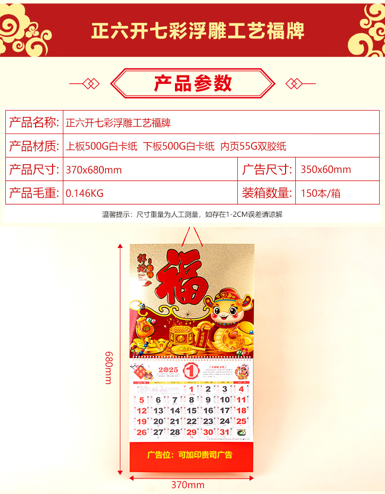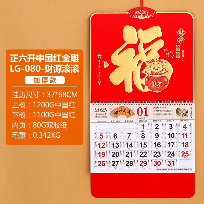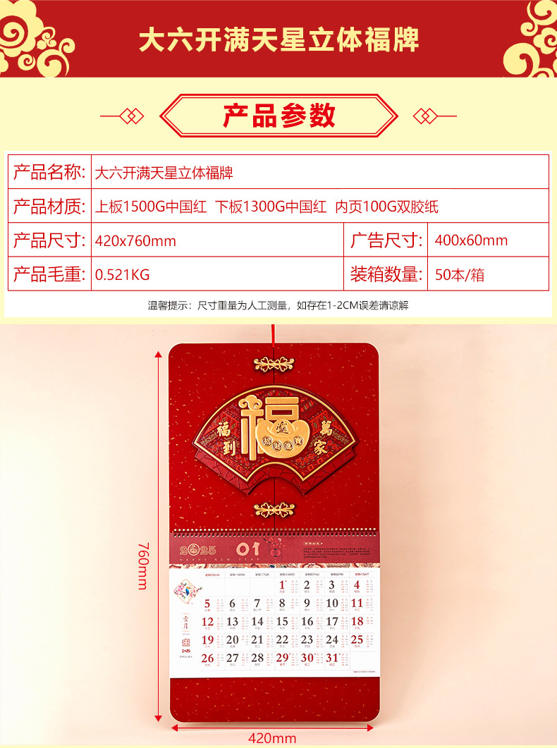 蛇年挂历定制蛇年中国风手撕金箔福字吊牌广告日历月历定做来图