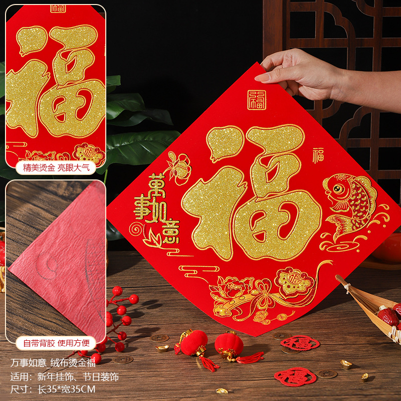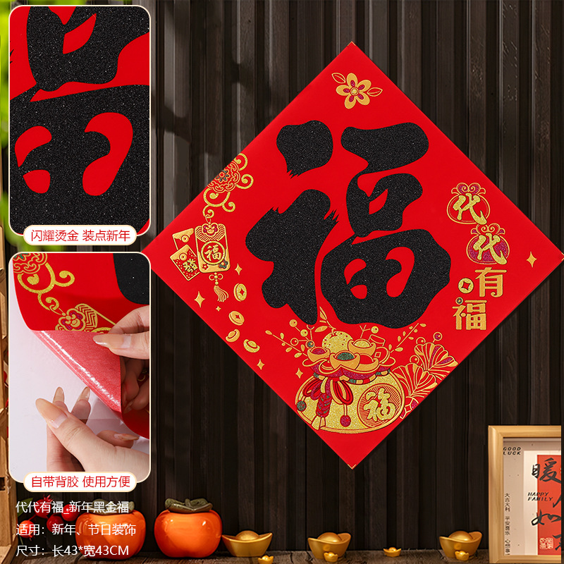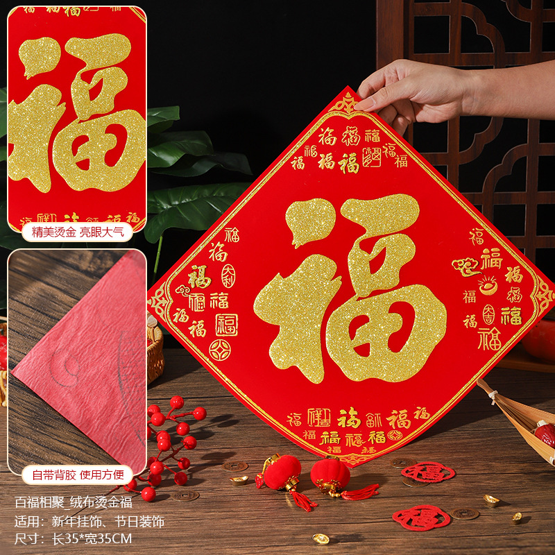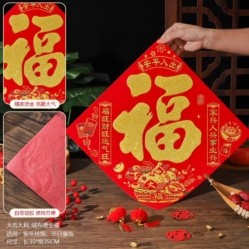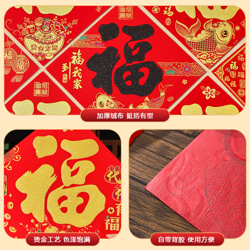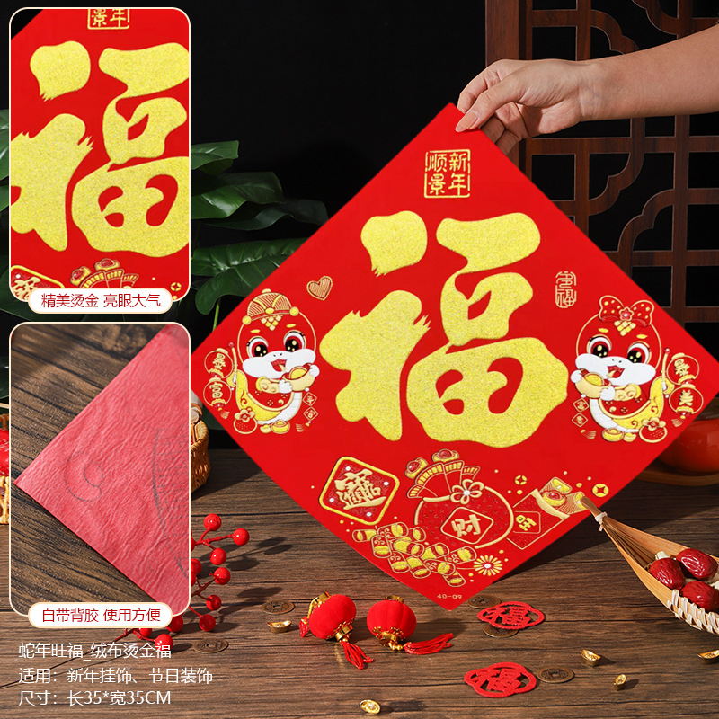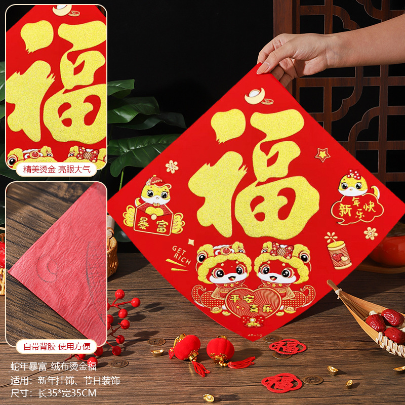 2025年过年新款福字门贴装饰烫金新年春节蛇年绒布贴纸大门装饰品