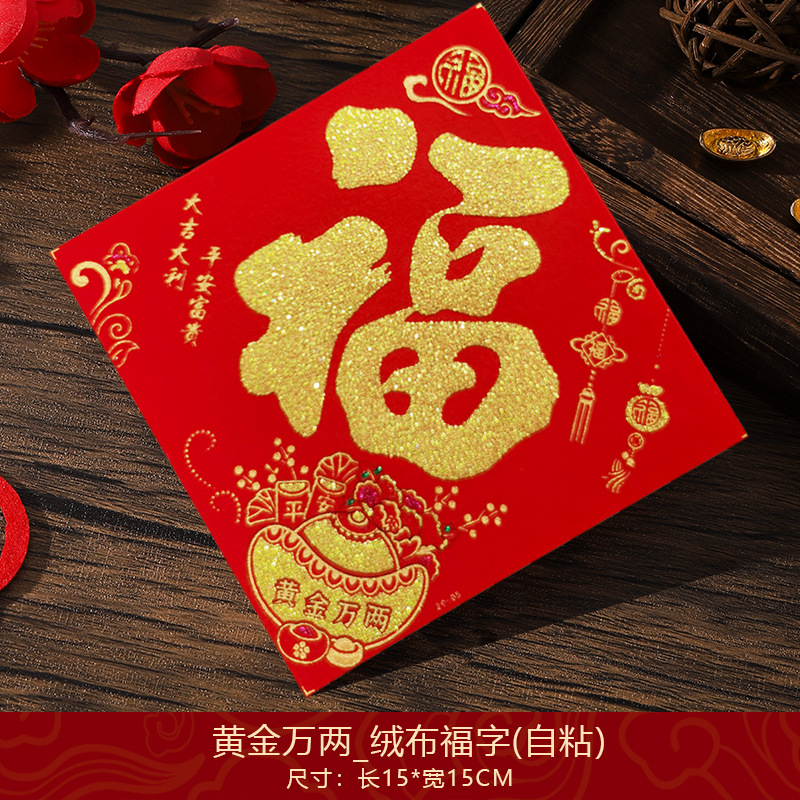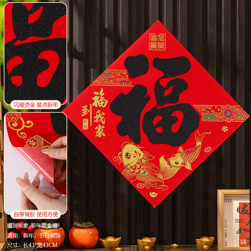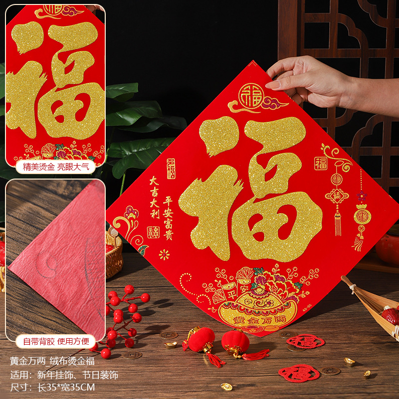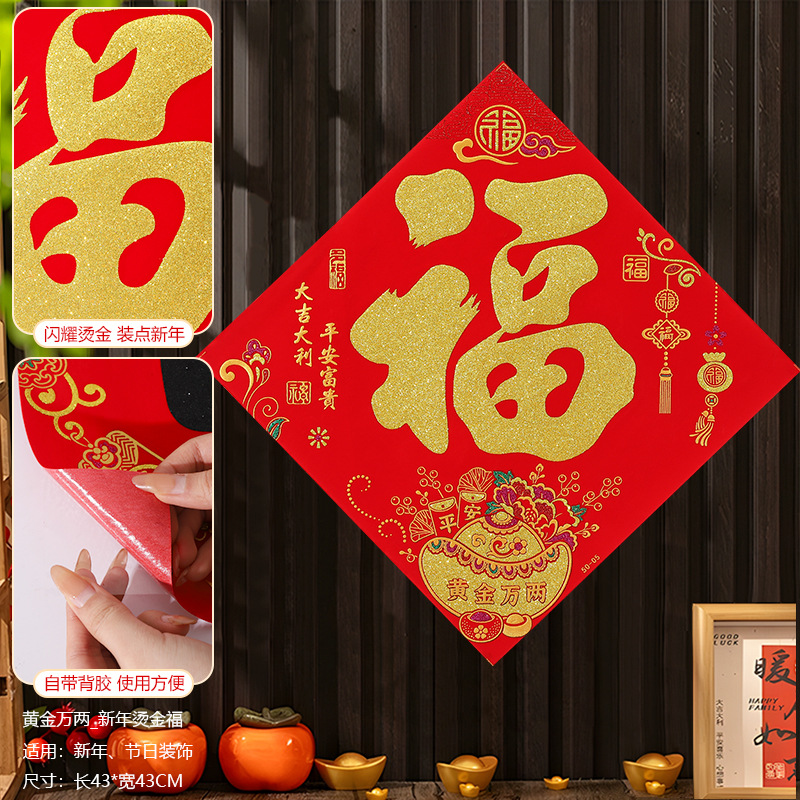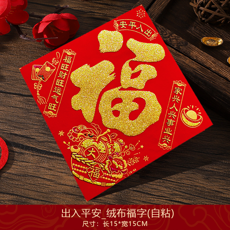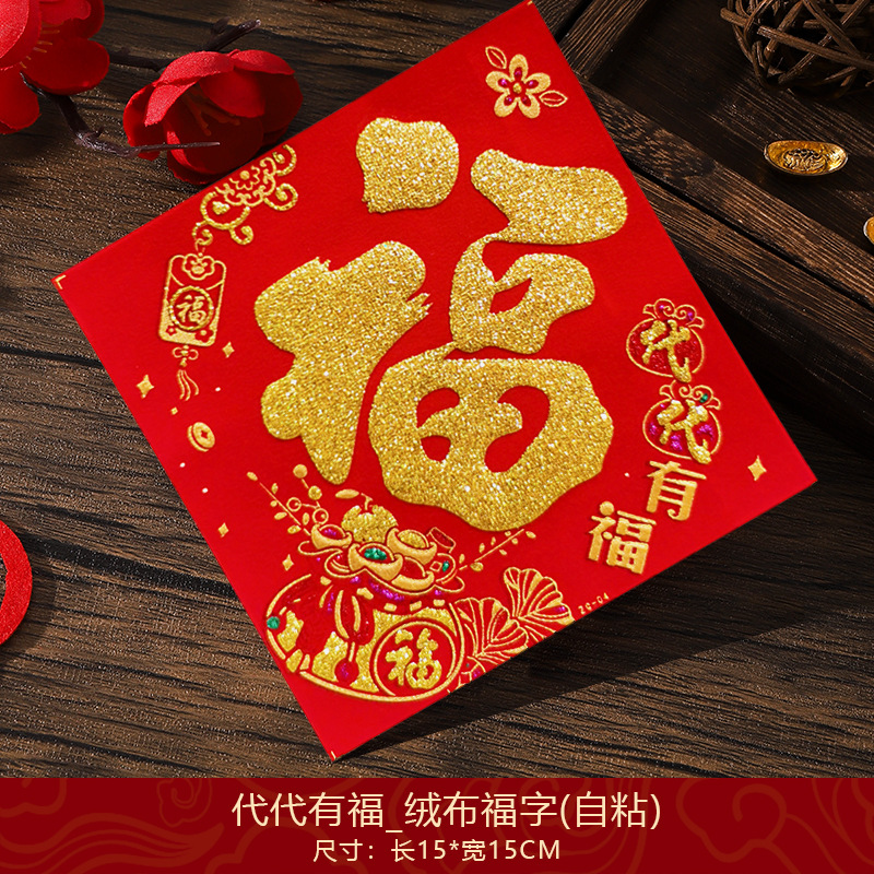 2025年过年新款福字门贴装饰烫金新年春节蛇年绒布贴纸大门装饰品