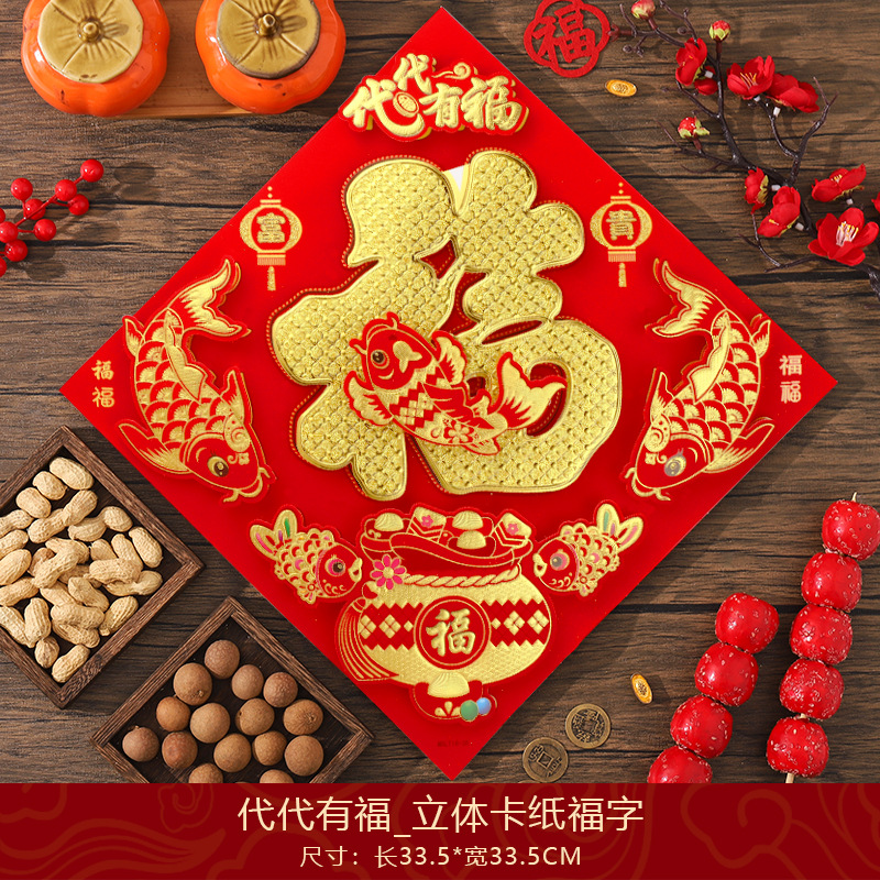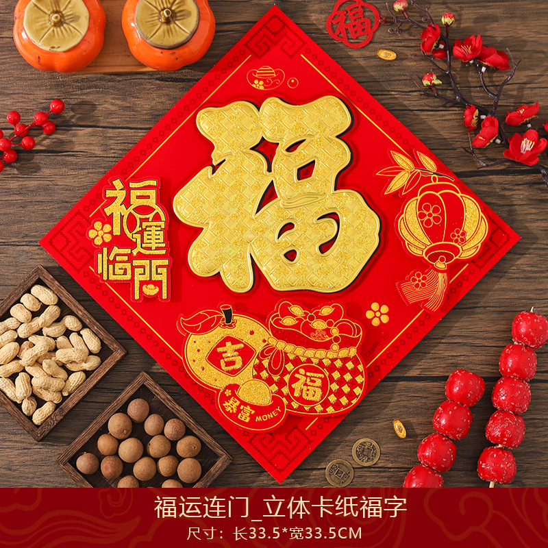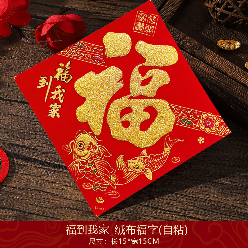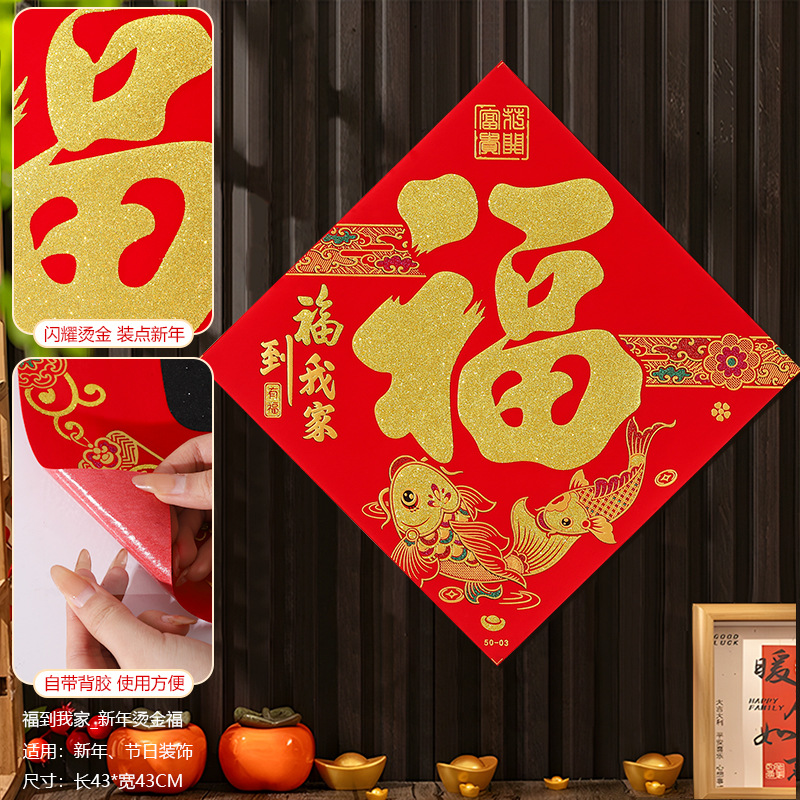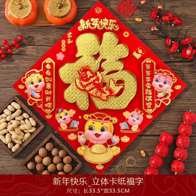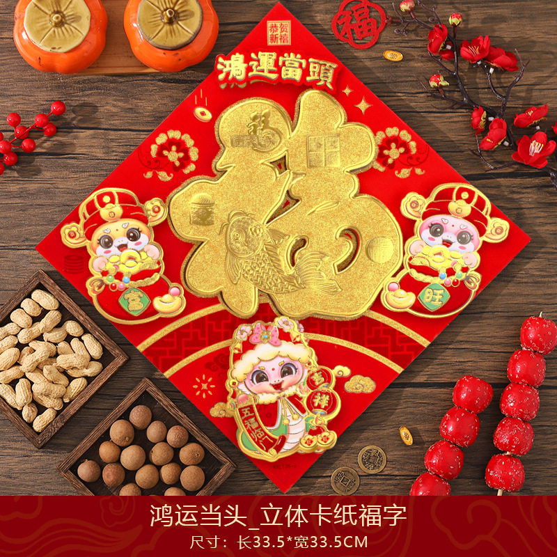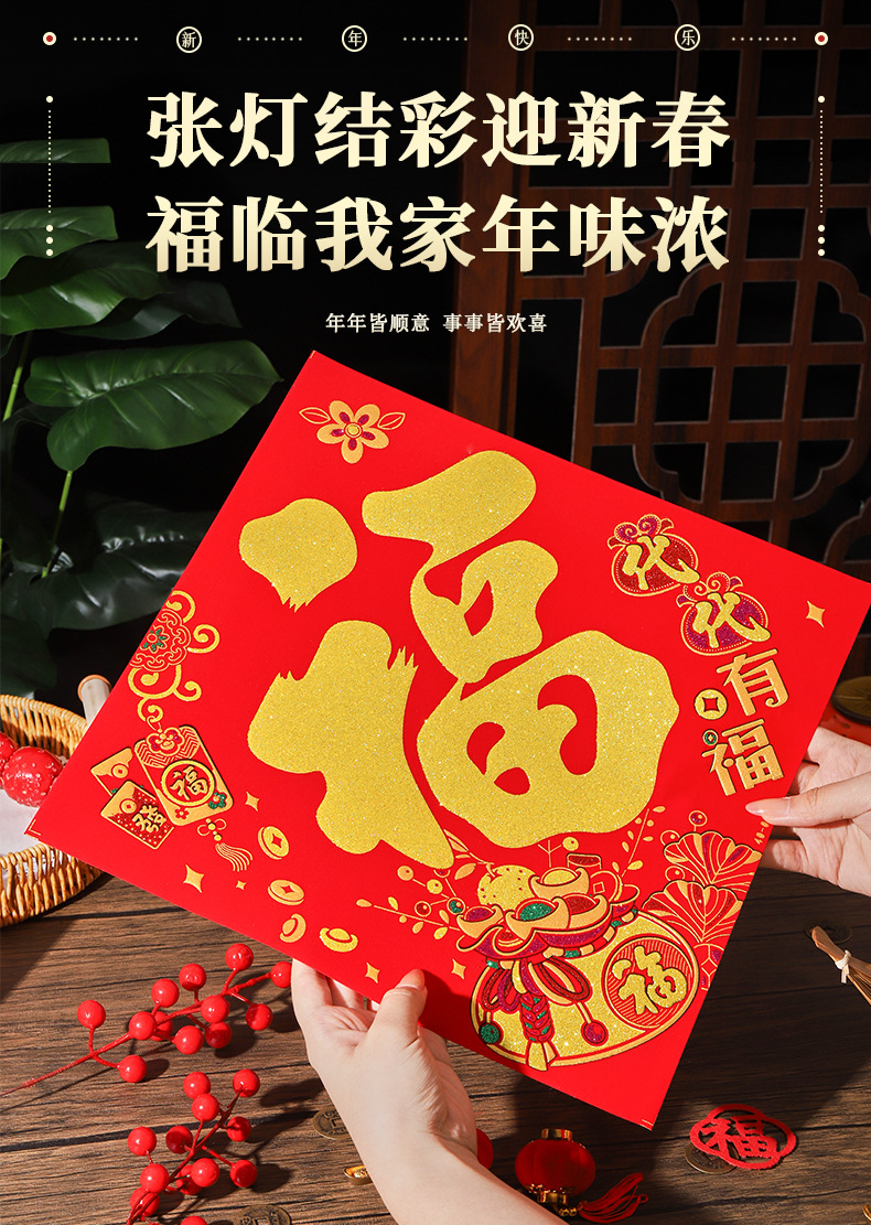 2025年过年新款福字门贴装饰烫金新年春节蛇年绒布贴纸大门装饰品