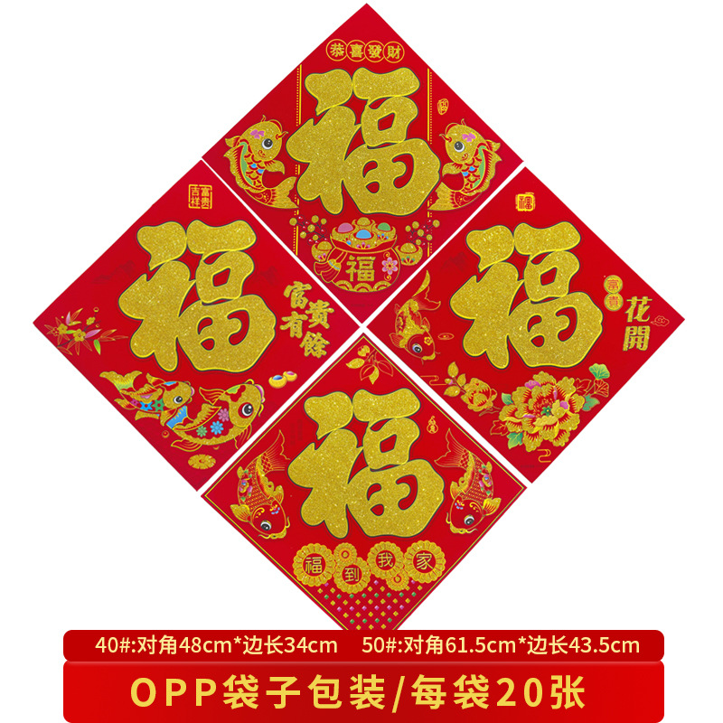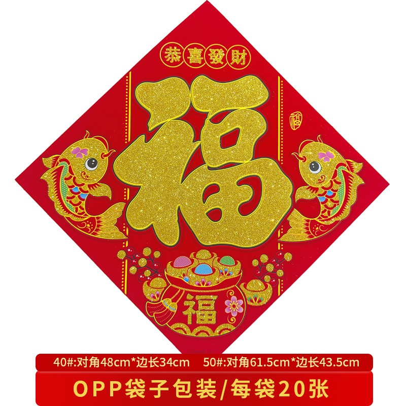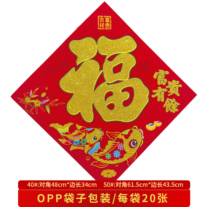 2025蛇年新款平面植绒金粉福字 大门福字贴 春节福字年货厂家批发
