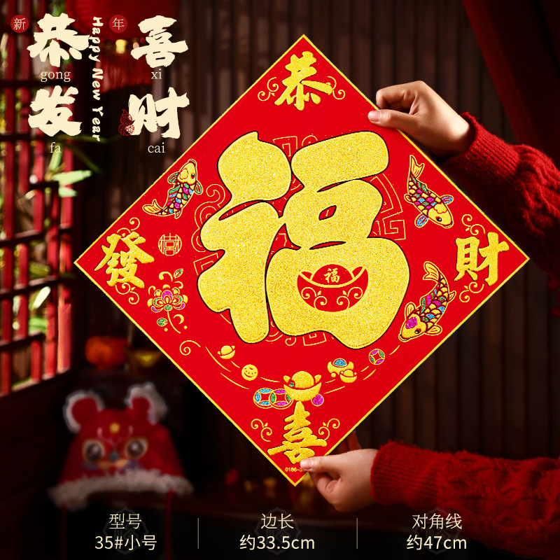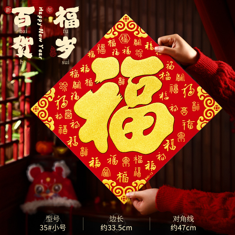 2025蛇年新款生肖福字门贴背胶新年过年大门春节装饰布置年货批发