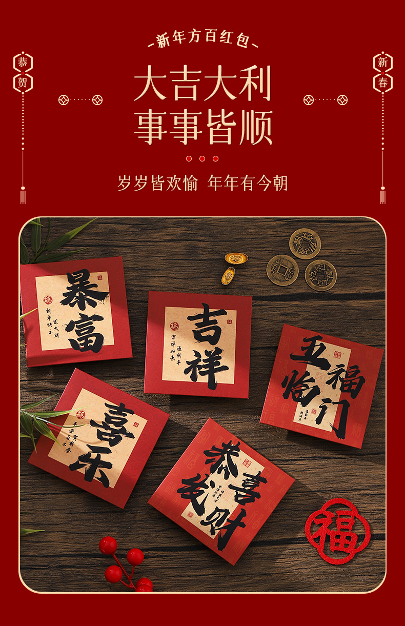 蛇年2025新款创意正百红包袋春节过年卡通利是封新年卡纸红包批货