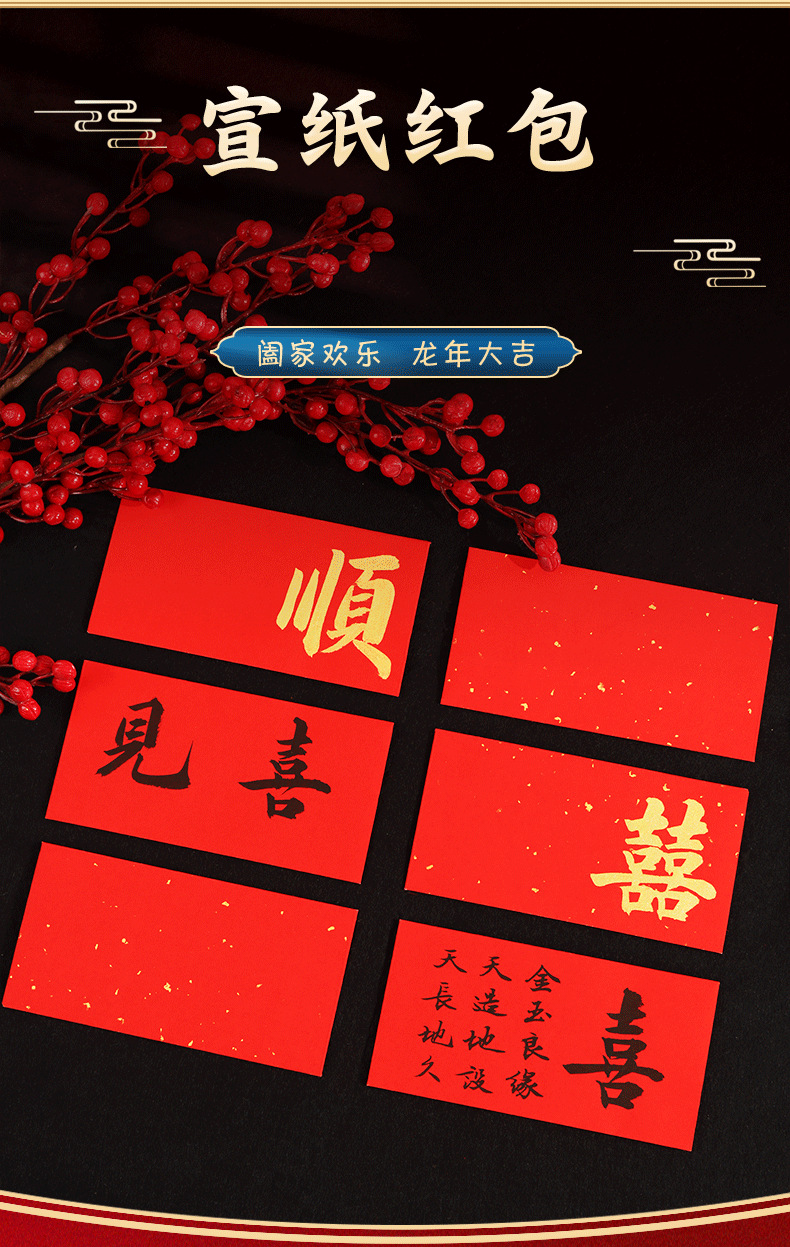 空白宣纸万年红加厚洒金手写书法小孩利是封结婚乔迁喜庆红包批发