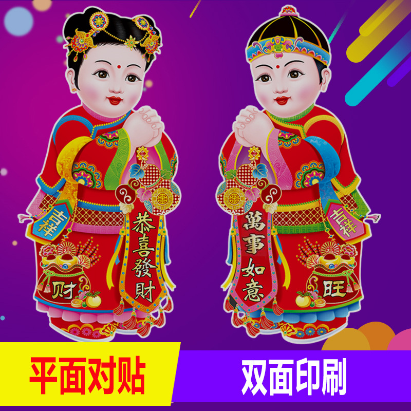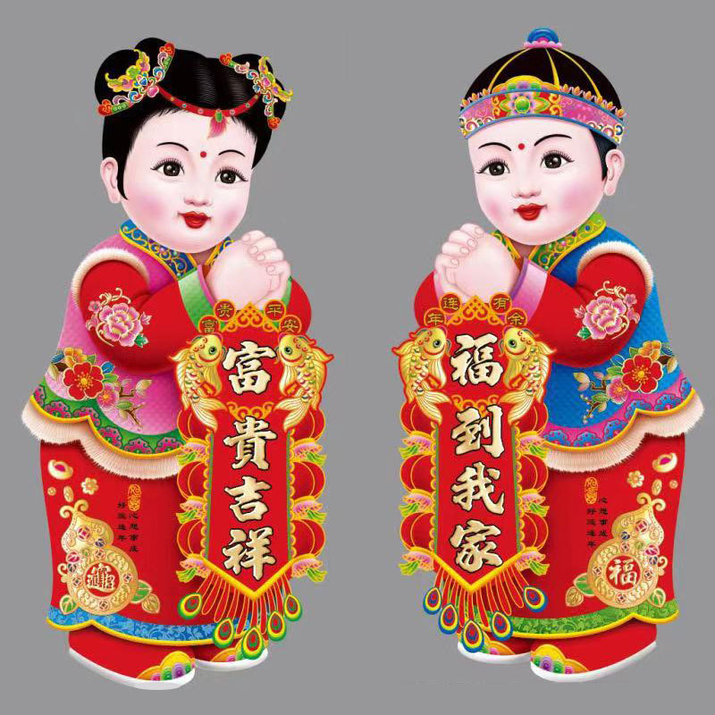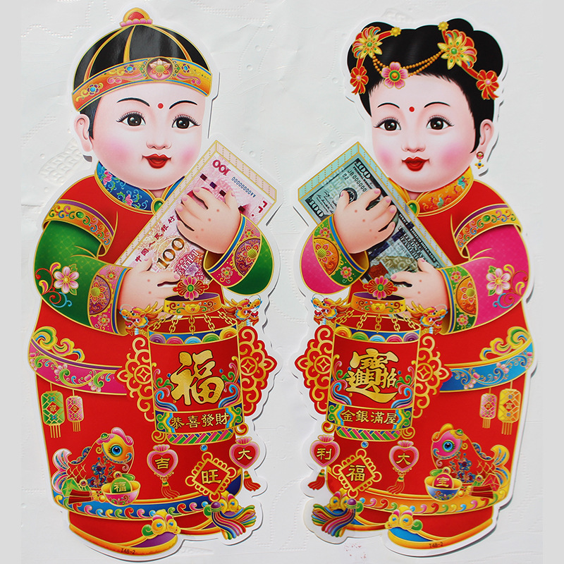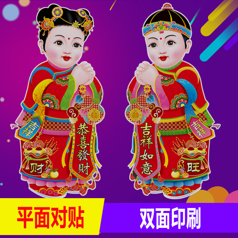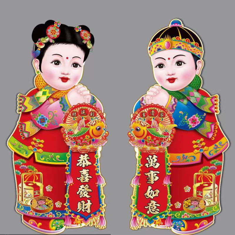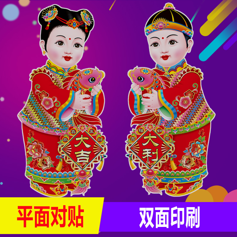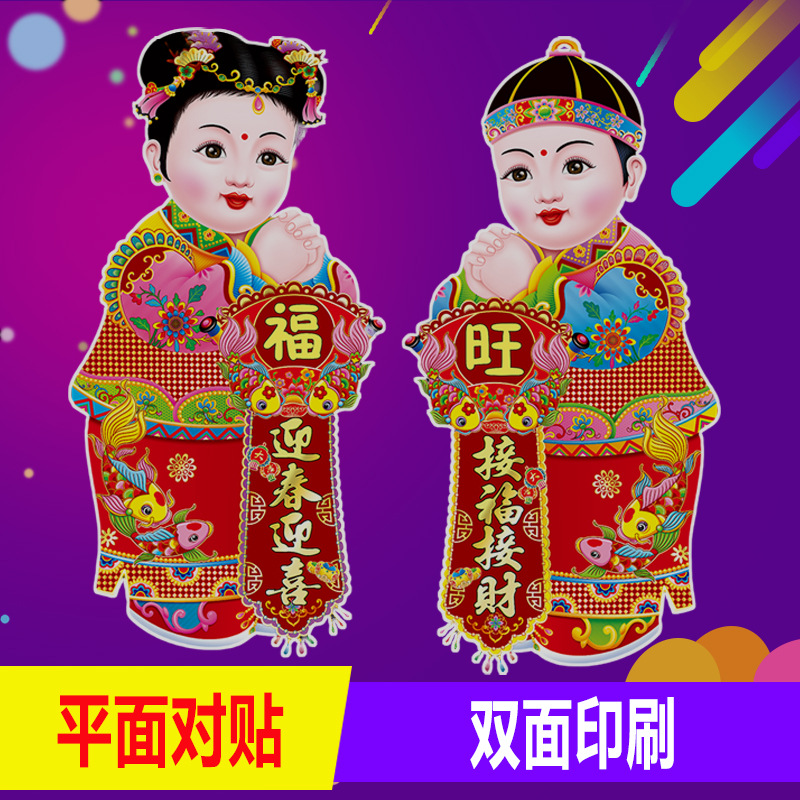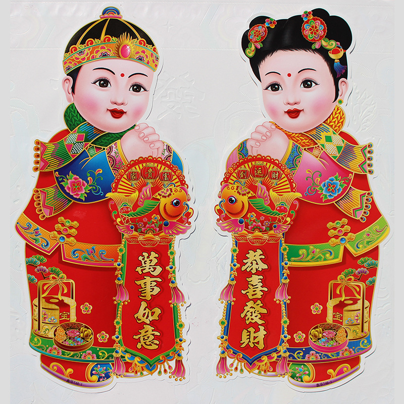 春节用品金童玉女门贴新年春节装饰品玻璃窗贴乔迁喜庆用品批发