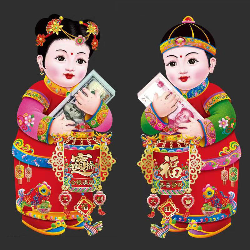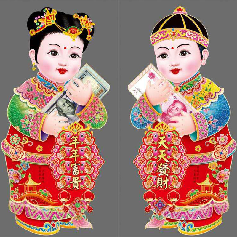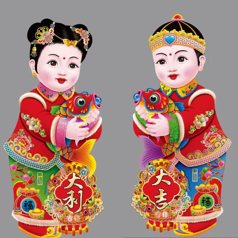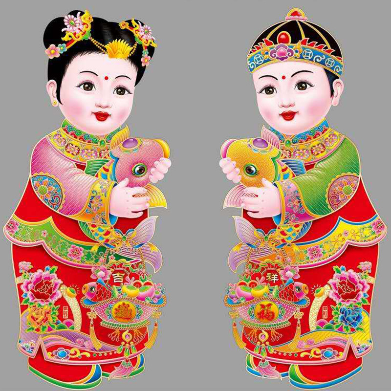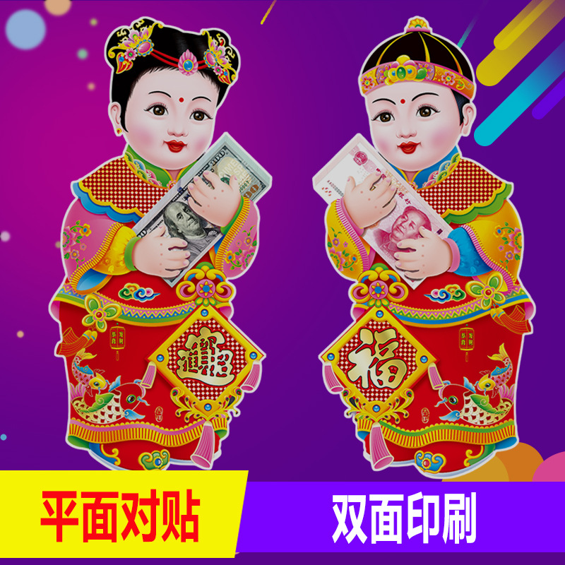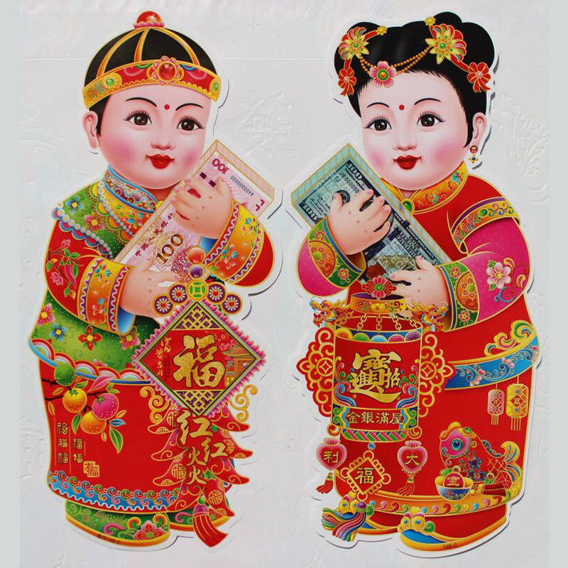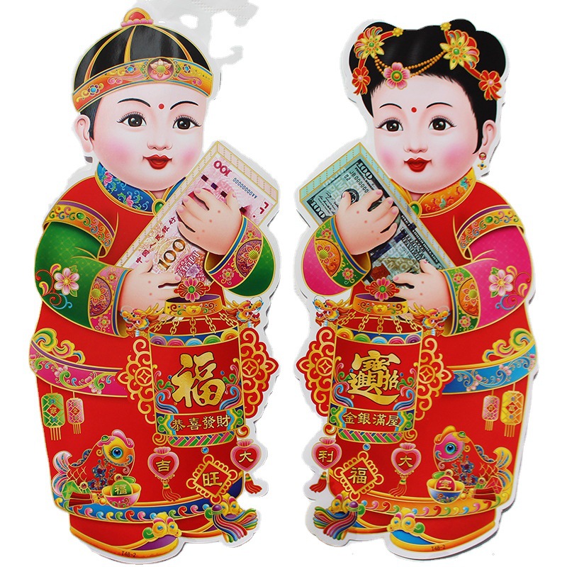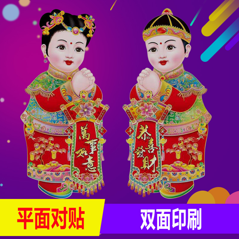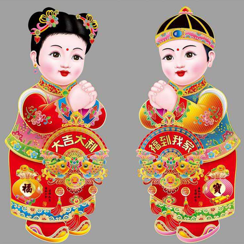 春节用品金童玉女门贴新年春节装饰品玻璃窗贴乔迁喜庆用品批发