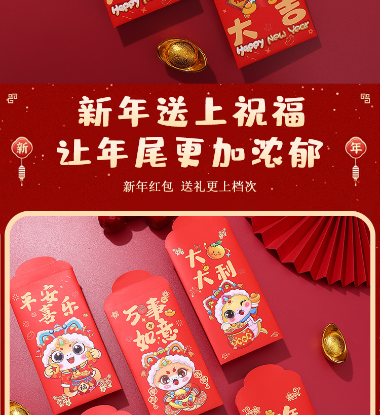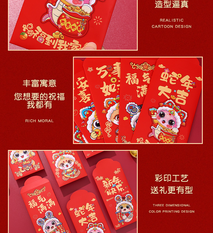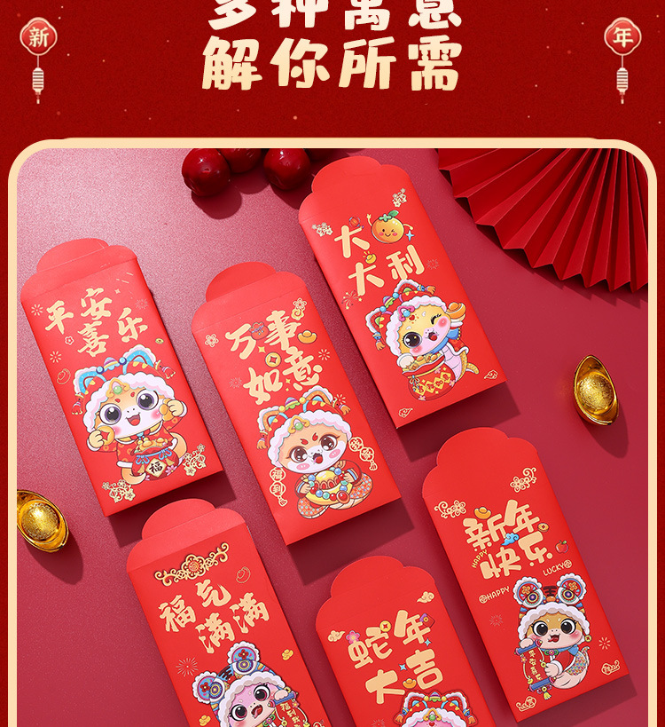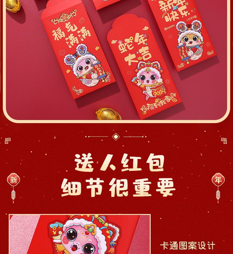 蛇年压岁红包新年红包袋卡通烫金婚庆开业新年大吉大利卡通利是封